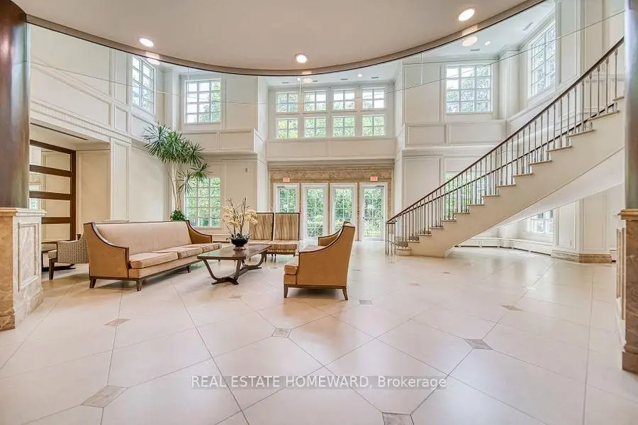 Aria Condominiums / a wonderful property set alongside a lush ravine, this bright, airy 910 sq. ft., 2-bedroom suite offers luxurious, spacious living and a dining area perfect for meals and entertaining. Sunlight and sunsets filter through the space with its tall windows overlooking trees, highlighting the 9-foot smooth ceilings, espresso engineered hardwood, custom drapery, and elegant, warm light fixtures with dimmers, with two walkouts to a 170 sq. ft. terrace-like balcony perfect for morning coffee or evening relaxation. **** Suite 206 features a family-sized kitchen nicely outfitted with abundant cabinets with interior pull-out drawers, stone countertops, a stone backsplash, under-cabinet lighting, and full-size appliances. Both bathrooms feature porcelain tile work, stone countertops, and soaker tub in one and the other a spa-like seamless glass shower. Excellent closets and ensuite storage complete this outstanding floorplan. **** Additional perks include locker near parking spot [owned P1-118, One larger parking spot, premium location [Owned P1-21] and ample visitor parking for guests.**** Impressive amenities include a grand lobby with roundabout entry, excellent concierge, 24h security. Fitness centre with programming and classes, hot tub, sauna, manicured gardens with lush pathways direct to local parks, guest suites, ample visitor parking, virtual golf, media room, billiards room, party room, library, and a beautiful glass-enclosed indoor pool with ravine views. Built in 2011 by Fernbrook Homes, Menkes, and Cityzen Developments. **** Near wonderful local parks and trails, Upper Don Parkland ravine. Short walk to Leslie TTC Subway with easy access to 401 and 404/DVP, as well as close to Fairview Mall and all of North York's top specialty shops and groceries... You'll Love Living Here!