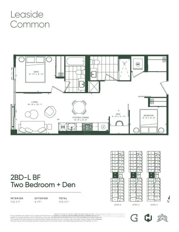 PRICE IMPROVEMENT!! Please note that photos shown are from a previous listing and the unit is currently unfurnished. Refined Living At Leaside Common, A Mid-Rise Boutique Building That Truly Embodies Leaside's Charm With Its Striking Two-Toned Exterior Brick Design. Deeply Connected To The Essence Of This Highly Coveted Community, Leaside Common Offers A Warm And Inviting Atmosphere, Surrounded By Some Of The City's Most Sought-After Neighbourhoods. This Functional Split Two-Bedroom + Den and Two Full Bathroom Suite Boasts 9-Ft Ceilings With West Exposure.Filling The Space With Natural Light. Step Outside, And You're Instantly Immersed In All The Liveliness Of Leaside, With Amazing Local Restaurants, Cozy Cafes, And Beloved Mom-And-Pop Shops Lining Bayview Avenue-All Just Moments From Your Door. Transit Is Effortless, With The Brand-New LRT Right Across The Street, Ensuring Seamless Access To The Rest Of The City. For Culinary Enthusiasts, Gas Cooktops Elevate The Home Cooking Experience. This Is A Rare Opportunity To Live In A Place Where Boutique Elegance, Community Spirit, And Urban Convenience Come Together Perfectly! Appointments Available To Tour Completed Suite!