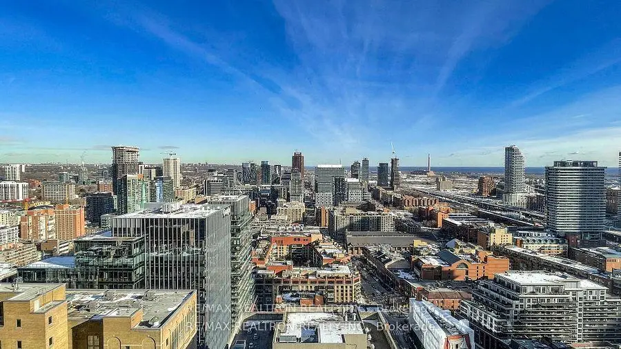 Welcome to the Luxury Residence at 88 Scott - a signature address in Toronto's most coveted Yonge/King/Wellington corridor. Perfectly positioned at the gateway to the Financial District, this sun-drenched 2+1 bedroom, 2-bath corner suite offers 1,027 sq/ft of exceptional living with breathtaking unobstructed Northeast city views and sparkling lake vistas. Flooded with natural light from expansive floor-to-ceiling windows, the open-concept living, dining, and kitchen areas create a sophisticated backdrop for both everyday living and elegant entertaining. The sleek modern kitchen showcases integrated appliances, premium cabinetry, a large centre island, and seamless sightlines throughout the principal spaces. The split-bedroom layout ensures privacy and comfort, complemented by a versatile open-concept study ideal for working from home. The primary suite features large windows, ample closet space, and a contemporary ensuite. A spacious second bedroom and a beautifully finished second bathroom complete this highly functional floor plan. Situated just steps from King Subway Station, PATH access, St. Lawrence Market, Berczy Park, major financial institutions, Union Station, premier dining, and the Waterfront, this is urban living at its finest. Residents of 88 Scott enjoy a truly elevated lifestyle with luxury amenities, including: Fully equipped fitness centre, Indoor pool & sauna, Party room, billiards room, and theatre room (6th floor), Iconic Sky Lounge on the 46th & 47th floors with panoramic views, Warm & welcoming 24-hour concierge offering exceptional service. Complete with 1 underground parking space and 1 locker, this move-in-ready residence offers outstanding value in a world-class downtown address. Your next chapter in luxury city living begins here!