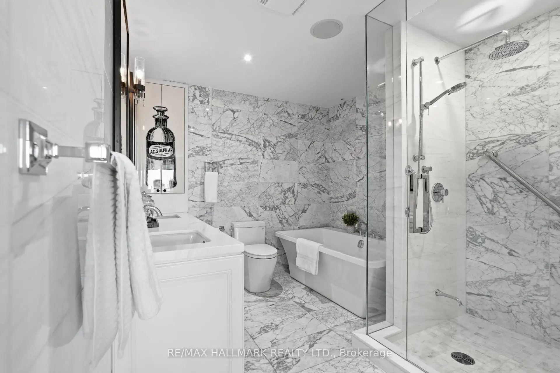 3 Pc Bath, Marble Floor, LED Lighting