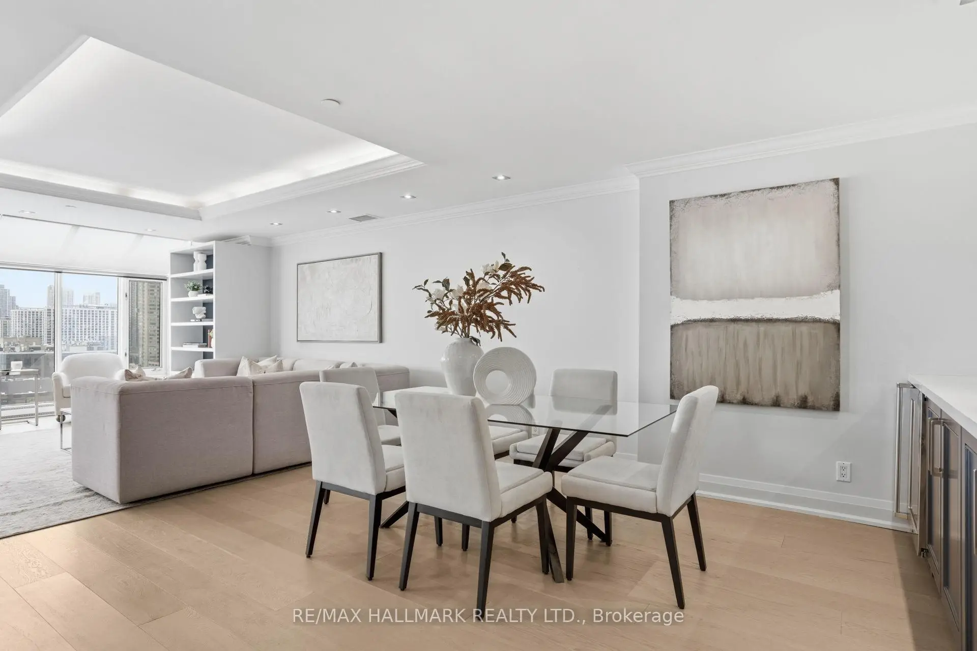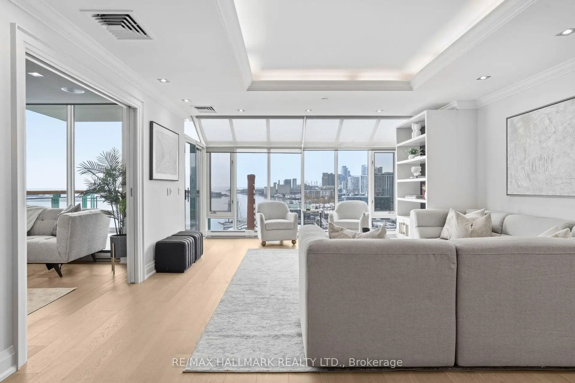 Welcome to The Historic Terminal Building at 211 Queens Quay W unit 1005. With amazing South West views looking out onto Lake Ontario and Billy Bishop Airport you can relax on your private terrace watching the sunset! This spacious 1500+ sq ft renovated 2 bed/2 bath luxury boutique condo has a beautiful updated chefs kitchen featuring premium appliances with marble tile flooring that extends through the kitchen and foyer with ample storage. Large primary bedroom with tray ceiling, walk in closet and a fully renovated spa inspired 5-piece ensuite bathroom. Engineered hardwood floors flow seamlessly throughout the main living areas, adding warmth and elegance to the brightly lite space. Set in the premier Harbourfront location, steps to the lake, transit, dining, and the Financial District with an unbeatable downtown lifestyle. Residents enjoy 24-hour concierge, indoor pool and gardens.
