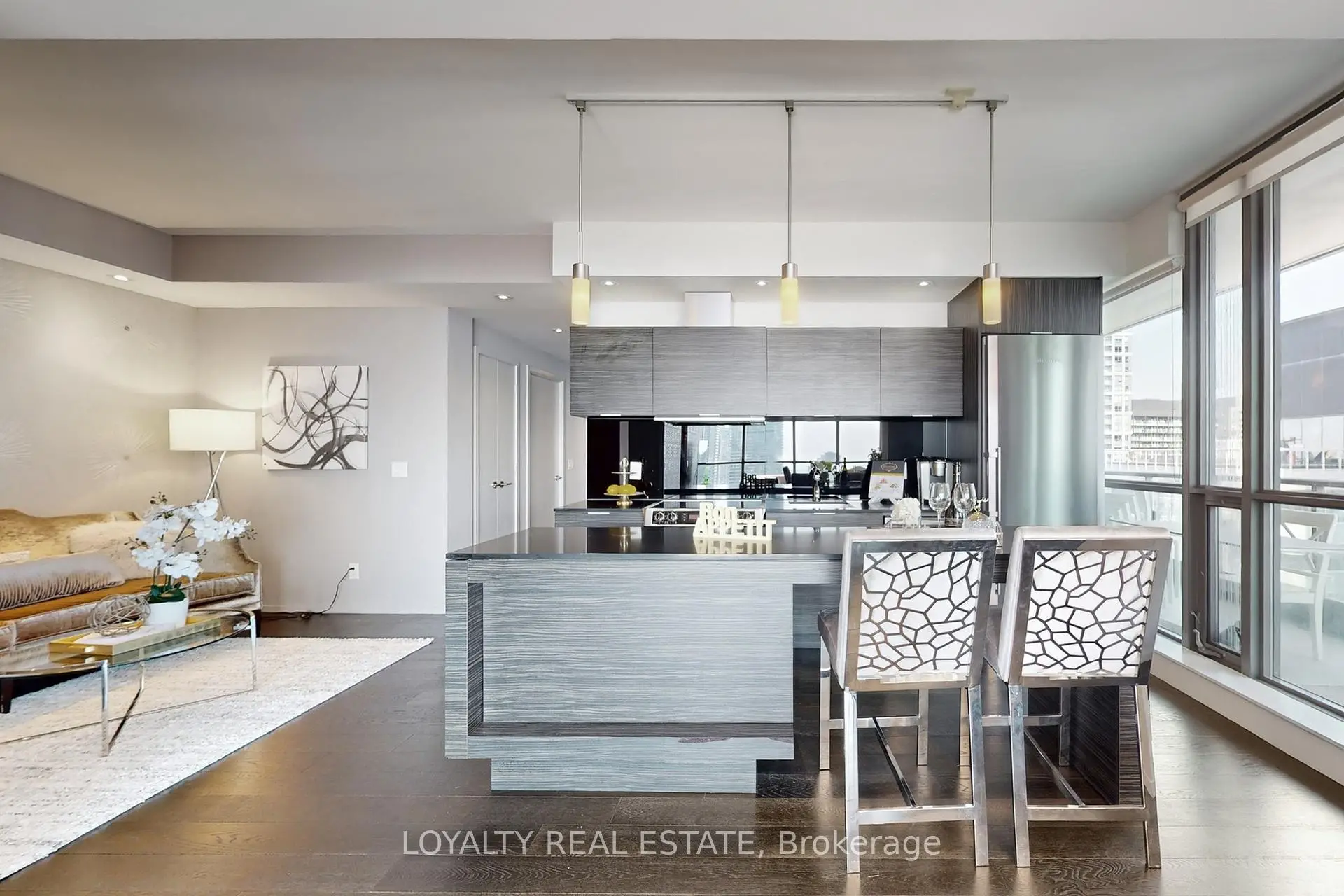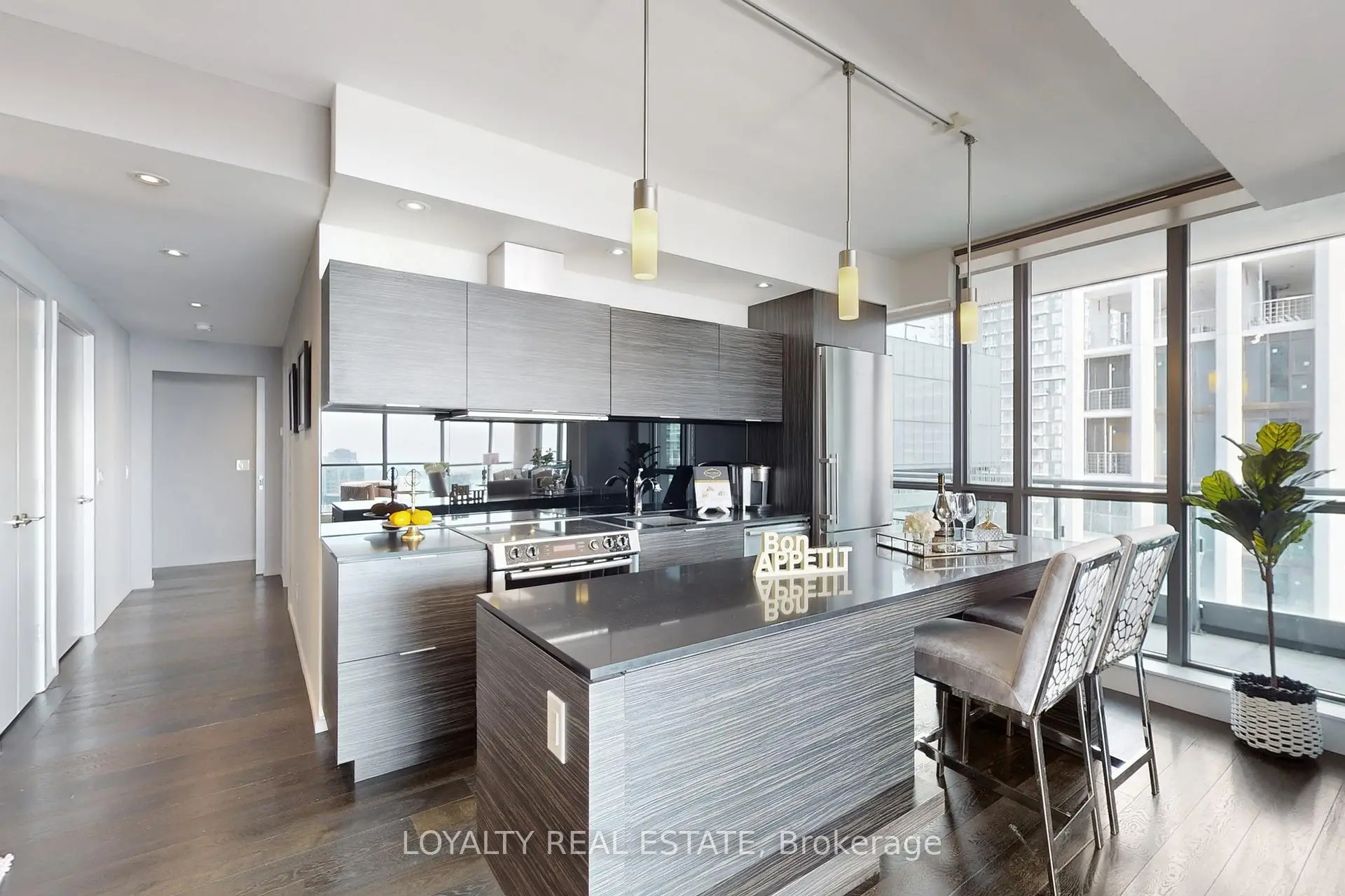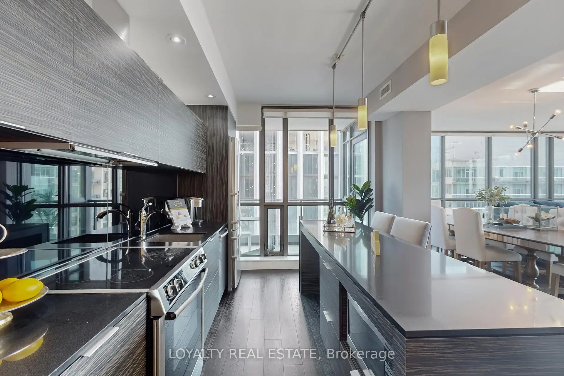 Experience luxury living 1800sq 3-bedroom, 3-bathroom corner suite at King Spadina, a high floor with breathtaking southeast lake and city views. Featuring a functional split-bedroom layout, open balcony, designer-curated classic furniture, and high-end finishes, this residence blends comfort with cinematic elegance. Enjoy resort-style amenities including an infinity pool, gym, theatre, party room, sauna, guest suites, BBQ terrace, and 24-hourconcierge. Located in the vibrant King Spadina district, you are steps from the Financial Core and top dining, with subway, highways, shopping, and the lakefront all nearby, while enjoyingthe peace of a quiet street for relaxed living. This is a rare opportunity to own a luxurious lakeview condo in one of the city's most desirable addresses