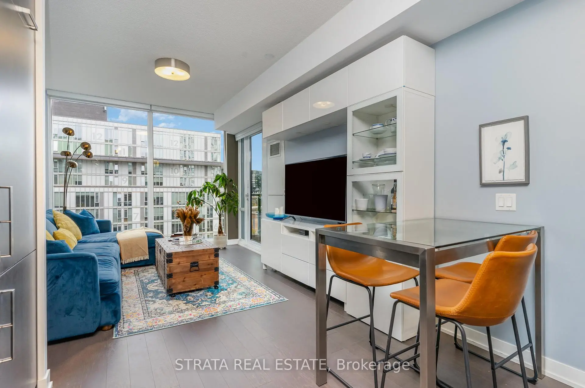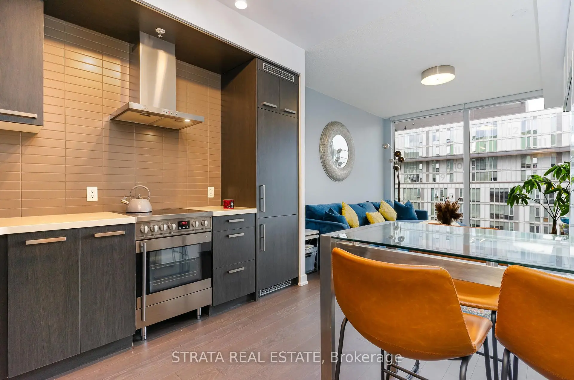 This stunning 1-bedroom + den, 2-bathroom suite is flooded with natural light through floor-to-ceiling windows and features soaring 9-foot ceilings, hardwood flooring throughout, and a walk-in closet in the primary bedroom. Step out onto your private balcony--perfect for morning coffee or unwinding after a long day. The open-concept kitchen combines elegance and functionality, showcasing built-in stainless steel appliances, quartz countertops, and sleek custom cabinetry-ideal for both cooking and entertaining. The spacious bedroom provides a cozy retreat, while the well-appointed bathrooms are designed with comfort and simplicity in mind. Move-in ready and thoughtfully equipped with parking, a locker, and unlimited high-speed Beanfield internet, this home offers complete downtown convenience. Residents enjoy an impressive array of amenities, including a fitness centre, rooftop terrace, games room, party room, bike storage, and guest suites. Perfectly situated, you're just steps from the TTC, restaurants, shops, cafes, parks, and an energetic community atmosphere. The Canary District is a thriving urban hub-home to the Cooper Koo Family YMCA and the scenic Front Street Promenade. With Corktown Common Park, extensive biking and running trails, and proximity to Leslieville, the Distillery District, and downtown Toronto, this neighbourhood effortlessly blends city living with outdoor space and connectivity. Whether you're an urban professional, fitness enthusiast, or culture seeker, this condo offers the perfect balance of modern style, comfort, and an unbeatable Toronto lifestyle.