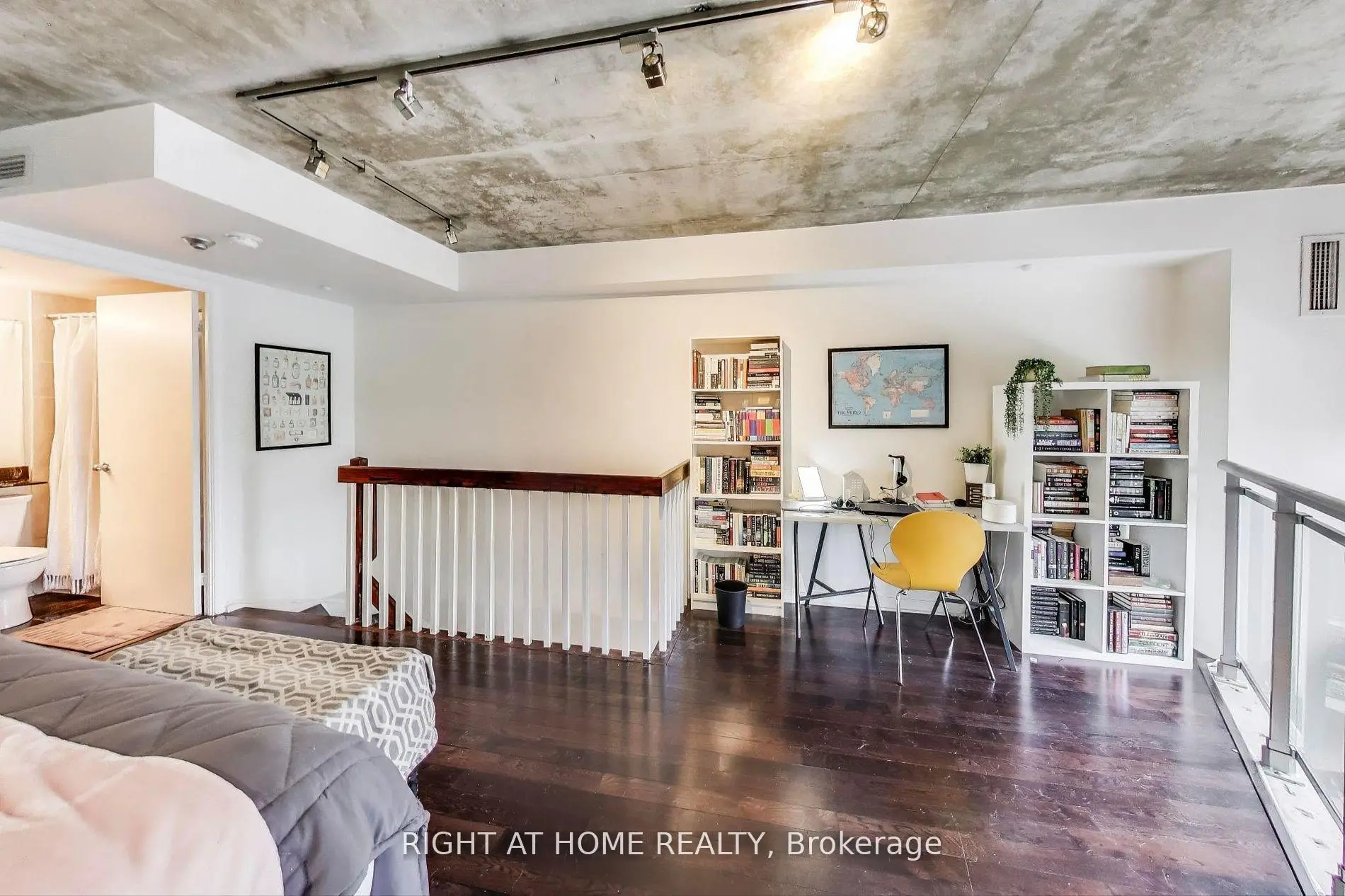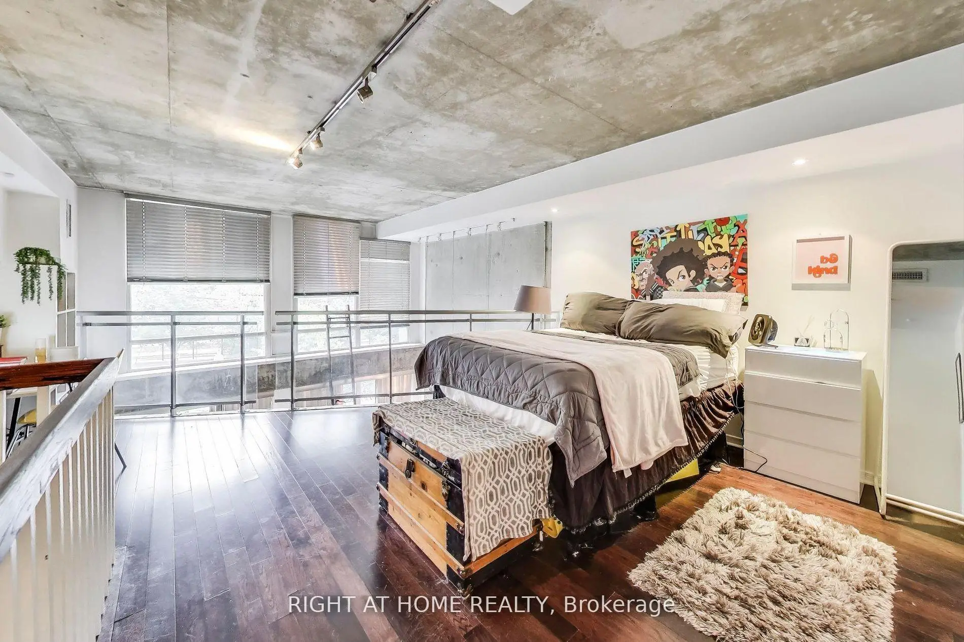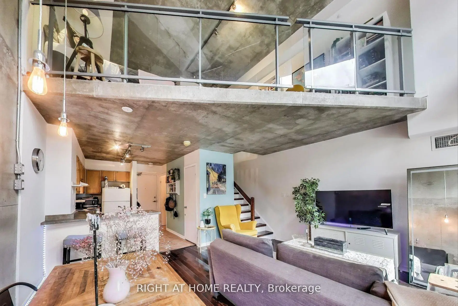 Welcome Home to Unit 246 at 1029 King St W - a bright and spacious 1-bedroom + den, 2 bath, 2-level loft in the sought-after Electra Lofts. Boasting approx. 810 sq.ft. of Bauhaus-inspired design, this south-facing unit is flooded with natural light through dramatic double-height windows. The open-concept layout features soaring ceilings in the living area, upgraded modern glass and steel railings on the upper level, and a sleek urban vibe throughout. Enjoy the perfect blend of style and function, with a generously sized bedroom (opened up wall separating the den), and an oversized 6' x 6' private storage locker included. Live in one of Toronto's most dynamic neighbourhoods steps from trendy restaurants, nightlife, transit, parks, the Bentway, and everything downtown has to offer. Whether you're entertaining at home or exploring the city, this is the ultimate King West lifestyle.