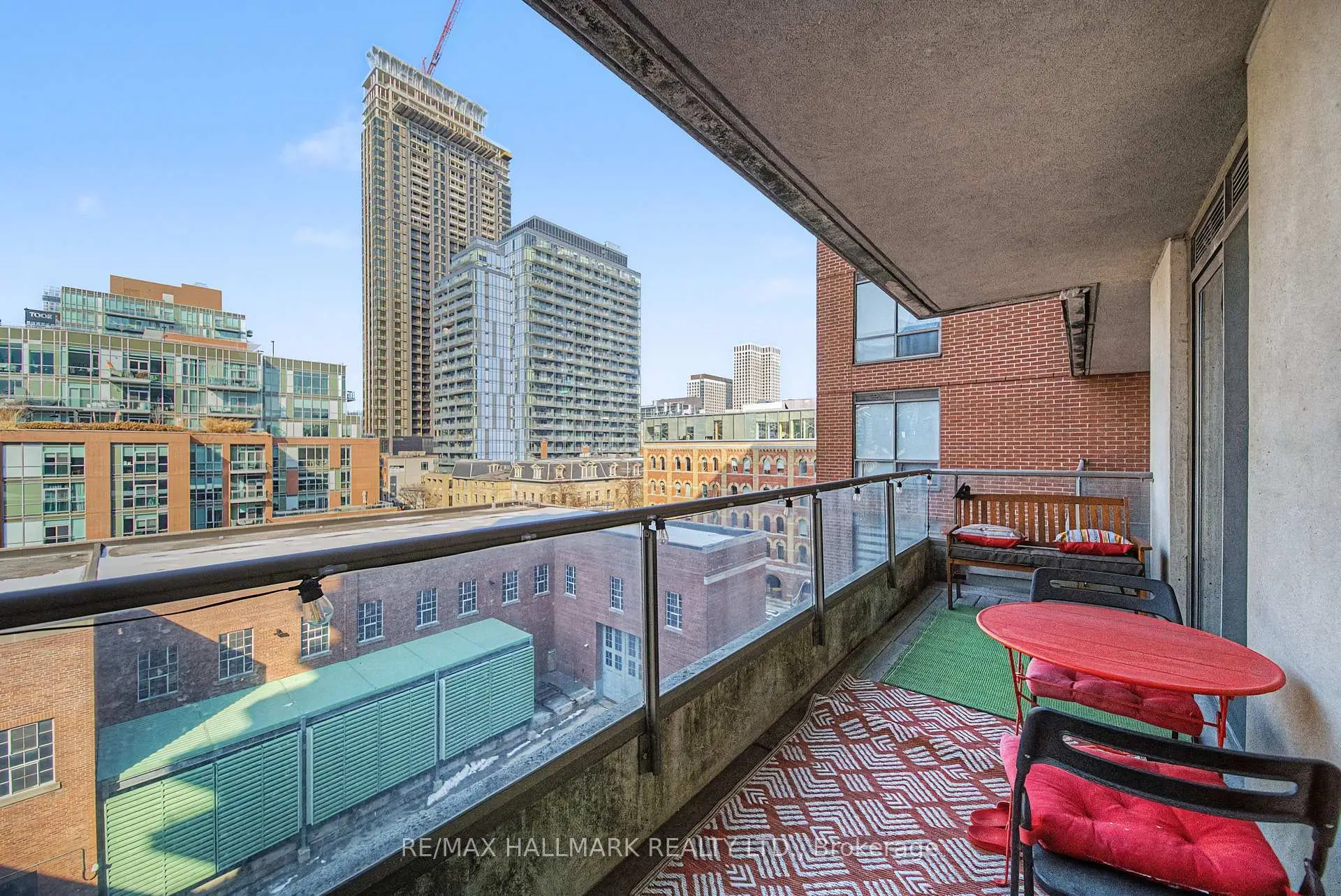 Welcome to 168 King Street East, Suite 614 - an elegantly appointed residence in the highly coveted King George Square, a prestigious 16-storey boutique building in the vibrant St. Lawrence Market neighbourhood. This functional one-bedroom plus den, two-bathroom suite offers a thoughtfully designed open-concept layout ideal for modern urban living. The versatile den provides the ideal work-from-home office, complemented by a nearby powder room for added convenience. The combined living and dining area is framed by expansive floor-to-ceiling windows that flood the space with natural light and lead to a private balcony showcasing sweeping north-facing city views.The contemporary kitchen is both stylish and functional, featuring stainless steel appliances, generous cabinetry, under-cabinet lighting, and a convenient breakfast bar-perfect for casual dining or entertaining guests. The primary bedroom retreat boasts a large closet and a four-piece ensuite bath. Additional highlights include in-suite laundry, one underground parking space, and an exclusive-use locker. You're just steps from the King street car, world-class dining, boutique shopping, the Financial District, parks, and everything downtown Toronto has to offer. Residents of this well-managed building enjoy premium amenities, including a rooftop terrace, fully equipped gym, stylish party room, and 24-hour concierge service. Experience refined city living at its finest.
