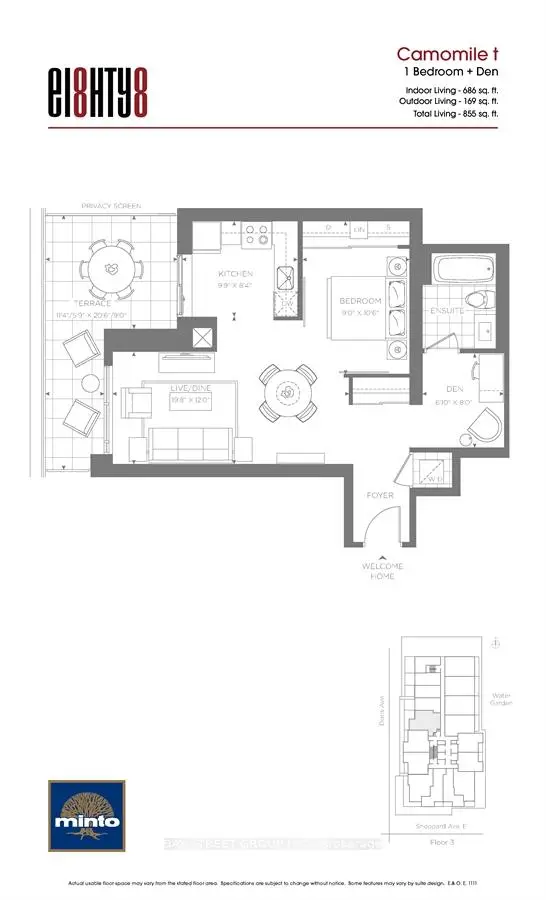 The age of the residential building is approximately 11 years. It has about 35 levels and 371 units. EI8HTY8 Condos offers amenities such as Gym, Concierge, Rooftop Deck/Garden, Party/Meeting Room, Guest Suites, Business Centre(WIFI) and Paid Visitor Parking. The monthly maintenance fee includes Heat and Air Conditioning. There are total 7 units for sale and 14 for lease in 88 Sheppard Ave E.