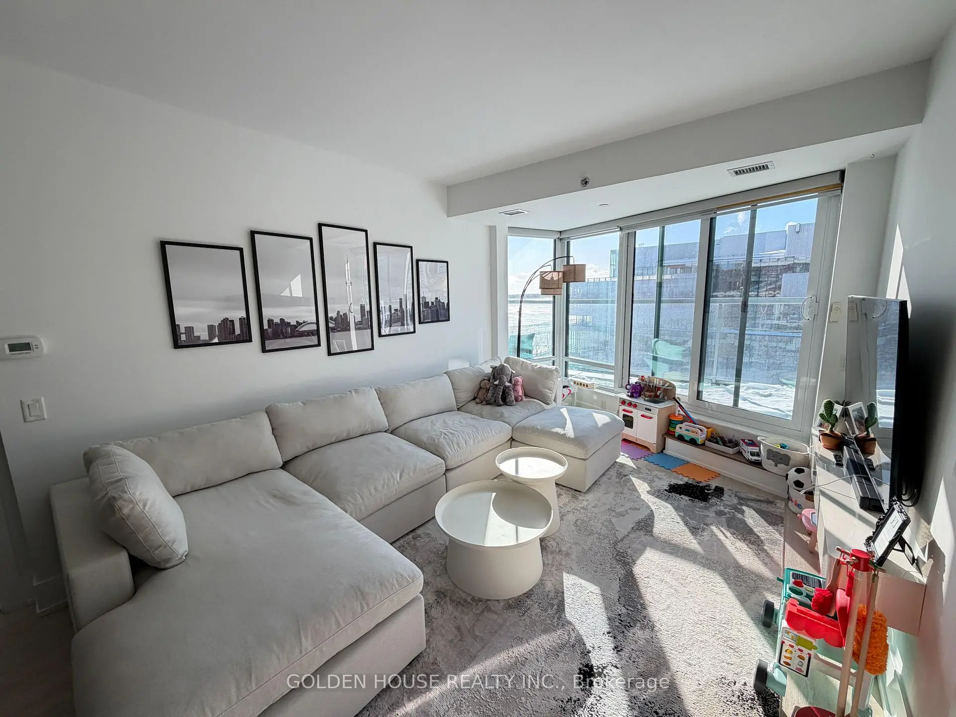 Welcome to this modern waterfront residence with a bright west exposure showcasing fantastic city and lake view. Featuring a highly functional open-concept layout with 9-foot ceilings and a terrace, offering 2 spacious bedrooms and a den. Enjoy seamless indoor-outdoor living with a walk-out terrace from your bedrooms and breathtaking city and water views. Elegant finishes include high-end laminate flooring throughout, a sleek contemporary kitchen with high-end appliances and backsplash, a double-door walk-in closet, a generous ensuite, and a mirrored closet in the second bedroom. Guest BBQ connection available on the terrace. Unbeatable waterfront location on the boardwalk-steps to Sugar Beach, TTC, George Brown College, and minutes to Loblaws, Farm Boy, LCBO, Distillery District, St. Lawrence Market, Union Station, and more.