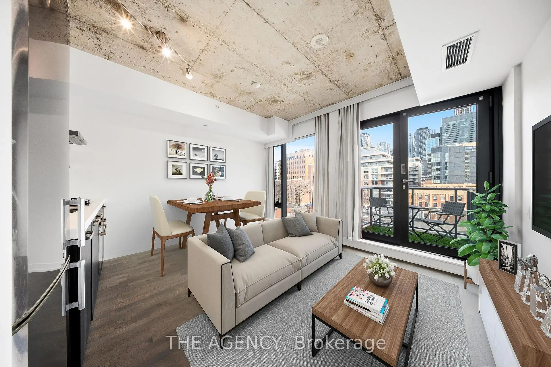 Balcony sunsets, rooftop swims, and the best of King West at your doorstep! This refreshed and turnkey one bed, one bath suite in Toronto's Fashion District is your gateway to loft living in an unbeatable location of downtown Toronto. Soaring ceilings with exposed concrete (no noise from your neighbour above) and floor-to-ceiling windows fill the open living space with natural light. The modern kitchen features a gas stovetop and stainless steel appliances, while the balcony offers unobstructed east-facing city views, including the CN Tower - complete with a rare BBQ gas connection for summer entertaining. One storage locker included for. Enjoy your summers on the iconic rooftop pool with sweeping skyline views as well as a fully equipped gym-perfect for staying fit without leaving home (and if you do, Solis Movement is right next door). Step outside and you'll never be bored. King West is packed with great dining, drinks, cafés, and nightlife within minutes on foot. Savour Italian favourites at Gusto 101, small plates and wine at Cibo Wine Bar, Spanish flavours at Beso by Patria, or contemporary comfort at Oretta. Grab morning coffee at Jimmy's Coffee, and enjoy cocktails at Baro, Bar Hop, or Lavelle's rooftop lounge. Casual eats and drinks await at fun-loved spots like King Taps, Earls and Ruby Soho.Weekend strolls through Trinity Bellwoods Park, and concerts or games at Rogers Centre complete the lifestyle. TTC streetcars at your doorstep make exploring the rest of the city effortless.Perfect for young professionals, urban foodies, first-time buyers, or investors seeking a vibrant live-work-play lifestyle in one of Toronto's most walkable and dynamic downtown neighbourhoods.