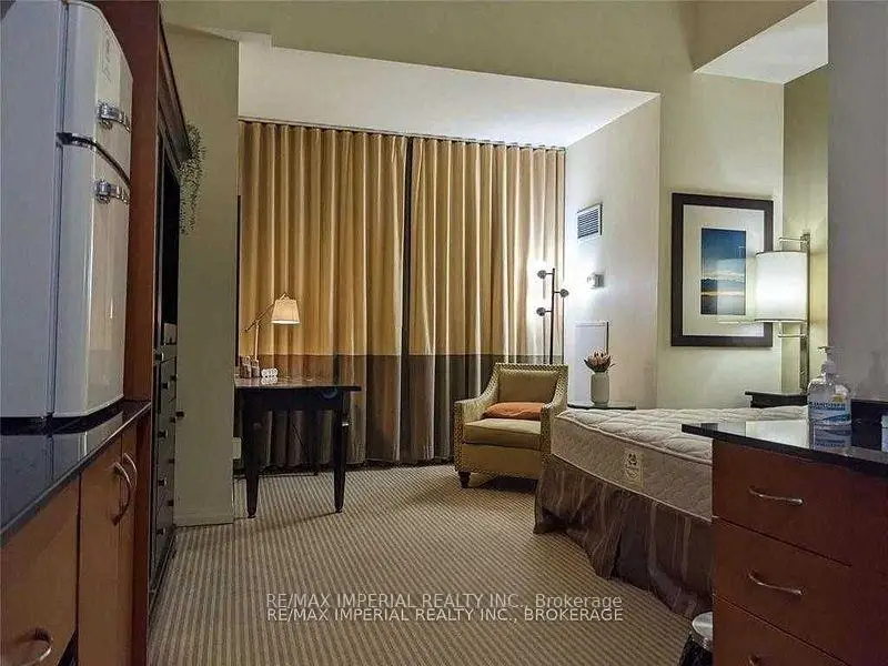 Currently Not In The Hotel Rental Pool(Factor 1.1). Bachelor Suite, 381 Sq Ft, In Historic One King W Building, Minutes From The Financial District, Direct Access To Subway. Fully Furnished, 10-Foot Ceilings, Possibly A Bunk Bed Or A Mezzanine Level. Luxury With 24 Hrs Hotel Services, Facilities Including Gym, Pool, Etc. Condo Fee Includes TV, Internet, Heat, Hydro, Water.