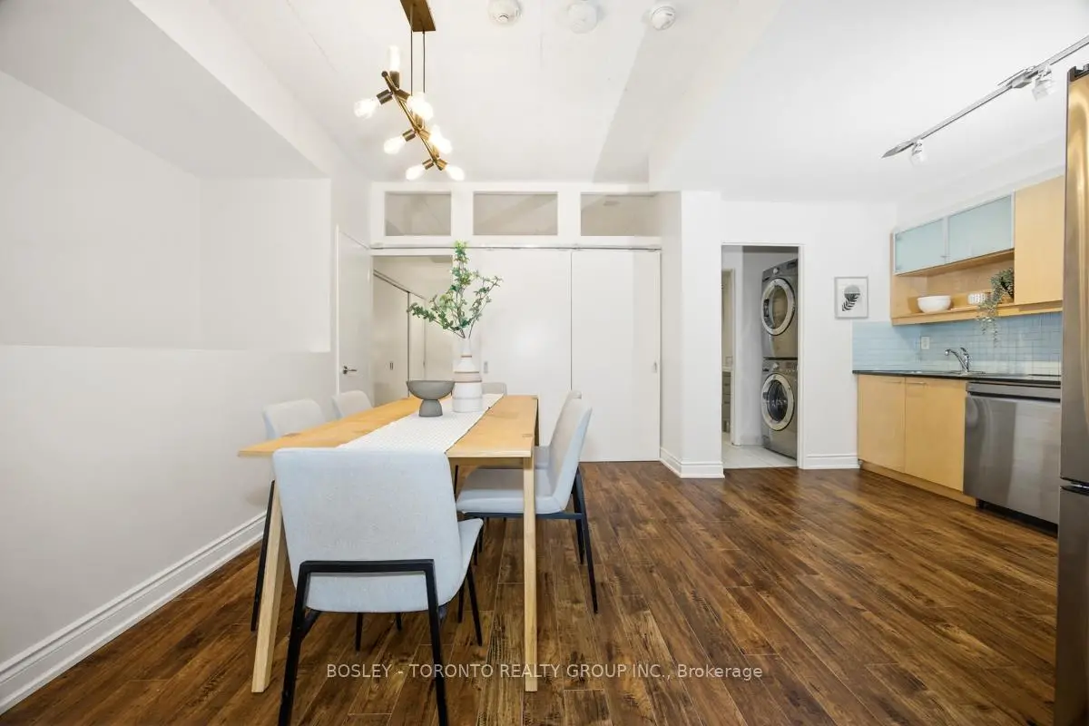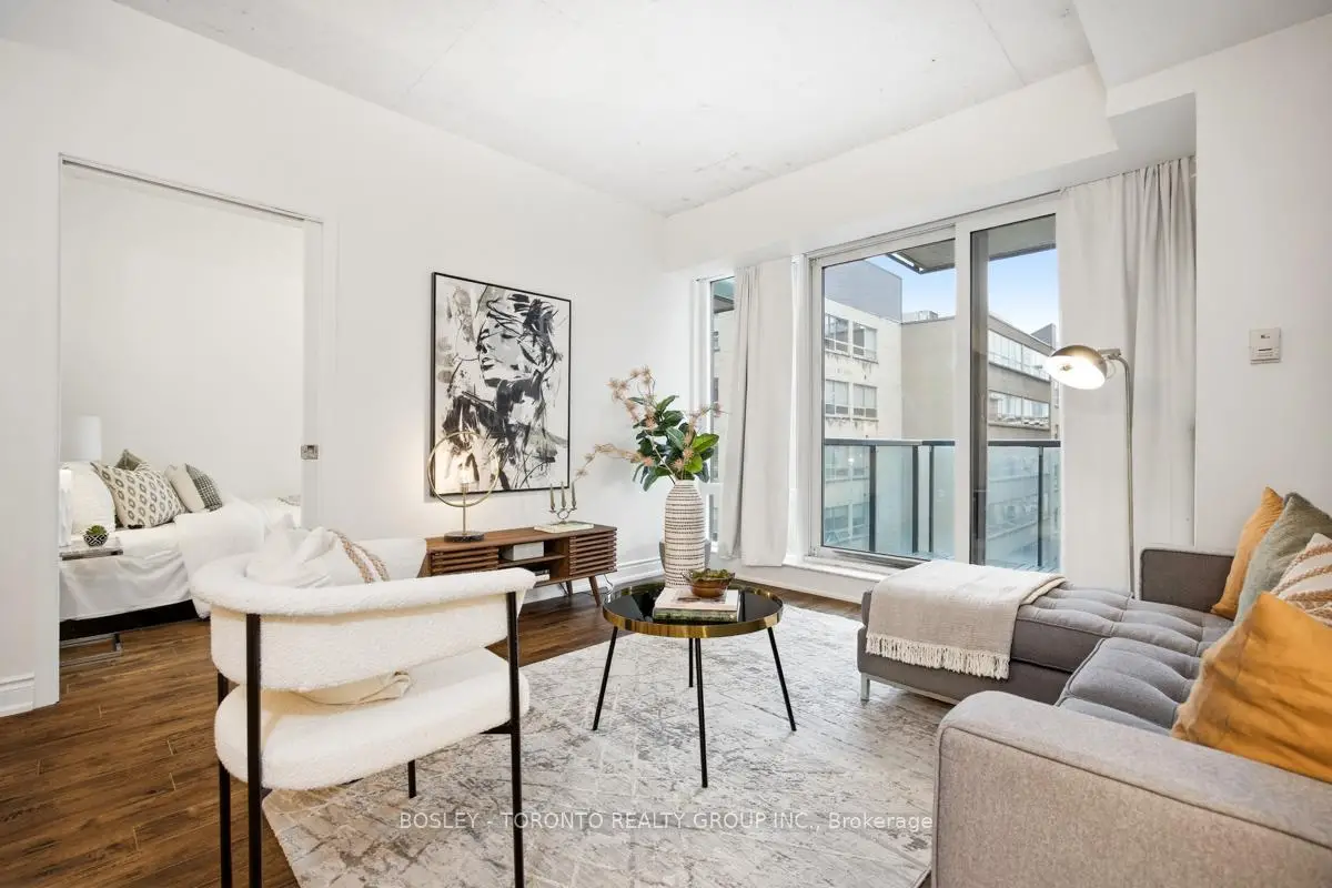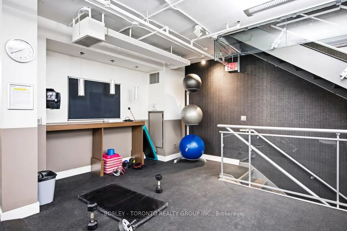 Welcome to the Mozo! This perfectly situated two bedroom unit has everything you'd want in the downtown core. This loft style unit boasts an open concept living and dining space, and an over sized west facing balcony with tons of natural light! A large primary bedroom located at the back of the unit provides peace and quiet with lots of closet space and an ensuite bath, while the second bedroom functions equally well as an office, guest bed, or nursery. Upgrading flooring and light fixtures through out, this unit offers turnkey living only steps away from King Street East, Distillery District, and St Lawrence Market. Extremely well managed building with courteous concierge, with access to onsite gym, party and meeting rooms for hosting private events and entertaining friends and family.