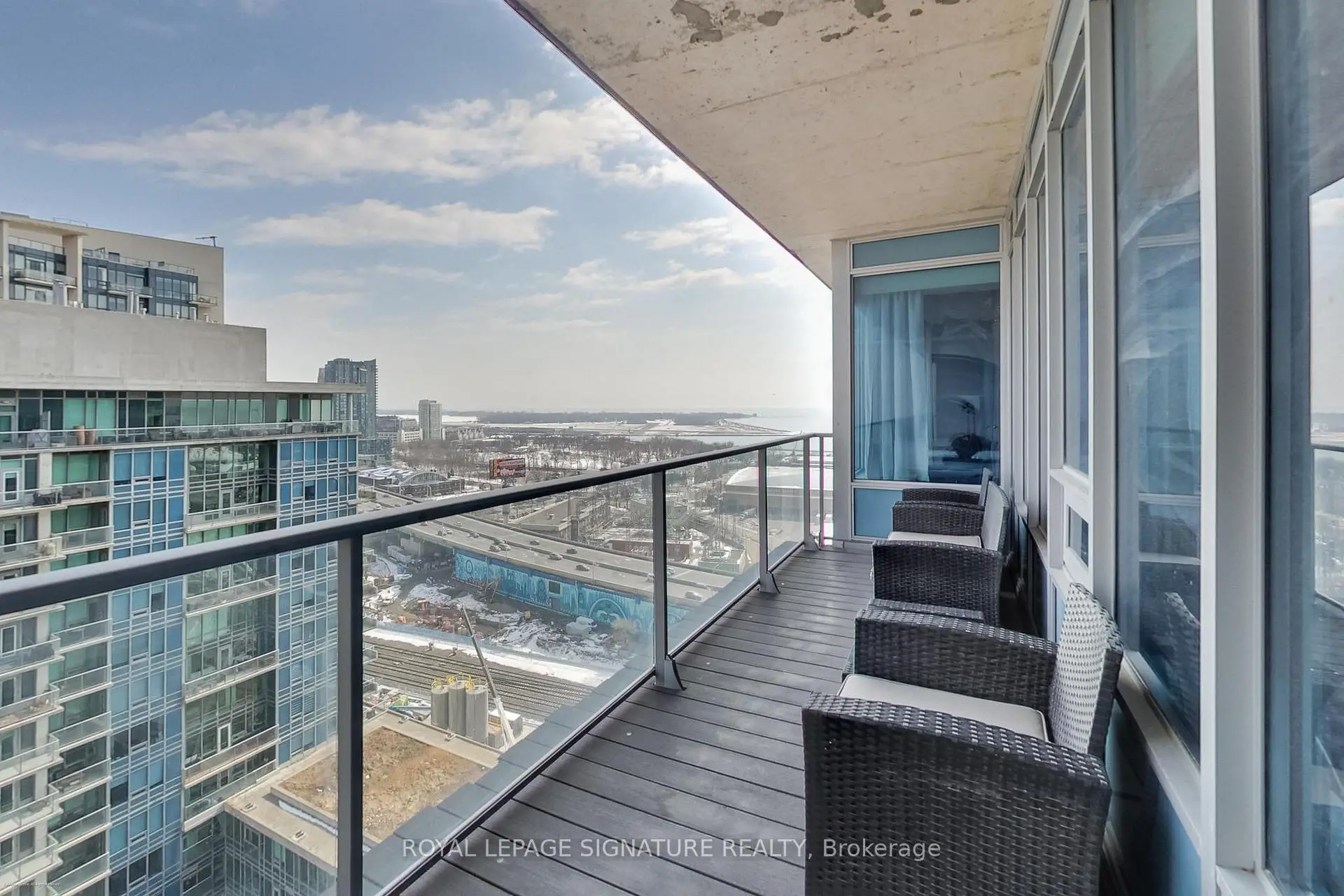 Welcome to Suite 2209 at 59 East Liberty St - an exceptional, rarely offered 2-bedroom + den residence in the heart of vibrant Liberty Village. Spanning nearly 1,100 sqft of beautifully designed living space, this sophisticated suite is framed by expansive floor-to-ceiling windows showcasing breathtaking city skyline and lake views, and bathed in natural light throughout.The open-concept living and dining area is perfectly suited for both elegant entertaining and everyday comfort, anchored by a sleek modern kitchen featuring stainless steel appliances, granite countertops, a striking mosaic backsplash, and a generous island ideal for gathering. A separate den provides the perfect private workspace for today's work-from-home lifestyle.The thoughtfully designed layout offers exceptional privacy, with a spacious primary retreat complete with ample closet space and a stylish ensuite bath. Step outside to your oversized balcony and take in sweeping views of the lake, parklands, and cityscape - an inspiring backdrop from morning coffee to evening sunsets.Complete with parking and a storage locker, this remarkable home is perfectly positioned just steps from Liberty Village's acclaimed restaurants, cafés, boutique shops, parks, waterfront trails, and convenient transit. Luxury, space, and location - all in one extraordinary offering.