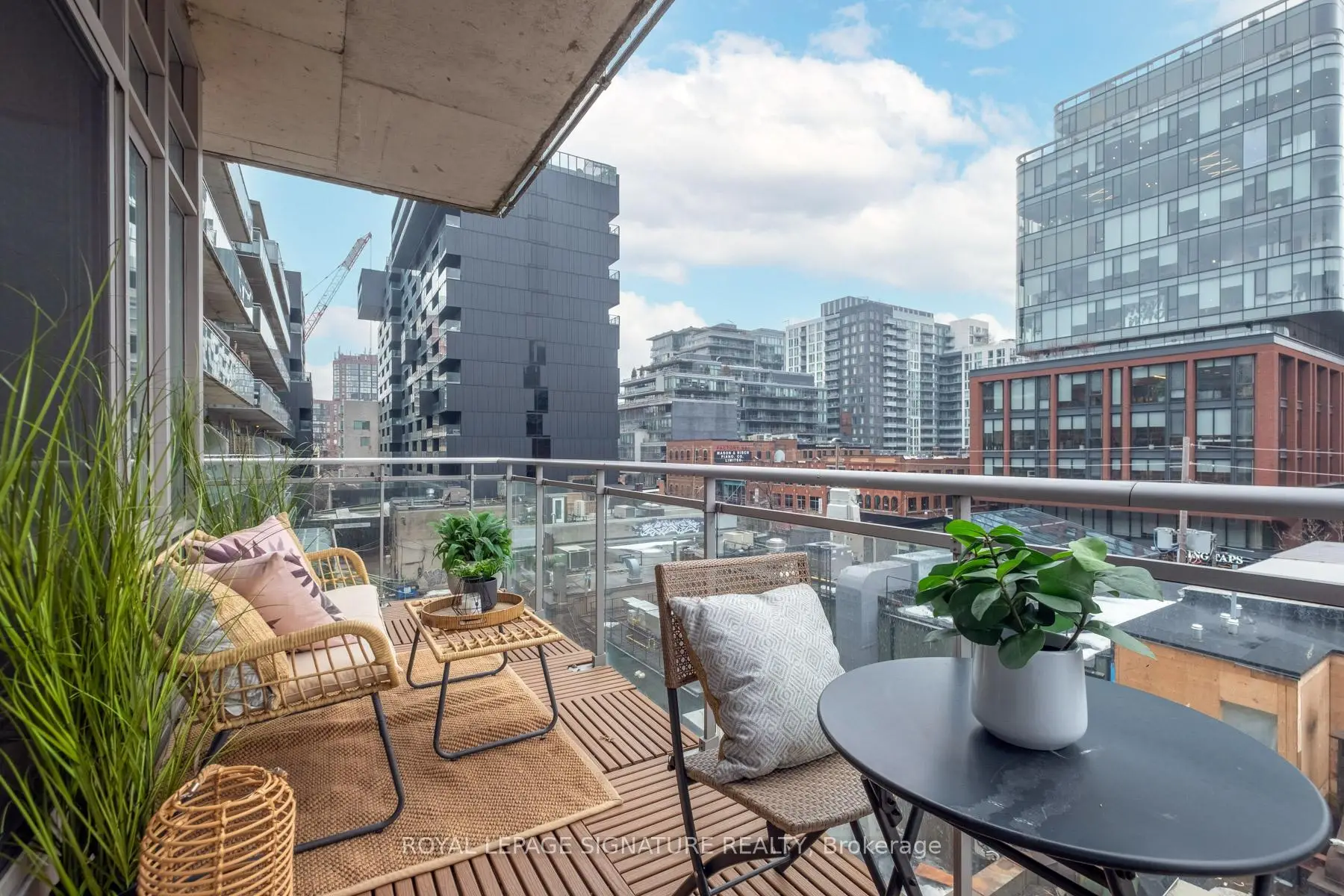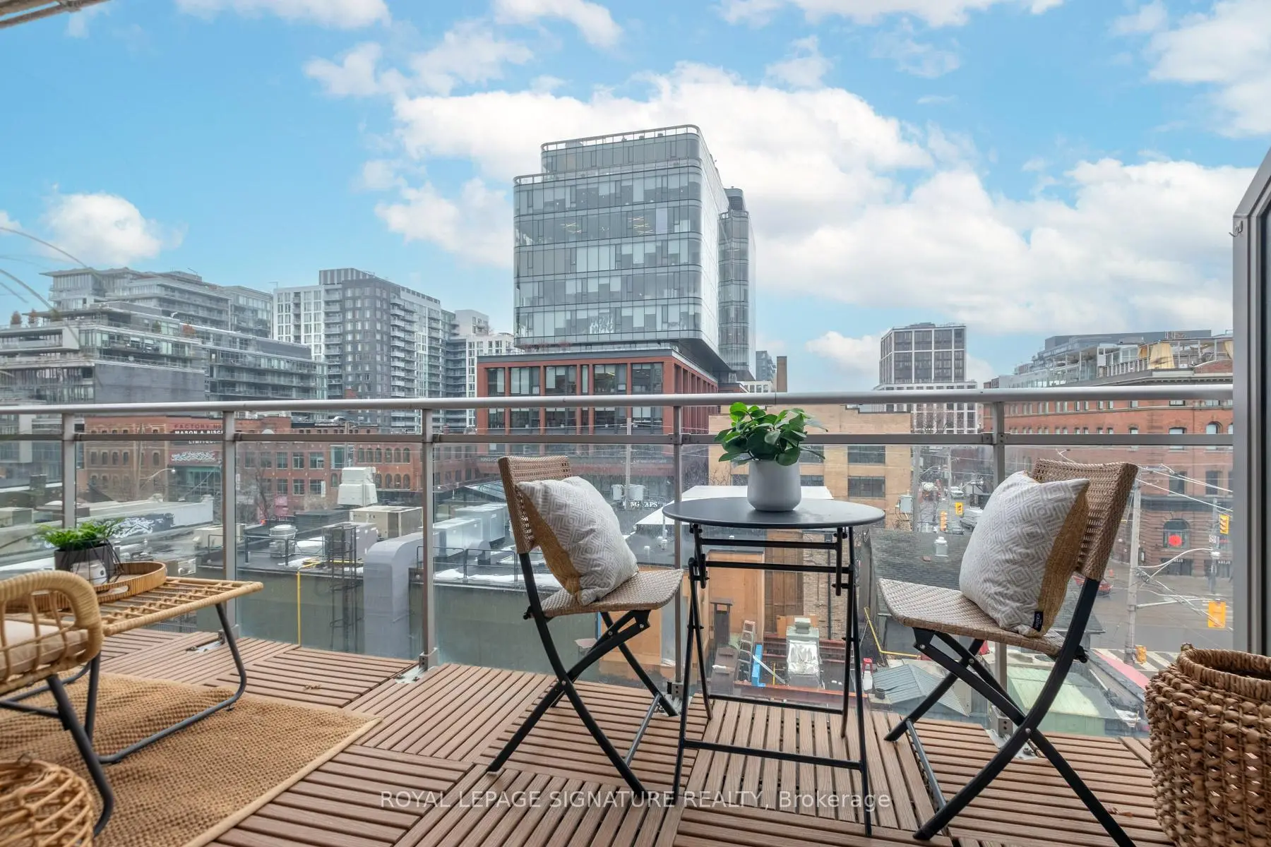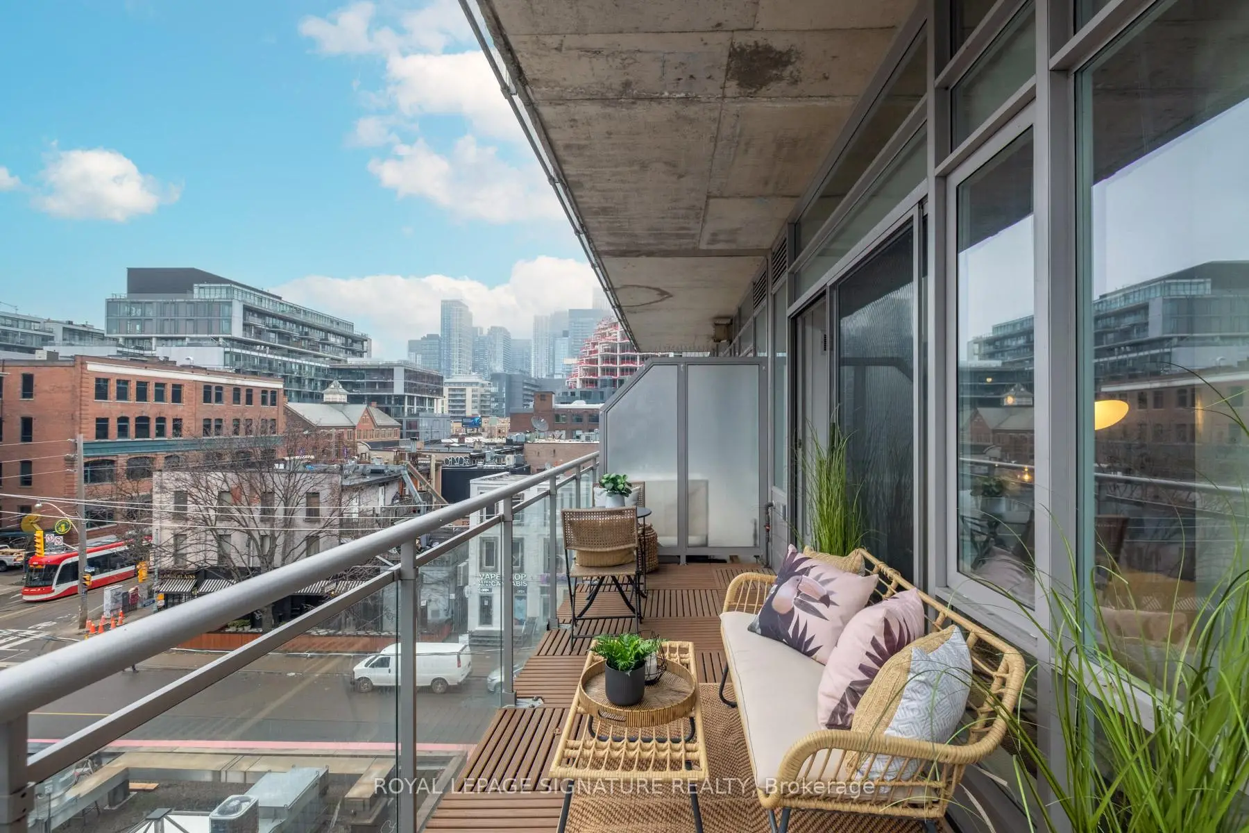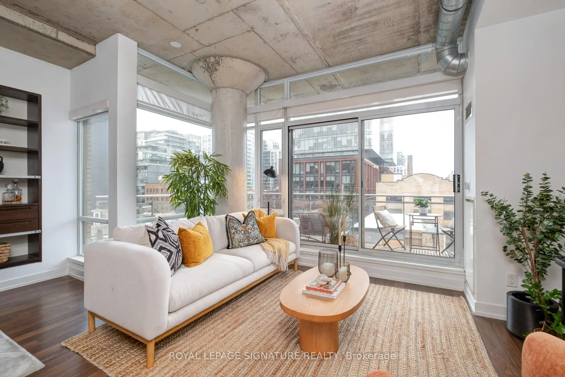Where King West energy meets boutique loft living. A gorgeous suite designed for entertaining, relaxing, & enjoying the buzz of the city. Welcome to 66 Portland St Suite 513, a beautifully updated 1+1 bedroom, 2 bathroom loft offering 927 sqft. of thoughtfully designed living space in a prime boutique building. This industrial-chic yet warm & inviting suite offers the perfect balance of vibrant city living & peaceful retreat. Experience the best of both worlds - the vibrant energy of King West at your doorstep, with quieter neighbourhood streets just moments away. Designed for both entertaining and everyday living, the spacious layout showcases a true full-size dining area anchored by custom built-in shelving, creating the perfect setting for hosting. The beautifully updated kitchen features an oversized island, new appliances including a gas stove, & excellent storage. A separate, full-sized living room framed by floor-to-ceiling windows opens directly onto a large 130 sqft. balcony complete with a gas line for BBQing, creating a seamless indoor-outdoor flow. Whether entertaining friends or enjoying a quiet evening outside, the balcony feels like a natural extension of the living space. The generous den functions beautifully as a large home office, ideal for today's work-from-home lifestyle. The primary bedroom comfortably accommodates a king-sized bed & features a walk-in closet with custom built-ins & a private ensuite. A rare second bathroom adds convenience for guests which is a rare & standout feature. Thoughtful upgrades throughout include custom built-in storage in both the hallway closet & walk-in closet, along with window coverings, maximizing both functionality & style. This suite is complete with prime parking & a large locker. With its generous square footage & rare layout offering a full dining area, spacious kitchen, & separate living room, this suite truly lives like a home in the sky. A King West opportunity that you need to see for yourself.