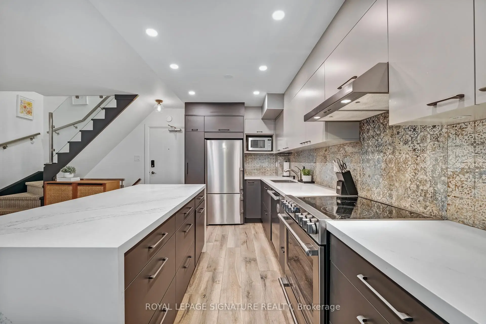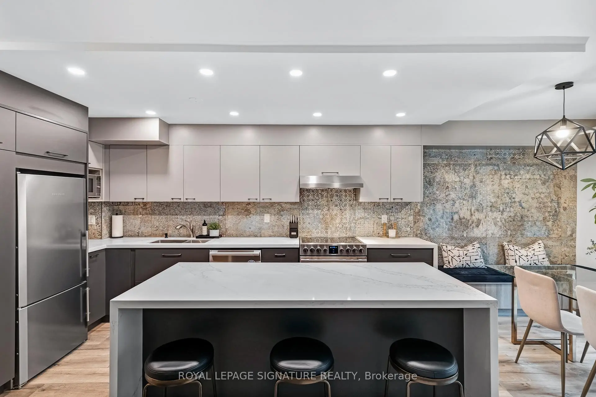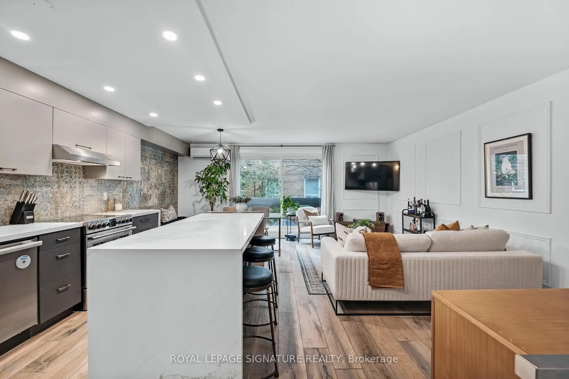 Some homes fit into the city. Others become part of its story. Welcome to the Annex. Tucked behind an understated brick façade, this beautifully renovated townhouse unfolds across four thoughtfully designed levels and more than 1,800 sq ft of living space. With 3 bedrooms and 3 washrooms, the layout strikes that rare balance: generous enough to grow into, yet effortless to live in every day. The main floor was designed for gathering. A modern kitchen with generous island and built-in banquette anchors the open-concept living and dining areas, while sliding doors invite in fresh air and leafy views. Upstairs, the top level becomes a private retreat. The spacious primary suite features a beautifully renovated ensuite, while a dedicated skylit office offers a bright work-from-home space. Two additional bedrooms and a second renovated washroom provide flexibility for family or guests. Downstairs, a cinematic family room with fireplace, projector and blackout screen creates a true movie-night experience. Walk out to an exclusive patio with screened-in gazebo - a private outdoor retreat made for summer barbecues and evening cocktails. Smart-home lighting and wireless security screen adds modern ease. Only ten homes share this secure boutique enclave, known for its warm community. Underground parking and a large storage locker make daily life wonderfully uncomplicated. Set on a quiet one-way street - noticeably calmer than nearby Bedford or St. George - yet steps to the subway, U of T, parks, groceries, restaurants, galleries and Yorkville's boutiques. In short: city living, written exactly the way it should be.