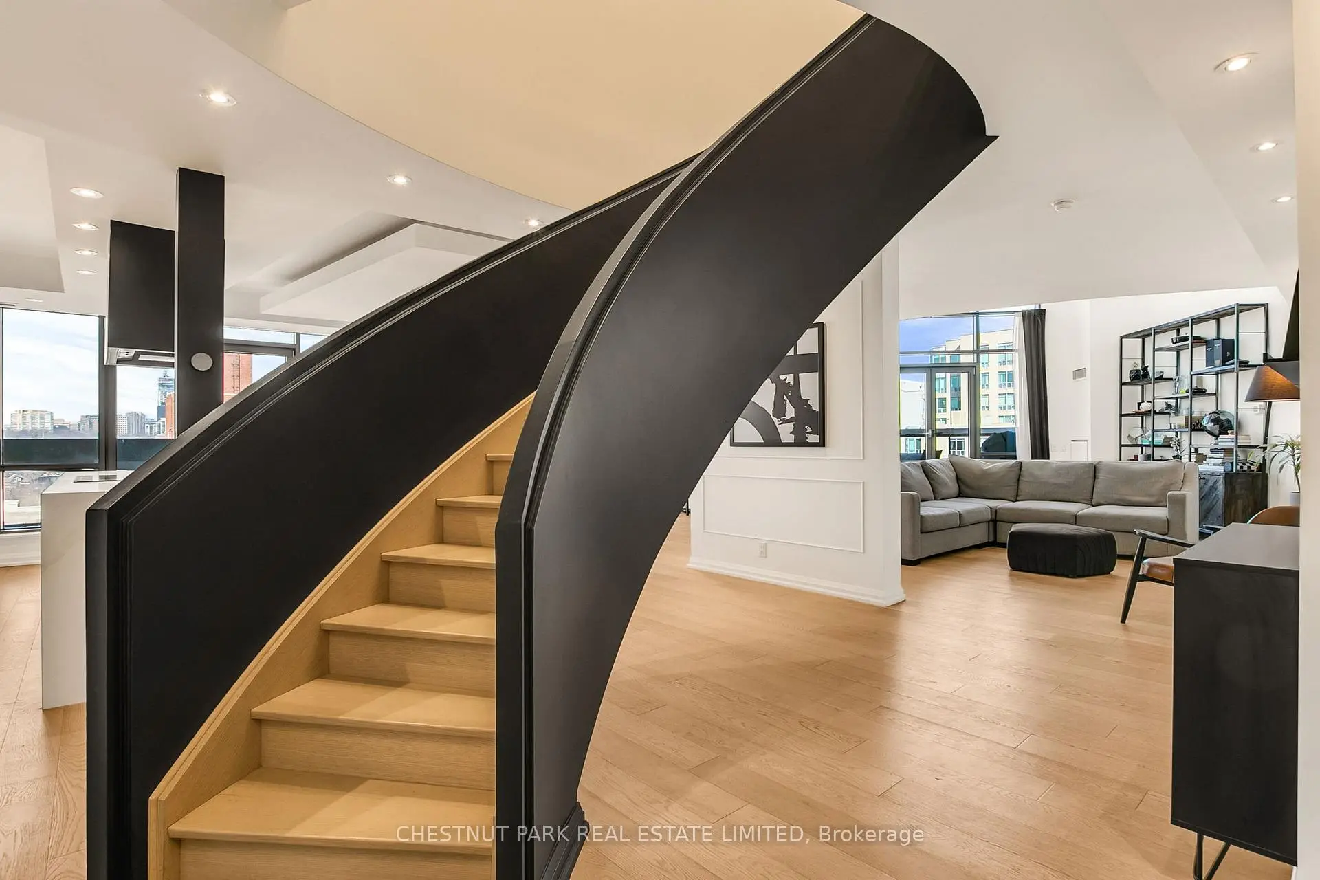 Experience luxury in this exceptionally renovated penthouse, exquisitely reimagined to evoke the refined elegance & glamour of a Manhattan home in the sky. Nestled in Yorkville -Toronto's most coveted enclave of high-end fashion &world-class dining, this prestigious suite offers an elevated urban lifestyle. Thoughtfully re-designed with an emphasis on space, light & premium materials, this expansive 2-storey penthouse with 3 bedrooms & 3 renovated bathrooms, impresses with 2,256 sq ft of sophisticated interior living space. Enter through a gracious foyer into a luminous interior where an architectural staircase makes a statement & abundant natural light create an atmosphere of calm & grandeur. Wide plank 6.5" white oak engineered hardwood floors extend throughout, enhanced by dramatic arched & floor-to-ceiling windows that frame the city skyline. The designer kitchen features Caesarstone counters, a micro cement concrete finished backsplash, top-tier appliances (Liebherr, Gaggenau & Fisher & Paykel) & custom cabinetry tailored for both culinary passion & curated entertaining. Elegant transitions between spaces make every corner feel intentional & luxurious. The family room has dramatic double height 18'6" ft ceilings, a walkout to the terrace & a separate space that could be partitioned off to create a main floor office. Upstairs, a generous primary suite features wrap-around windows, 2 walk-in closets & an oversized spa-like bathroom with a soaker tub, double vanities & a custom glass shower ensuring comfort without compromise. 2 additional bedrooms & a renovated 3 pc bathroom complete the 2nd floor. Step onto your private balconies -these outdoor living spaces provide the perfect backdrop for morning coffee or evening soirées. With 2 parking spots, a locker, & access to building amenities, this residence is an exceptional opportunity for the discerning buyer seeking turnkey elegance, architectural character & the unmistakable feel of a penthouse in the sky.
