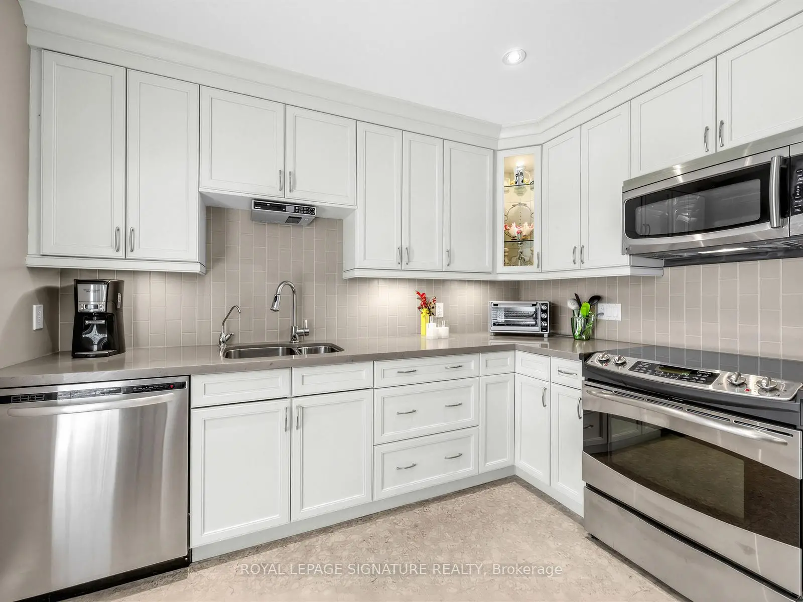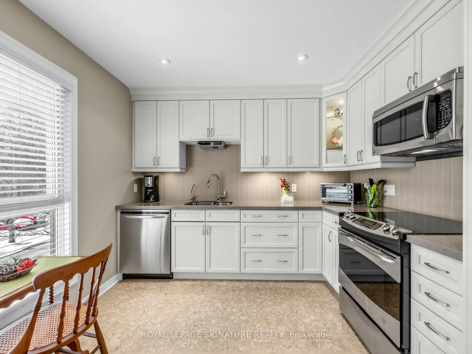 Lovingly maintained by the owner. Designer kitchen with quartz counters, stainless steel appliances, Canadian made maple cabinets, cork flooring, reverse osmosis water filter. Exterior tile on front step, interlocking brick on front sidewalk and back patio. High security front door, High efficiency furnace and heat pump. Replaced automatic garage door opener with higher quality, quieter, belt driven model (2025)200 amp electrical service. Small enclave ideally situated in a park-like setting with ravine entrance. Close to TTC, Go, Easy Access to 401, 404 and 407 top ranked schools including A.Y. Jackson and Cliffwood Public School. Low Maintenance Fees, meticulously maintained suite, freshly painted, loads of storage. Must be seen!