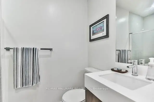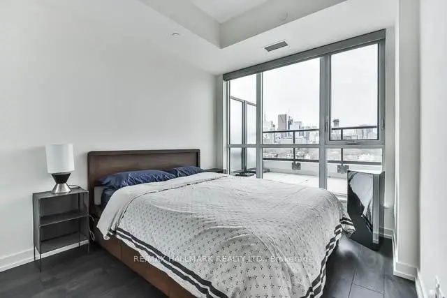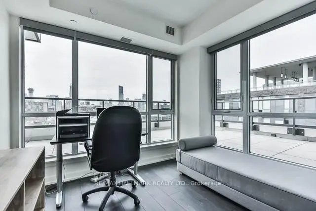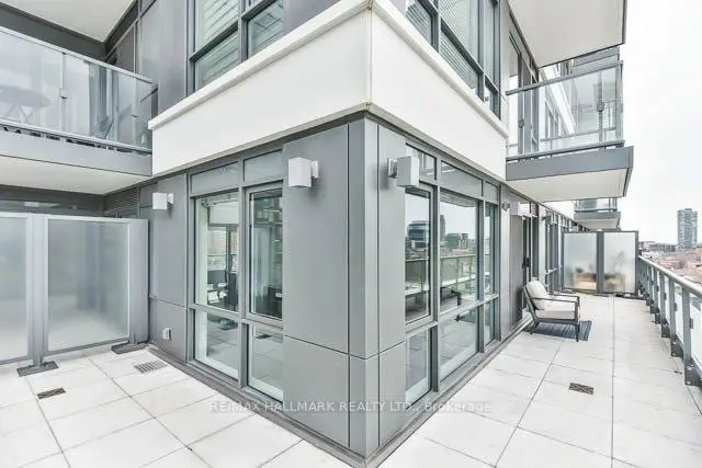 Calling all condo buyers in search of a huge, dreamy 350 sq ft wrap-around terrace with a water line and power! This bright and beautifully maintained 2-bedroom, 2-bathroom corner suite offers an extremely functional layout and spectacular unobstructed west-facing views of the entire downtown Toronto skyline with parking & a locker! Feels bigger than the square footage. Freshly painted interior & professionally cleaned make it move-in ready! Soaring 9-ft ceilings, mainly remote controlled blinds & wide-plank dark wood laminate flooring throughout. Functional kitchen with stone countertops & an undermounted stainless steel sink. The primary bedroom features built-in closet organizers, a stylish custom feature wall, and a 4-piece ensuite bathroom. The second bedroom features both north and west exposures, bringing in lots of natural light, and also includes built-ins within the closet. A 3-piece second bathroom with an enclosed shower offers added convenience for guests. Additional features include a convenient coat closet with built-ins at the front door & a NEST thermostat. Located in a vibrant neighbourhood just steps to the TTC and walking distance to Queen St E, you'll be surrounded by some of the best restaurants, pubs, and local amenities. Grocery stores, pharmacy, public pool, recreation centre, schools, library, and more are all nearby, making this an unbeatable urban lifestyle location. Photos are from previous listing, currently vacant and spotless! Pet friendly. Building has visitor parking, otherwise 10 min parking available Monday to Friday on St.David street between 7am & 6pm. Free parking on the North side of Dundas on Sumach a few blocks east.