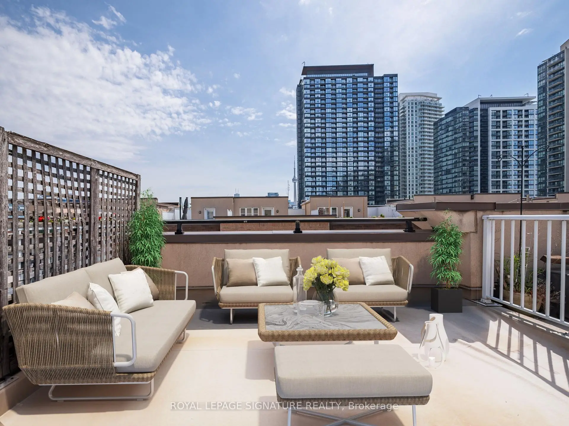 The perfect 180 Square Foot Private Rooftop Terrace with CN Tower Views. The perfect location. This 819 Square Foot, Upper Level Townhouse in Liberty Village is Bright, Airy and Cozy. Spacious 1+Den Layout, Freshly Painted throughout, Updated Kitchen Cabinets and Hardware. New Vinyl Flooring and Lighting Throughout. Extra Large Bedroom. Full Size Appliances. Bedroom Easily Fits a large Bed with Plenty of Space Left Over. The Den has an added closet but can easily be converted to a Work From Home Space or even more Closet Space. A short walk to Altea, one of the best gyms in the city. This is the location you want for the all the concerts and upcoming events. Perfect for Summer and Easy Access to Transit. Street Parking Permit may be available through the city and Parking spots come up for rent in the complex.