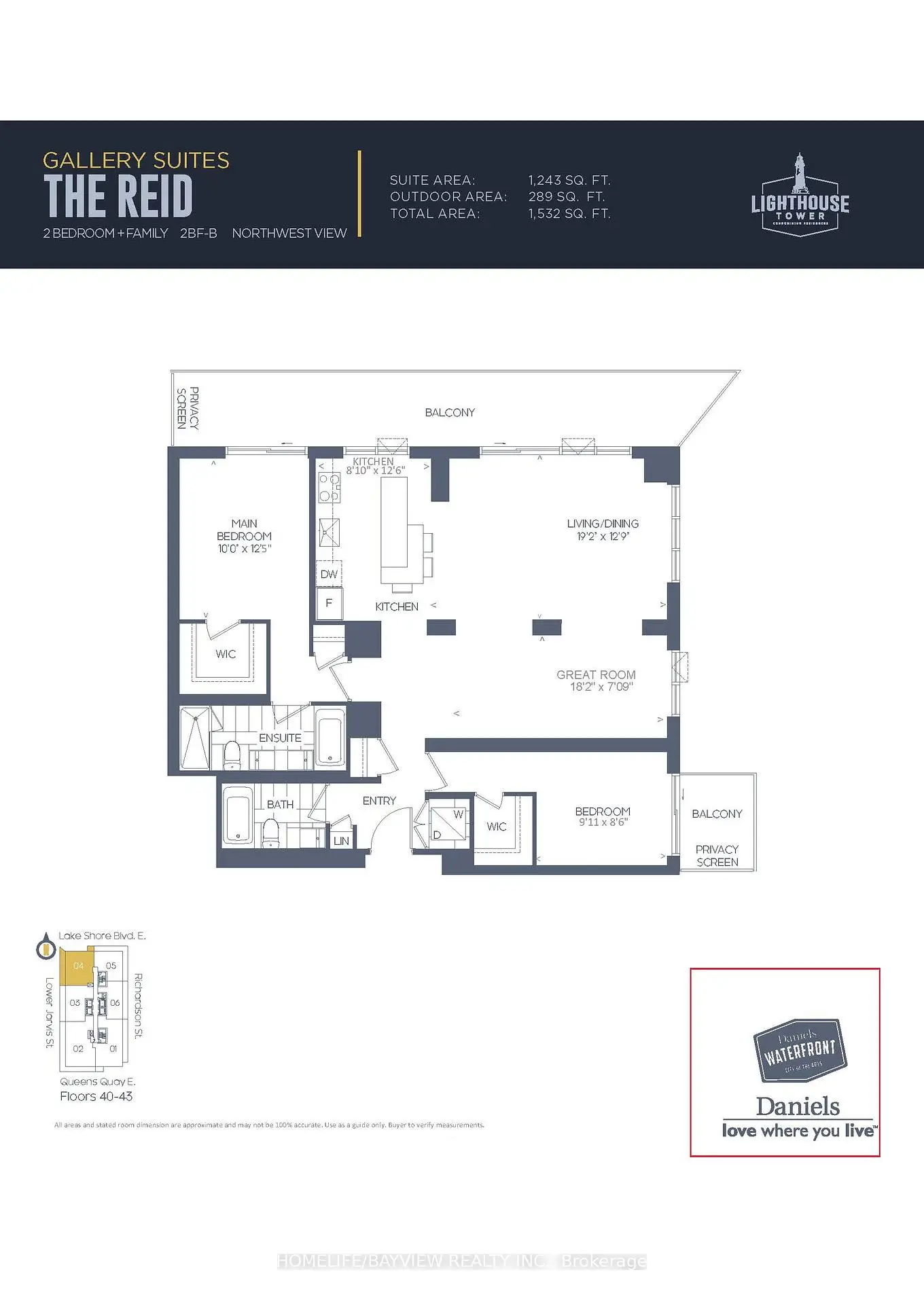 Rise to the top! Elevate your lifestyle in this unique & grand 2 bedroom + 2 washroom corner condo at Lighthouse West Tower (approx 1243 sqft+ 289 sqft balcony space). Take in the panoramic lake and city views from the expansive balcony. The Great Room -lends itself well to multi-purpose usage - whether its open concept or enclosed as a 3rd bedroom or den. Practical split bedroom plan, both bedrooms with walk-in closets & walk-out to balcony. Featuring 10' smooth ceiling, engineered wood floors, floor to ceiling windows. Chef inspired kitchen with integrated Miele appliance package (Fridge, Cooktop, B/I Oven, B/I dishwasher). Bright & spacious unit, open concept layout, great for entertaining. 3 balcony walkouts. Amazing waterfront location- steps to Loblaws, Farmboy, Shoppers Drug Mart, Restaurants, Starbucks, Cafes, Banks, George Brown College, Sugar Beach, Harbourfront, St. Lawrence market. Easy access to transit, Union Station, Gardiner, DVP, Lake Shore Blvd. *** Premium Tandem parking space. *** Owner's Furnishings can be included for a true turn key possession.