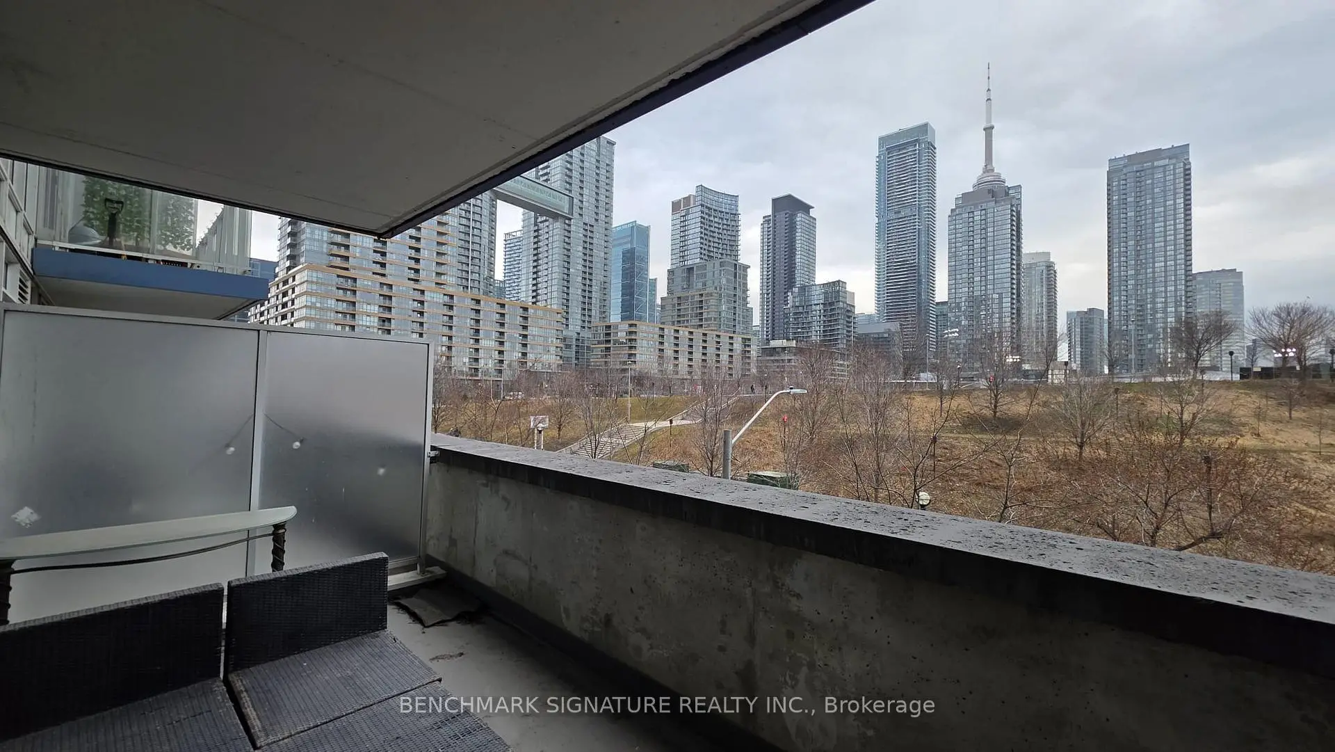 Freshly Updated & Move-In Ready. Unit 205 at 75 Queens Wharf is a spacious 1-bedroom plus den suite that avoids the typical "condo-sized" compromises. Recently refreshed with brand-new flooring and a professional coat of paint, this unit offers a clean, modern aesthetic from the moment you walk in. The expansive interior features a dedicated den-ideal for a proper home office-and a large primary bedroom. One of the standout features is the oversized private terrace facing East, offering a peaceful green view over Canoe Landing Park. Positioned on the 2nd floor, it's a practical choice for those who value quick access to the outdoors and want to avoid the wait for high-rise elevators. Residents enjoy full access to the premium Prisma Club amenities, including a full gym, indoor pool, and basketball court. Enjoy effortless travel with Billy Bishop Airport just minutes away. Steps to Loblaws/LCBO, park, the Waterfront, and the world-class shopping and dining at The Well.