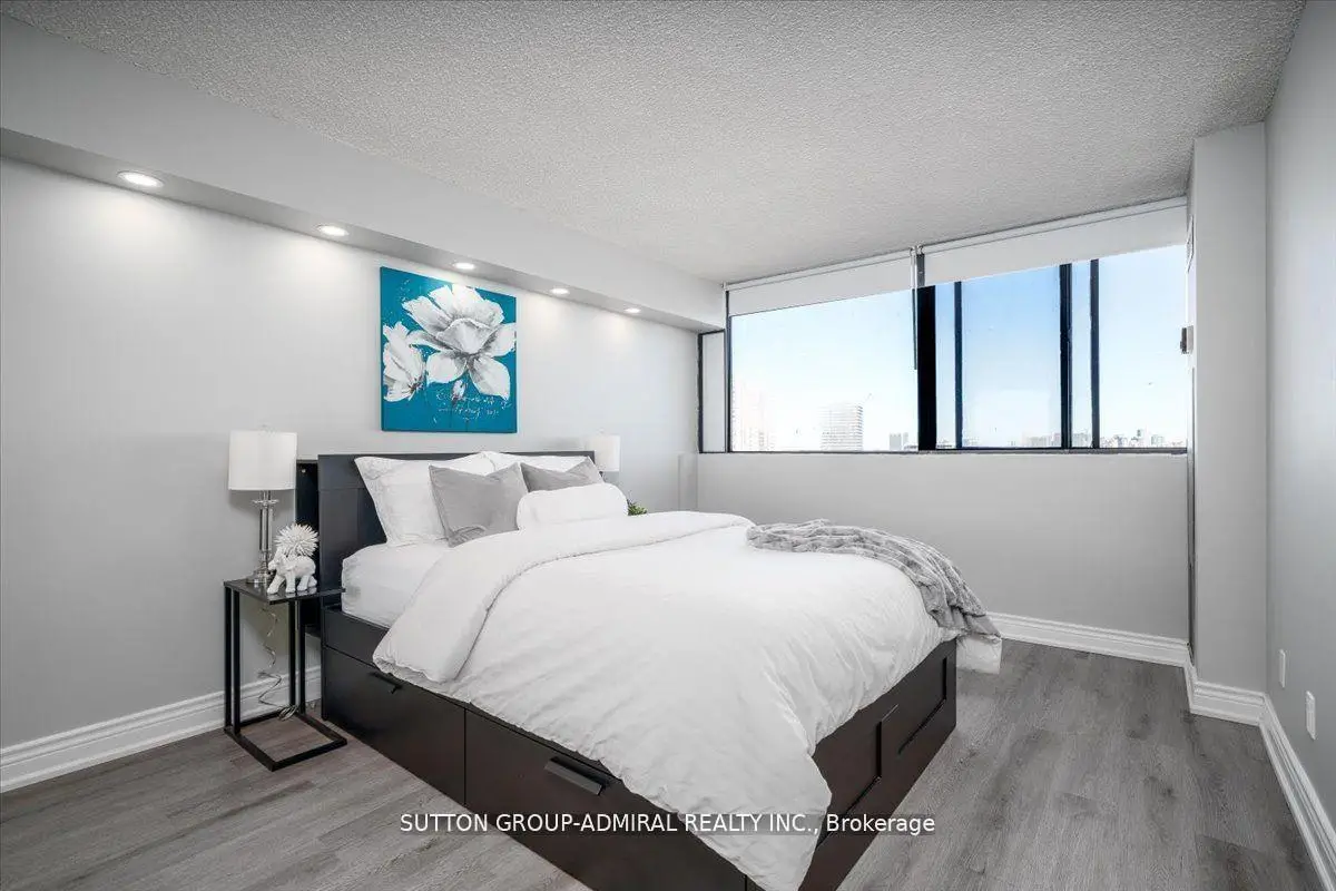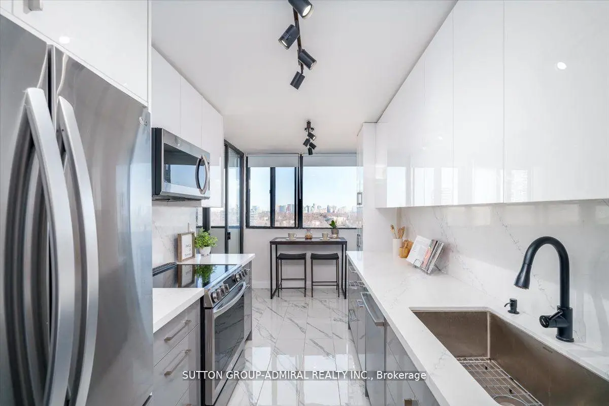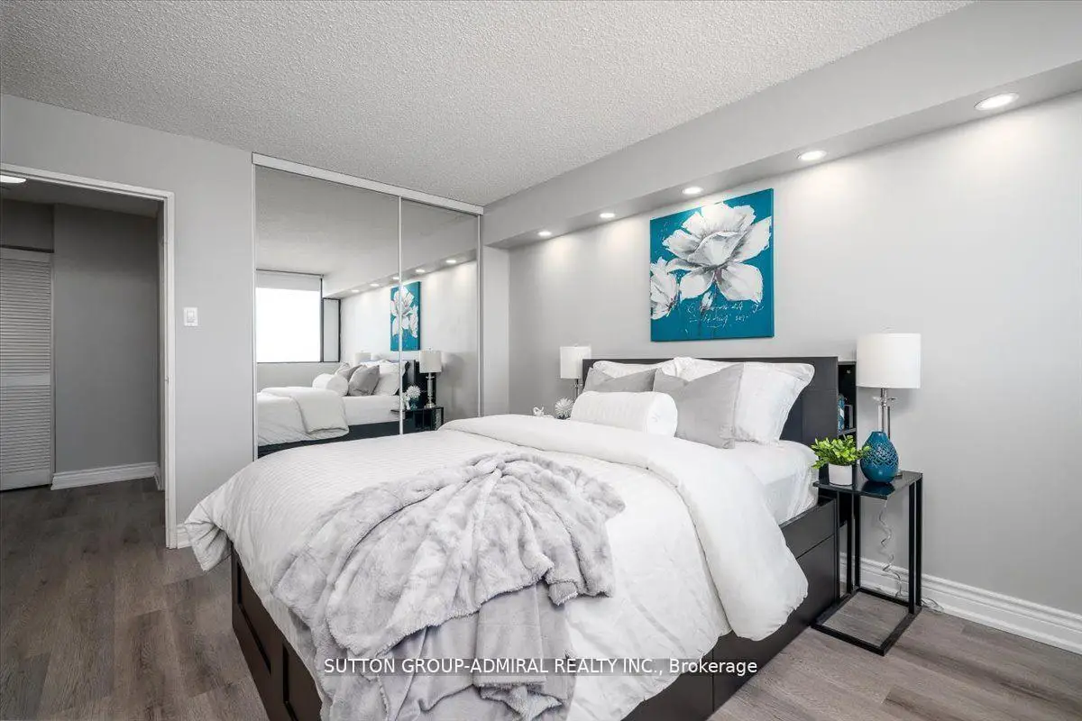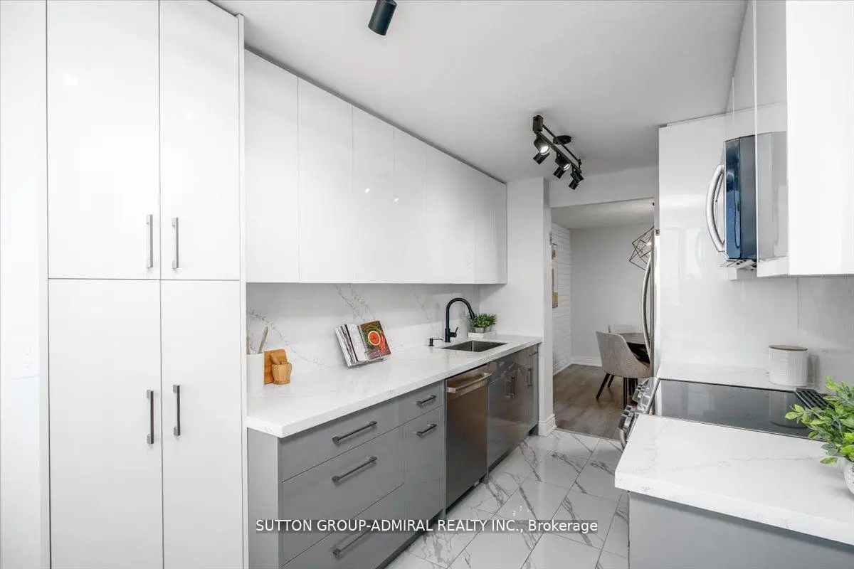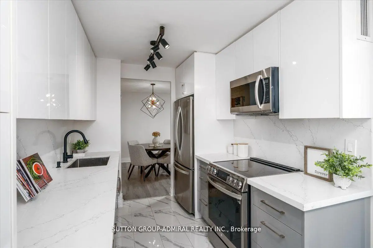 Step into elegance with this exquisite, fully renovated 2-bedroom + den, 2-bathroom condo in the prestigious North York community. Nestled amidst the lush, serene landscapes of G. Ross Lord Park, this meticulously upgraded 1,060 sq. ft. residence offers an unparalleled blend of sophistication and modern comfort. Designed with a seamless open-concept layout, the space is bathed in natural light, accentuating the rich vinyl flooring and carefully curated finishes. The gourmet kitchen is a chefs dream, featuring stunning quartz countertops, and backsplash, and top-of-the-line appliances (only 3 years new). The versatile den serves as the perfect home office, an inviting third bedroom, or a charming playroom. Indulge in the convenience of an en-suite locker, providing ample storage without compromising on style. Every detail has been thoughtfully designed to offer the perfect balance of luxury and functionality. The building offers excellent amenities including a gym, pool, sauna, ping pong and billiards room, with a bus stop to finch station commuting and outdoor activities are effortless plus the highly anticipated new Centennial library set to open in 2025.Combining pace, comfort and convenience this condo is a fantastic place to call home! Property is partially virtually staged.