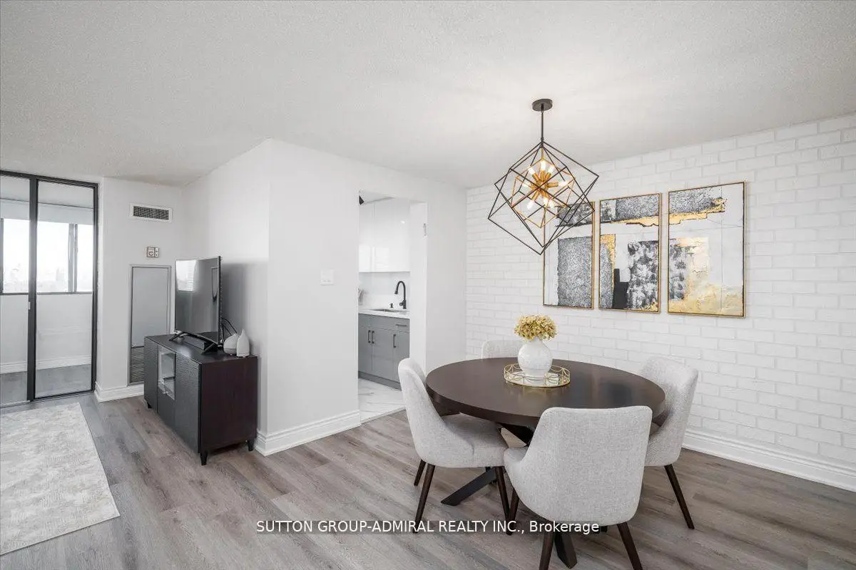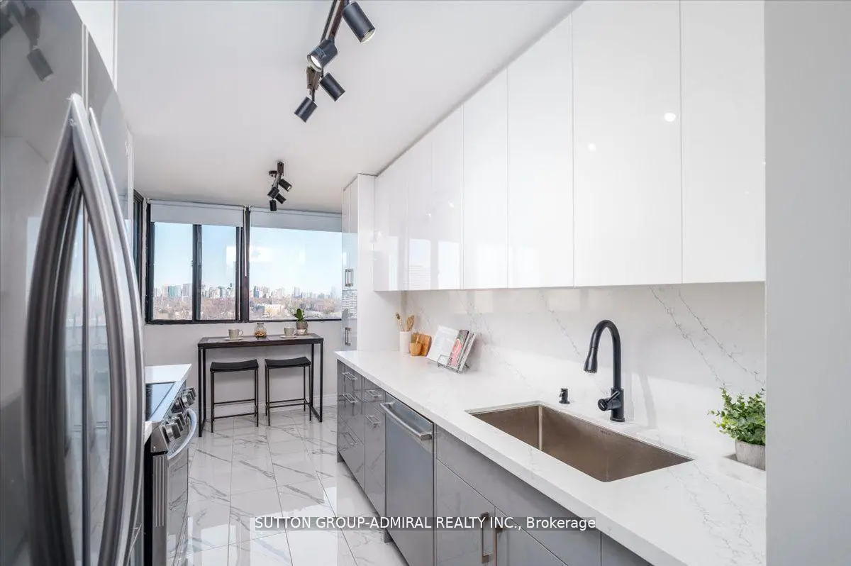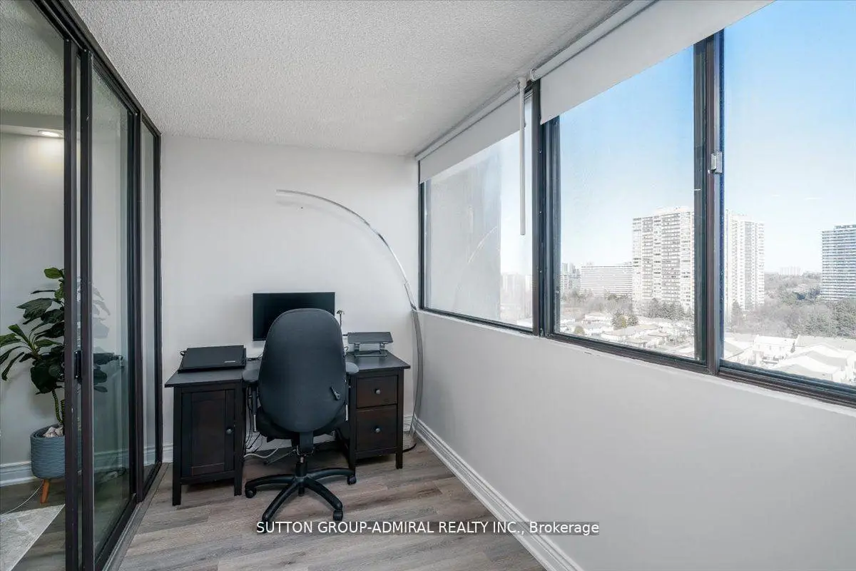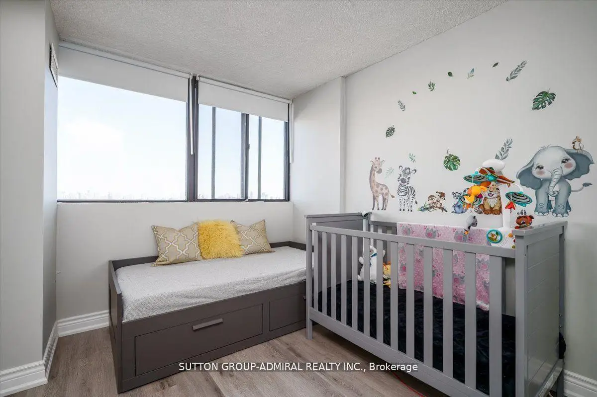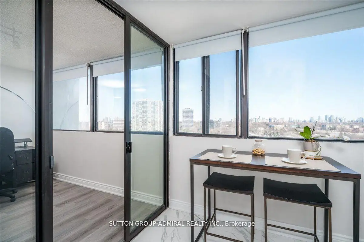 Step into elegance with this exquisite, fully renovated 2-bedroom + den, 2-bathroom condo in the prestigious North York community. Nestled amidst the lush, serene landscapes of G. Ross Lord Park, this meticulously upgraded 1,060 sq. ft. residence offers an unparalleled blend of sophistication and modern comfort. Designed with a seamless open-concept layout, the space is bathed in natural light, accentuating the rich vinyl flooring and carefully curated finishes. The gourmet kitchen is a chefs dream, featuring stunning quartz countertops, and backsplash, and top-of-the-line appliances (only 3 years new). The versatile den serves as the perfect home office, an inviting third bedroom, or a charming playroom. Indulge in the convenience of an en-suite locker, providing ample storage without compromising on style. Every detail has been thoughtfully designed to offer the perfect balance of luxury and functionality. The building offers excellent amenities including a gym, pool, sauna, ping pong and billiards room, with a bus stop to finch station commuting and outdoor activities are effortless plus the highly anticipated new Centennial library set to open in 2025.Combining pace, comfort and convenience this condo is a fantastic place to call home! Property is partially virtually staged.