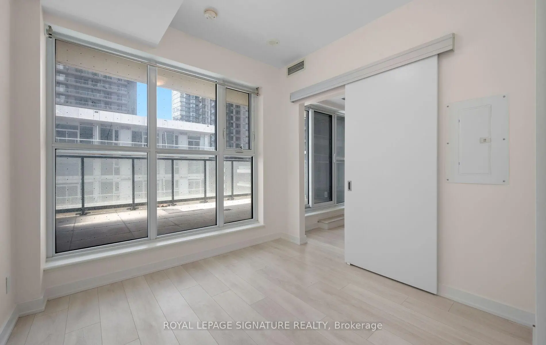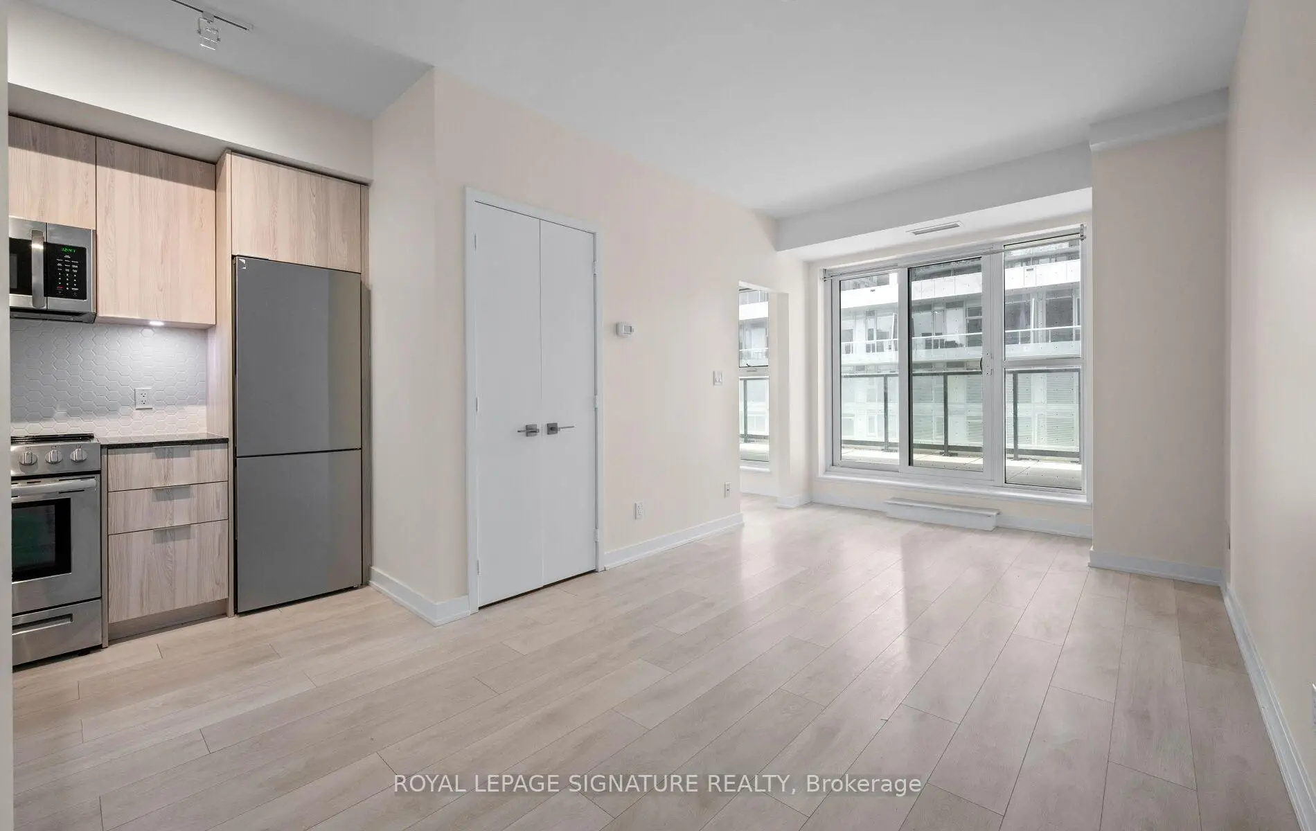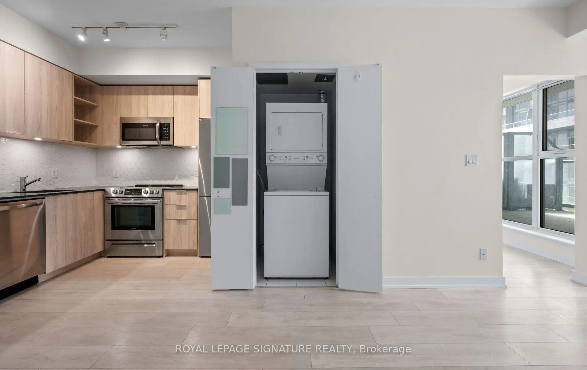 Immaculate and cozy 1-bedroom suite at Garrison Point Condos. Situated on a 3.9-acre city park with extraordinary views of Toronto's skyline. Unwind and relax-or enjoy your morning coffee-on your own private 100 sq ft terrace, also perfect for hosting summer dinners. The bright, thoughtfully designed suite features 9-ft smooth ceilings, laminate flooring throughout, and a modern kitchen with integrated Bloomberg stainless-steel appliances, custom backsplash, and quartz countertops. Exceptional building amenities include 24-hr concierge/security, gym, movie theatre, meeting/party rooms, outdoor pool, indoor hot tub & cold tub, sauna, steam room, guest suites and visitor parking. Secure building with FOB controlled elevator and floor access. Prime location: steps to TTC streetcar stops, EX-GO, QEW, new pedestrian bridge, King West, Lakeshore, waterfront trails, and parks. Walking distance to Starbucks, Metro grocery, Wine Rack, major banks, restaurants, cafes, medical and dental services, physiotherapy clinic, fitness studios, and hotels. Experience the ease of living with everything you need just moments away. **Some images have been virtually staged to illustrate potential design ideas.**