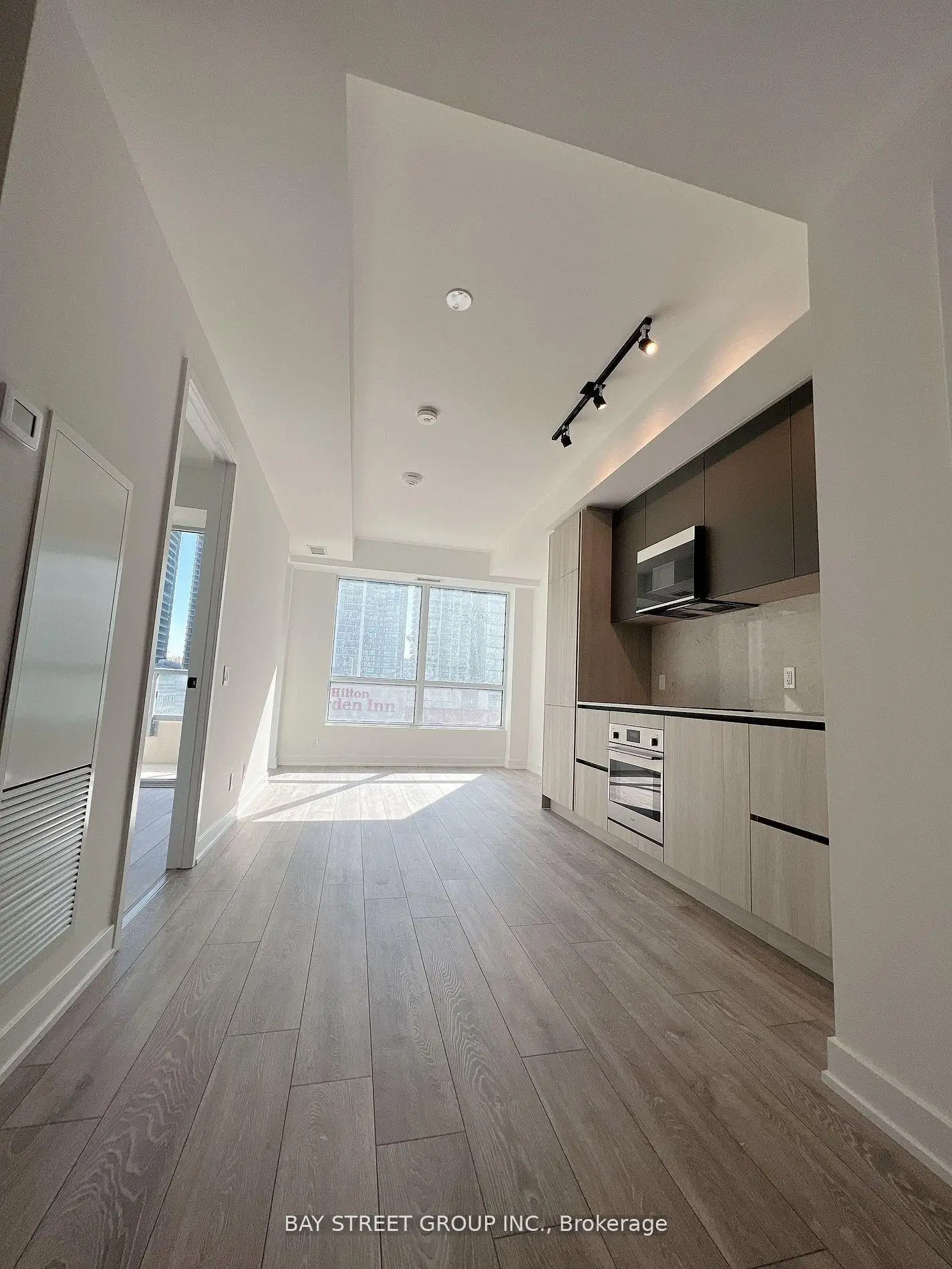 Welcome to Suite 1707 at 108 Peter Street, a 580 square foot one bedroom + den south facing condo, featuring a perfect work-from-home den and all you'd expect from the vibrant downtown living. Enjoy rare sunny south exposure, facilitated by 9-foot high ceilings. Take in the seamless, sleek living design from beautiful laminate hardwood floors, to contemporary black hardware throughout. The kitchen is complemented by integrated European appliances, quartz countertops and matching quartz backsplash. Take a breath on the south facing balcony, or indulge in the building's amenities: a rooftop pool outfitted with private cabanas, barbecues and lounge deck, party room, dedicated communal workspace, fully-equipped gym, yoga studio, infrared sauna, pet spa +more! With a perfect 100/100 Walk & Transit Score, the bustling Entertainment and Financial districts are right at your door step. One locker and convenient in-suite laundry closet included.
