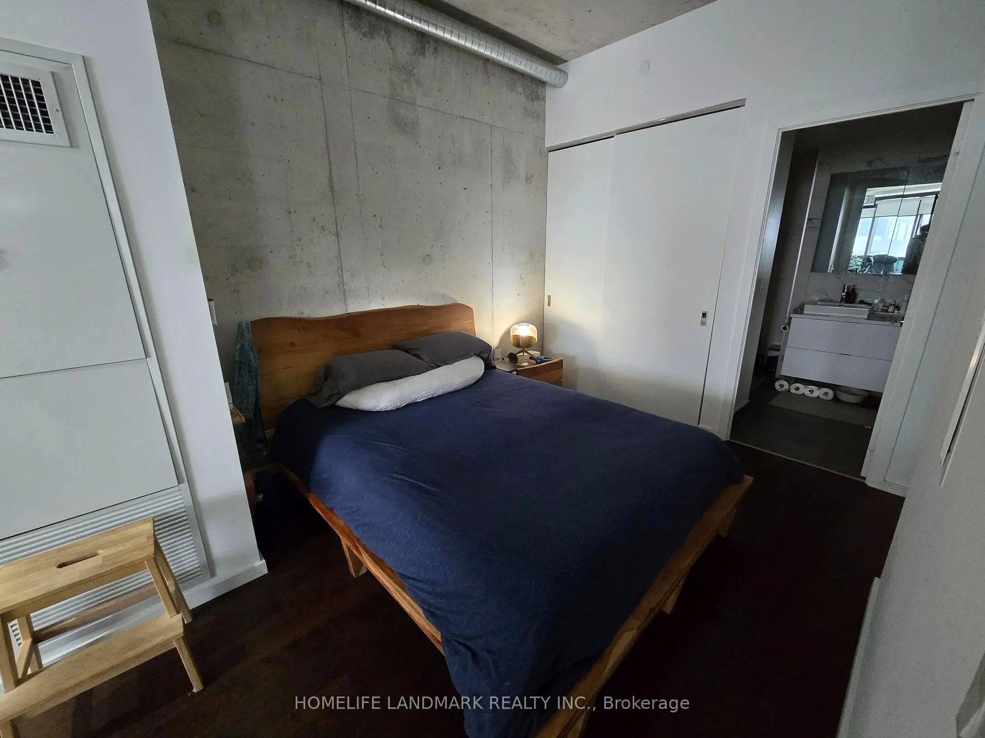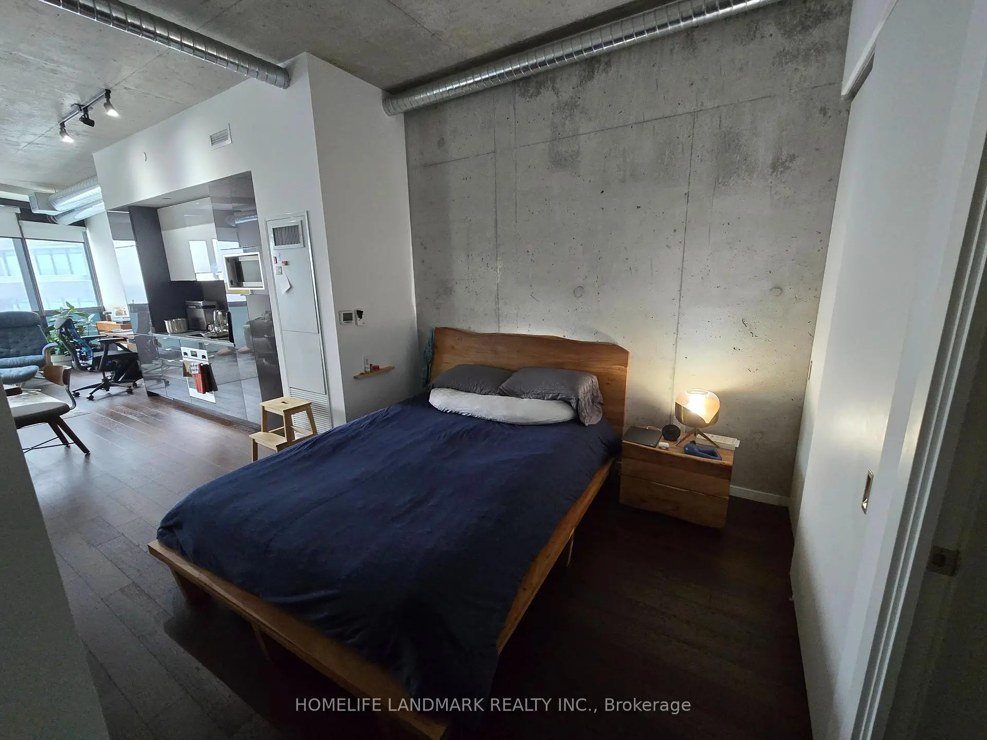 One Bedroom South Facing Directly To The Parks, Almost 10 Ft Exposed Concrete Ceiling, Just Under 600sf, Open Concept Design, Hardwood Floor Throughout, Feature Walls, Modern High End Kitchen With Integrated Appliances, Across From 18 Acres Corktown Common Park & Trails, Walk To Distillery/Leslieville/Beach Area/Lake, TTC Bus At Door Steps, 5 Min Streetcar Ride To Yonge Street & 10 Min To Financial District / Queen W Shops, 1 Parking, 1 Locker, And 2 Bike Racks Are Included, Harris Square Is A LEED Winning Green Building Located At The Future East Harbour Redevelopment Area