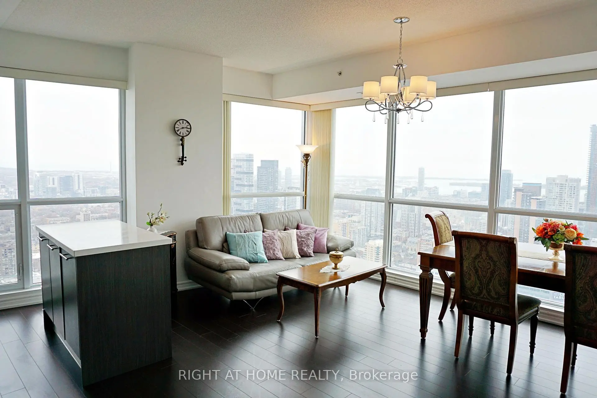 3-Br Corner(SE) Unit In 'Aura At College Park' Condo. Bright Se Exposure With Unobstructed Lake & Downtown Views. H/W Floor Thru-Out. 9'Ft Ceiling. Open Concept With Granite Kitchen Island. Direct Access To College Subway Station. Walking Distance To U Of T, Toronto Metropolitan University, Eaton Centre, Financial District, Shopping & Restaurants And More! 24 Hours Concierge. Photos Are From Previous Listing.
