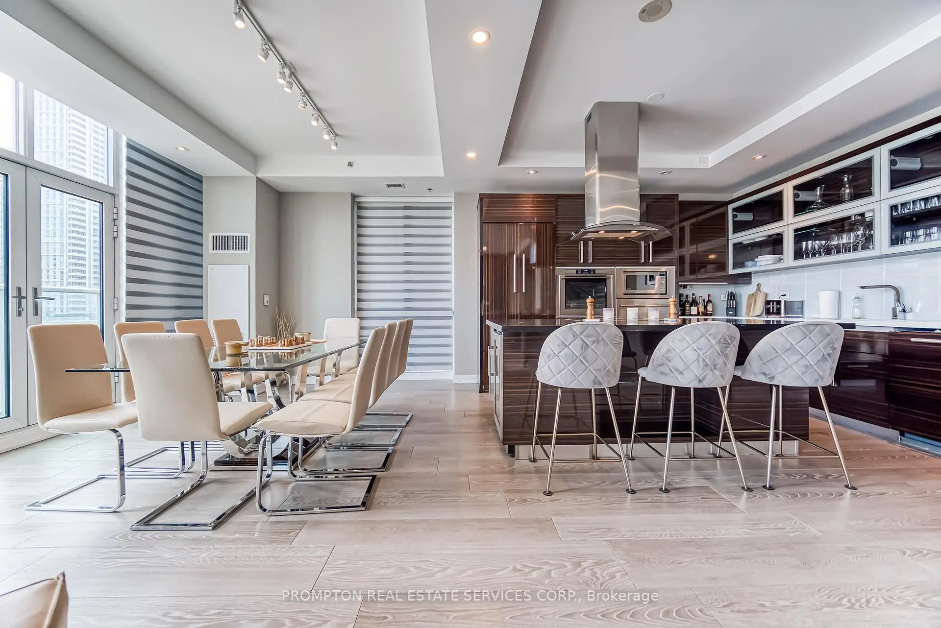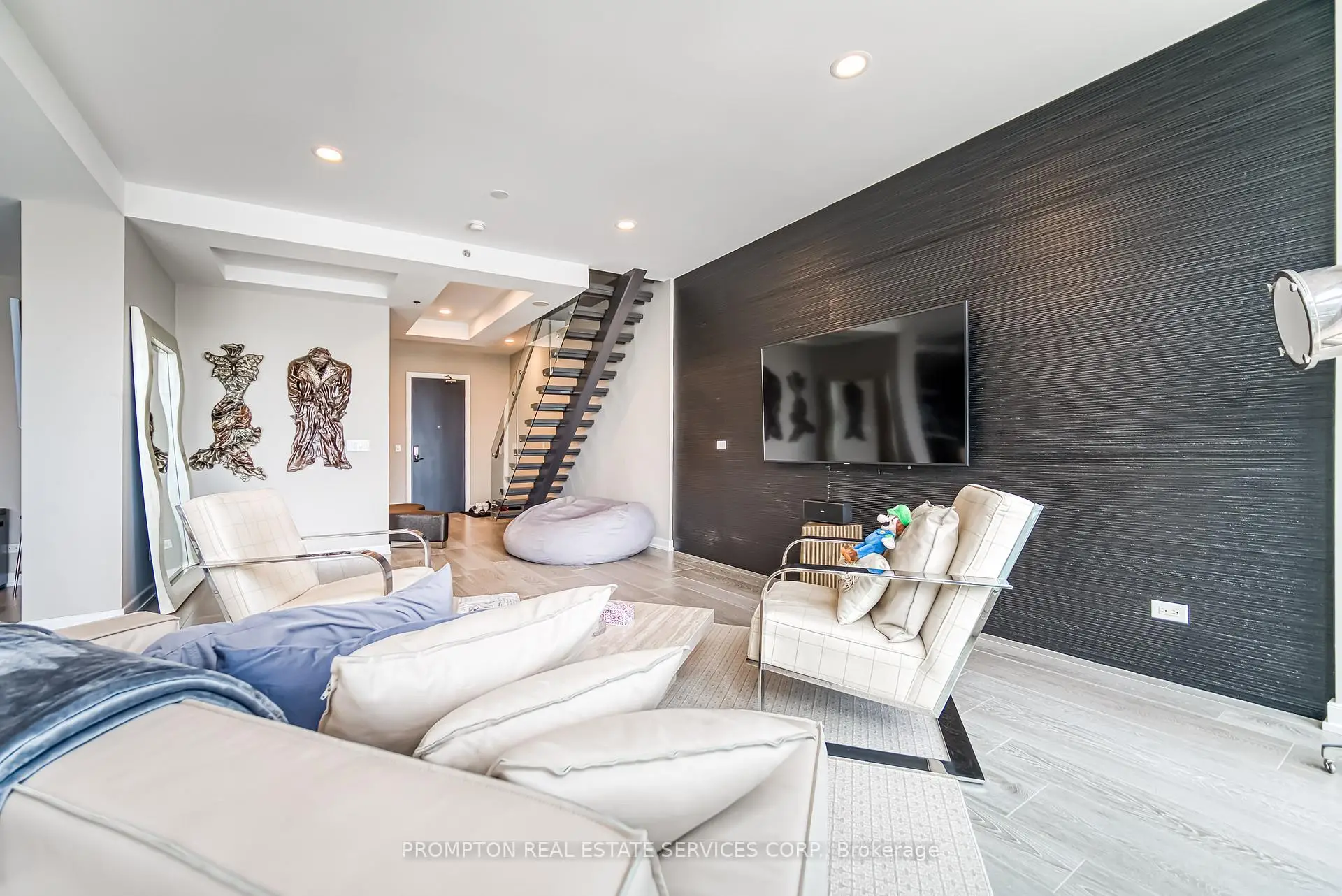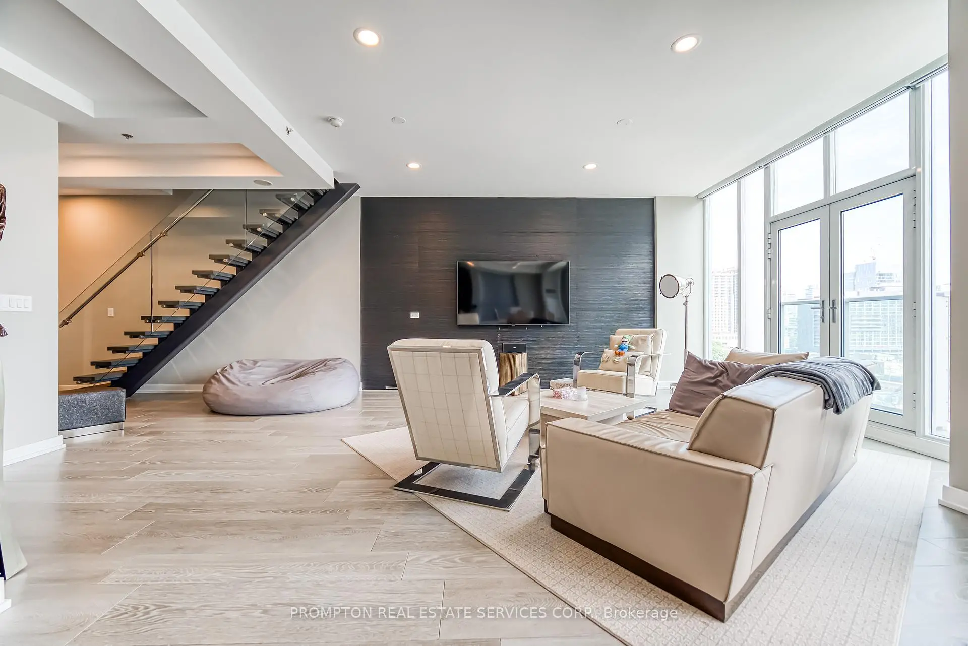 Absolutely Stunning Custom 2-Storey Penthouse in the Heart of Downtown Toronto! This sun-filled 3.bedroom, 4-bathroom residence offers luxury living just steps from the Eaton Centre, top restaurants, theatres, shopping, and the subway. Soaring 10-ft ceilings, floor-to ceiling windows, and 8-ft solid doors throughout. Modern floating staircase with glass railing, sleek custom lighting, and two spa-inspired ensuites. The Italian-designed kitchen features granite countertops, a large island, and solid cabinetry.