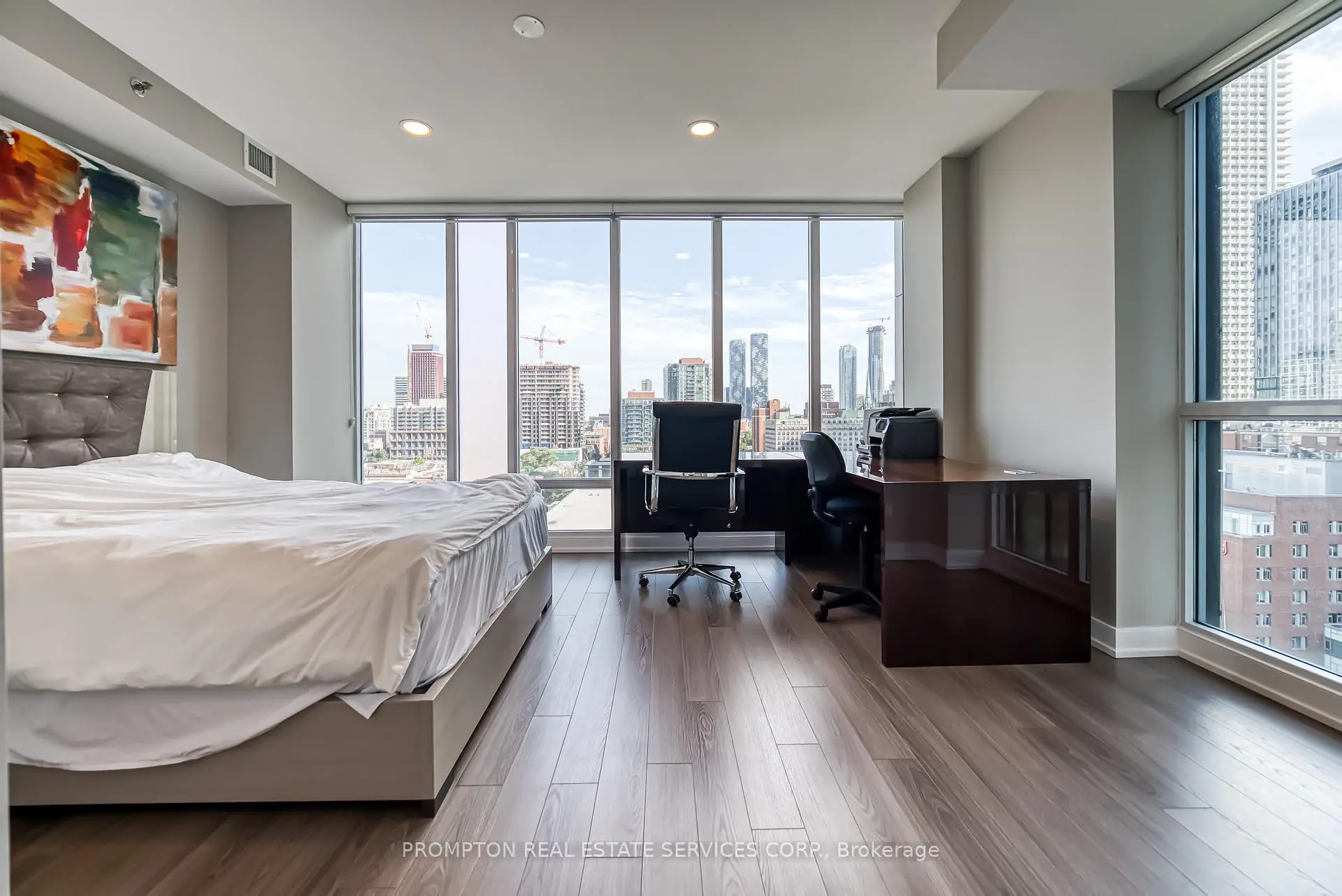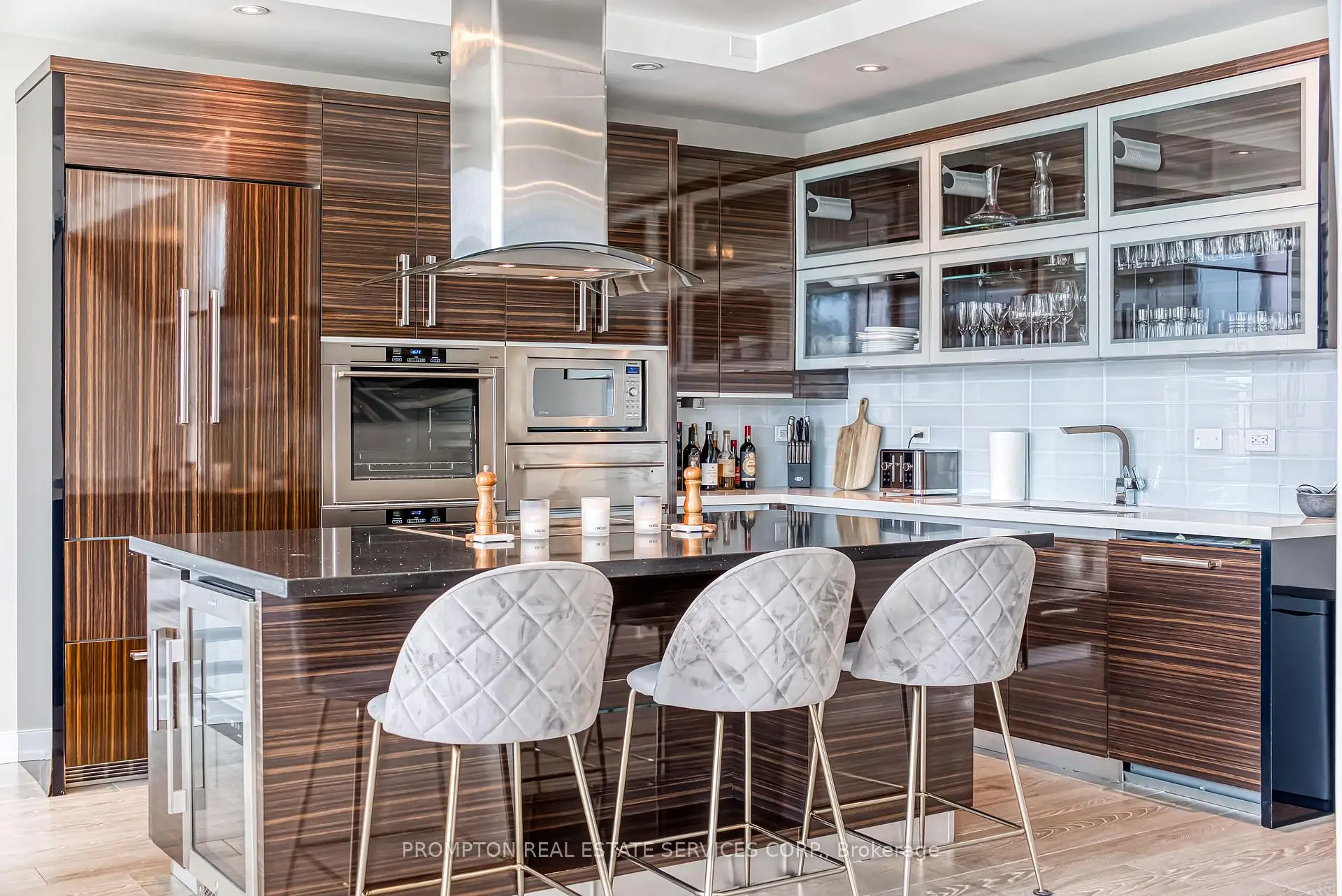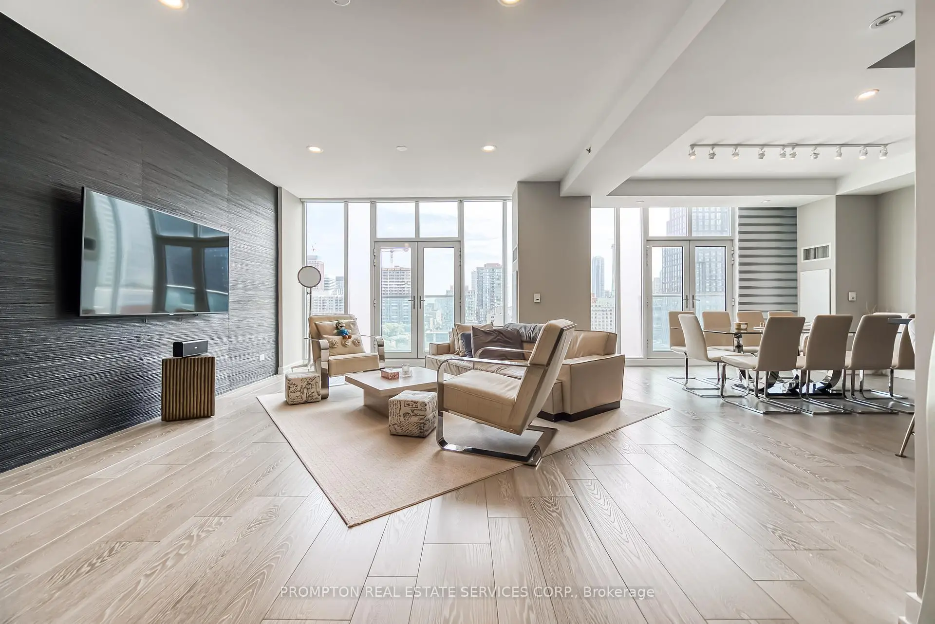 Absolutely Stunning Custom 2-Storey Penthouse in the Heart of Downtown Toronto! This sun-filled 3.bedroom, 4-bathroom residence offers luxury living just steps from the Eaton Centre, top restaurants, theatres, shopping, and the subway. Soaring 10-ft ceilings, floor-to ceiling windows, and 8-ft solid doors throughout. Modern floating staircase with glass railing, sleek custom lighting, and two spa-inspired ensuites. The Italian-designed kitchen features granite countertops, a large island, and solid cabinetry.