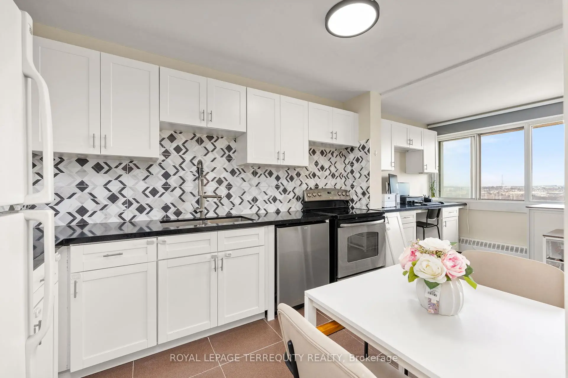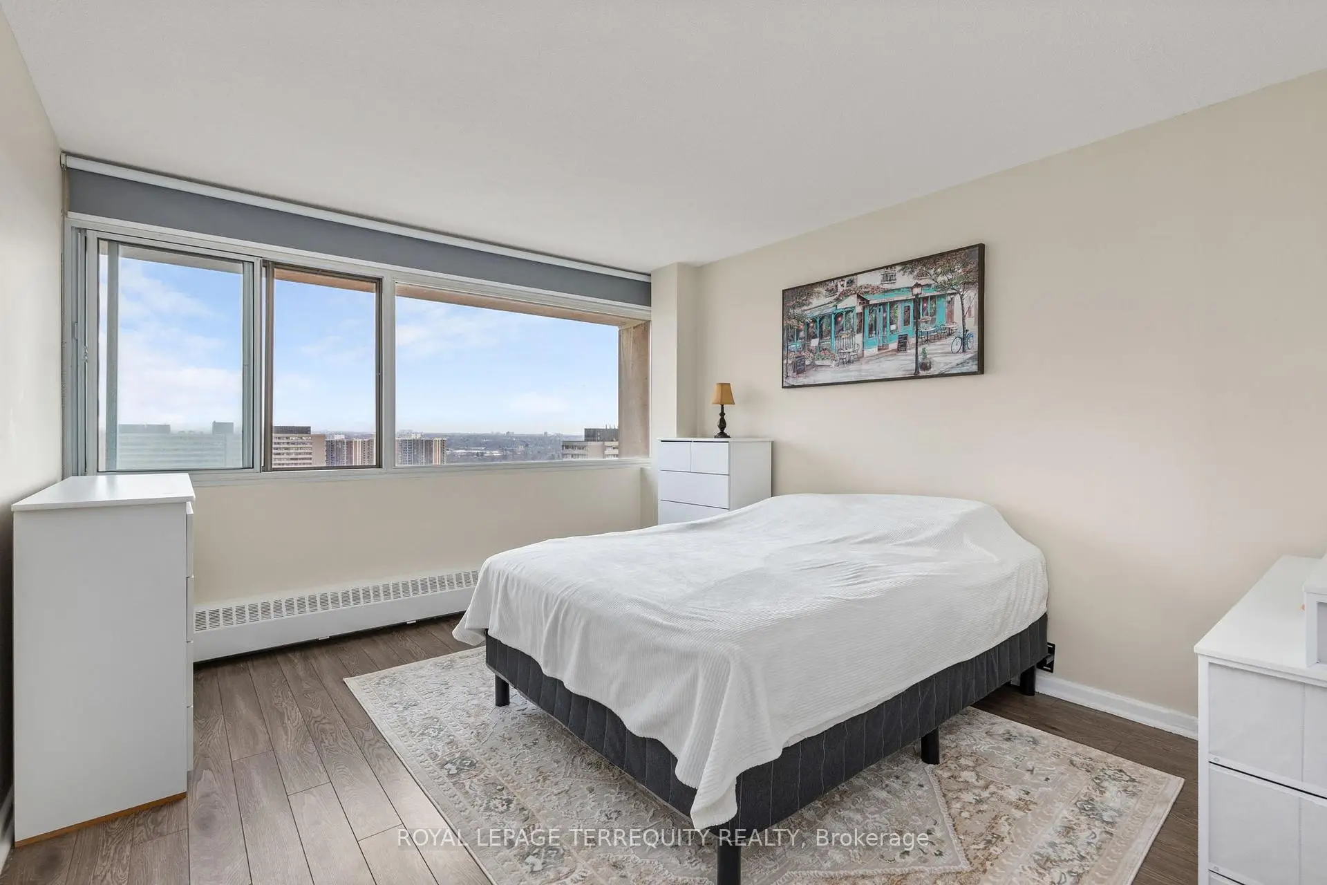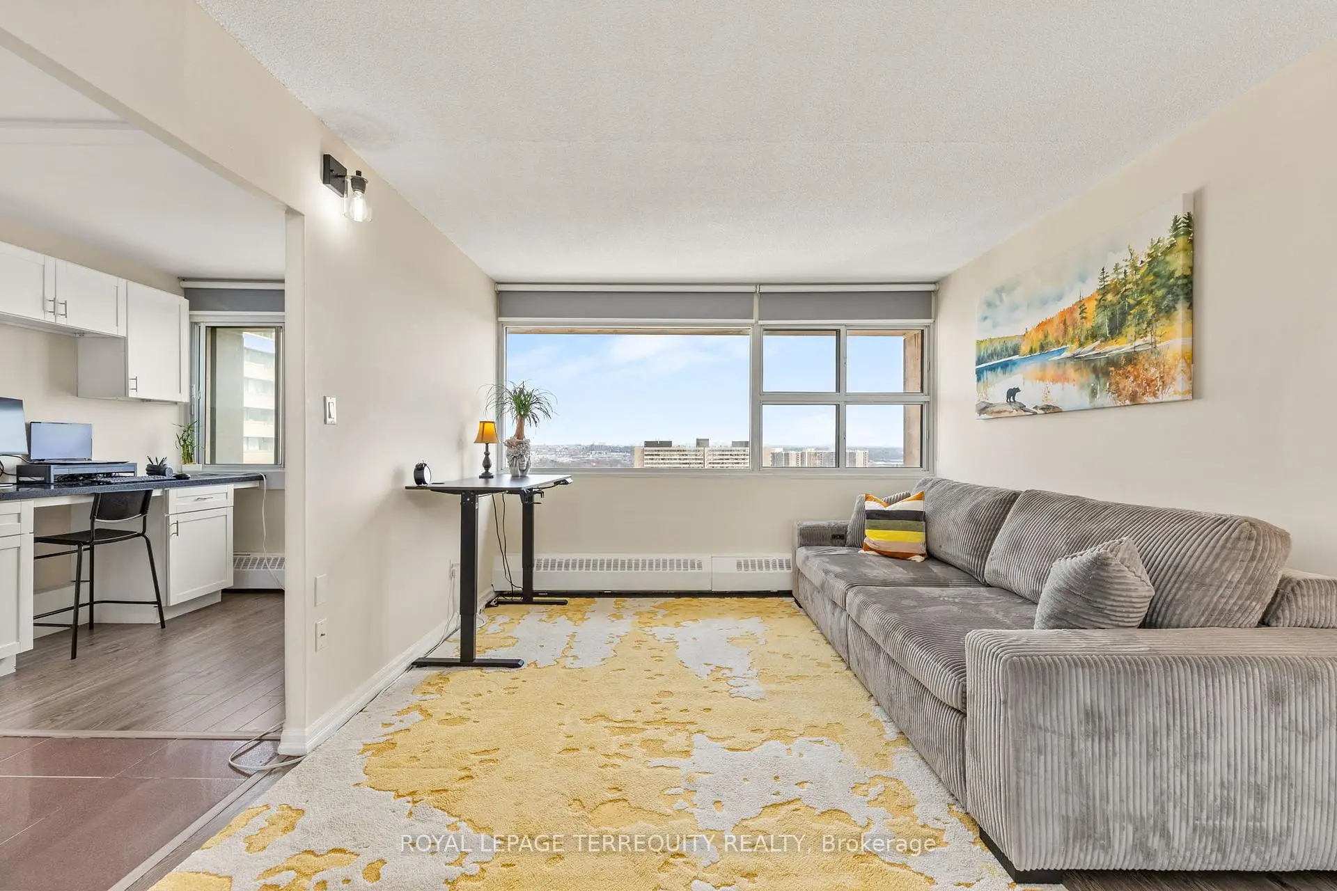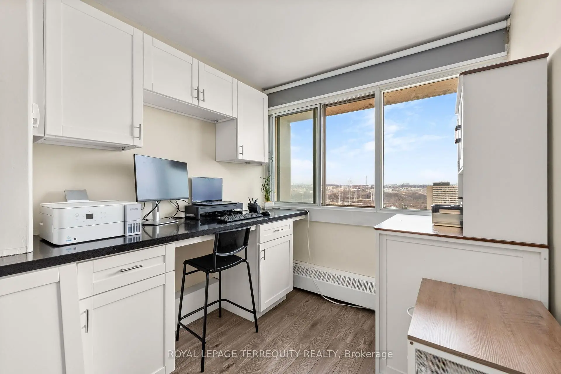 Step into a bright, fully upgraded 22nd floor condo with unobstructed east-facing views and clean, modern finishes throughout. This thoughtfully designed 1+den layout gives you the flexibility to live comfortably while working from home or growing into the space. Natural light fills the open living and dining area, creating a calm and inviting space to start your day or unwind in the evening. The sleek, upgraded kitchen features modern finishes and full-size appliances, including a new dishwasher with the latest technology, making everyday living effortless. Unlike many units in the building, this condo also offers true in-unit laundry with a newer high-efficiency system, a rare level of convenience most units simply don't provide. The spacious bedroom, functional den, and smart layout make this unit ideal for a first-time buyer looking for something turnkey without compromise. All-inclusive condo fees cover heat, hydro, water, cable, and Bell Fibe high-speed internet, keeping monthly costs simple and predictable. Conveniently located close to transit, shopping, and everyday essentials, this is a well-rounded opportunity for first-time buyers or anyone looking for low-maintenance living.