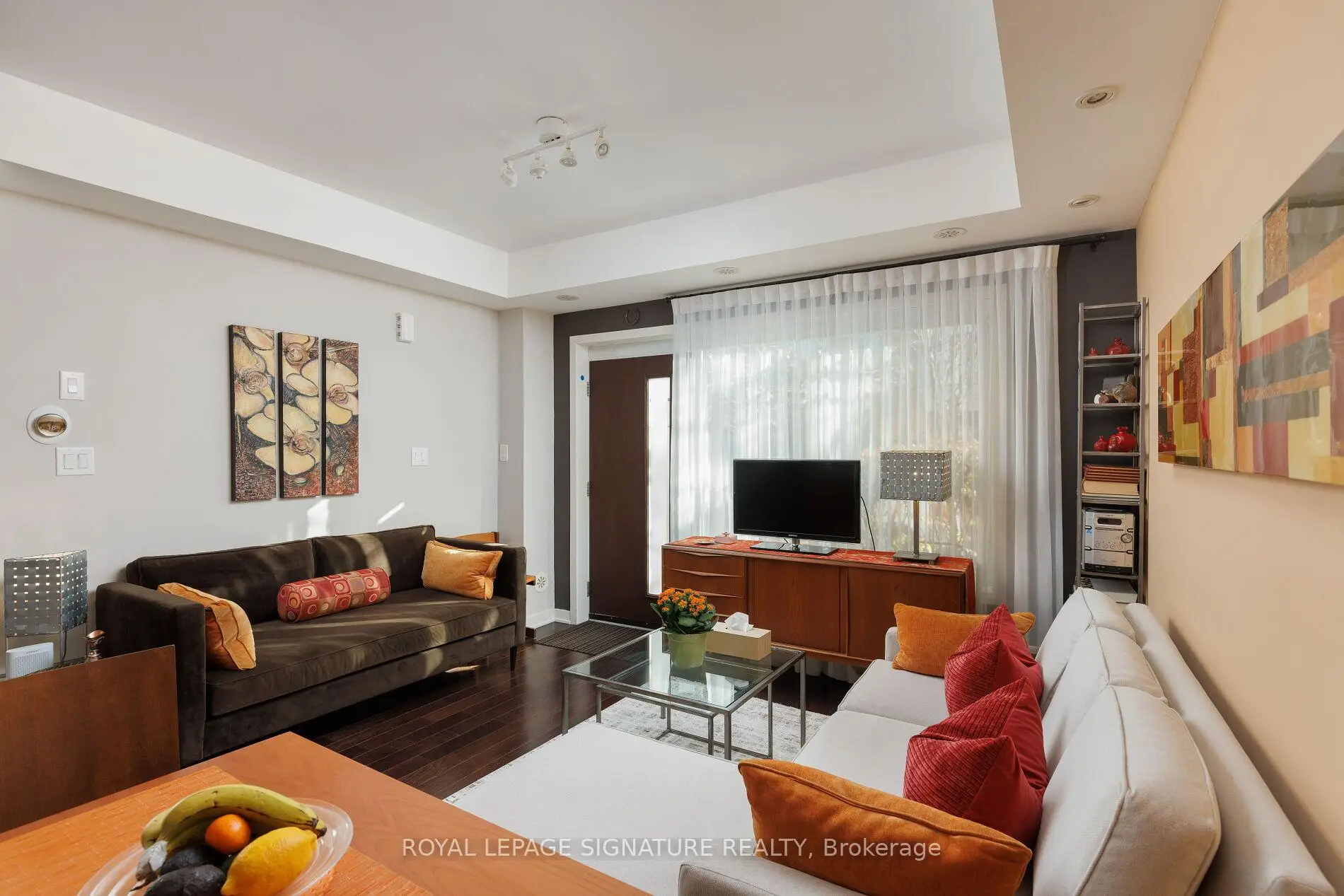 Rarely Offered Modern And Spacious 1-Bedroom TownHome On Cole Street Featuring Two South-Facing Terraces (BBQs Allowed). Enjoy An Open-Concept Layout With Hardwood Floors Throughout And Tasteful, Quality Finishes. The Unit Is Freshly Painted And Features A Renovated Bathroom With Floor-to-Ceiling Designer Ceramic Tiled Shower. The Master Suite Includes A Large Walk-In Closet And A Walkout To The 2nd Terrace. Plenty Of Storage Is Available Inside And Outside (two lockers). This Is The Perfect Alternative To A High-Rise Condo. The Location Offers Unmatched Convenience With Freshco, Tim Hortons, TTC And Much More Just Steps Away. You Are Down The Street From The Aquatic Centre, The New Arts and Cultural Centre, And A 6-Acre Park And Community Centre With A Gym And Indoor Track. Includes An Oversized Built-In Garage With Direct Entry To The Unit. Benefit From Low Maintenance Fees, A 100 Bike Score, 99 Walk Score, and 94 Transit Score. Fantastic Central Location Close To Everything - Just Move In And Enjoy! All Appointments Mon-Sun From 11am-6pm Daily.