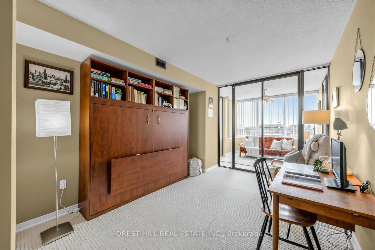 Discover an exceptional lifestyle at the Zenith Skymark, Suite 1408. This sought-after community is designed for comfort, convenience, and elegance offering everything you could wish for. Ideally located close to shopping, transit, highways, and schools, the building features an impressive array of amenities, including indoor and outdoor pools, a fitness centre, BBQ area, party room, meeting room, library, ping pong, billiards, and tennis courts. This spacious 1,325 sq.ft. 2+1 bedroom, 2 bath suite showcases a thoughtfully updated kitchen with a convenient walk-in pantry and ensuite laundry. The spacious living and dining room with hardwood flooring is perfect for entertaining family and friends, while a large in-suite storage room adds everyday practicality. The generous primary bedroom features two mirrored double closets and a 5 piece ensuite with double sinks. The second bedroom includes a versatile Murphy bed, easily doubling as a guest suite or home office. Enjoy bright, east facing city views from the sun-filled solarium-perfect as a relaxing retreat or workspace. All inclusive maintenance fees cover cable and high speed internet for added value. Parking Spot is Tandem 2 Car.