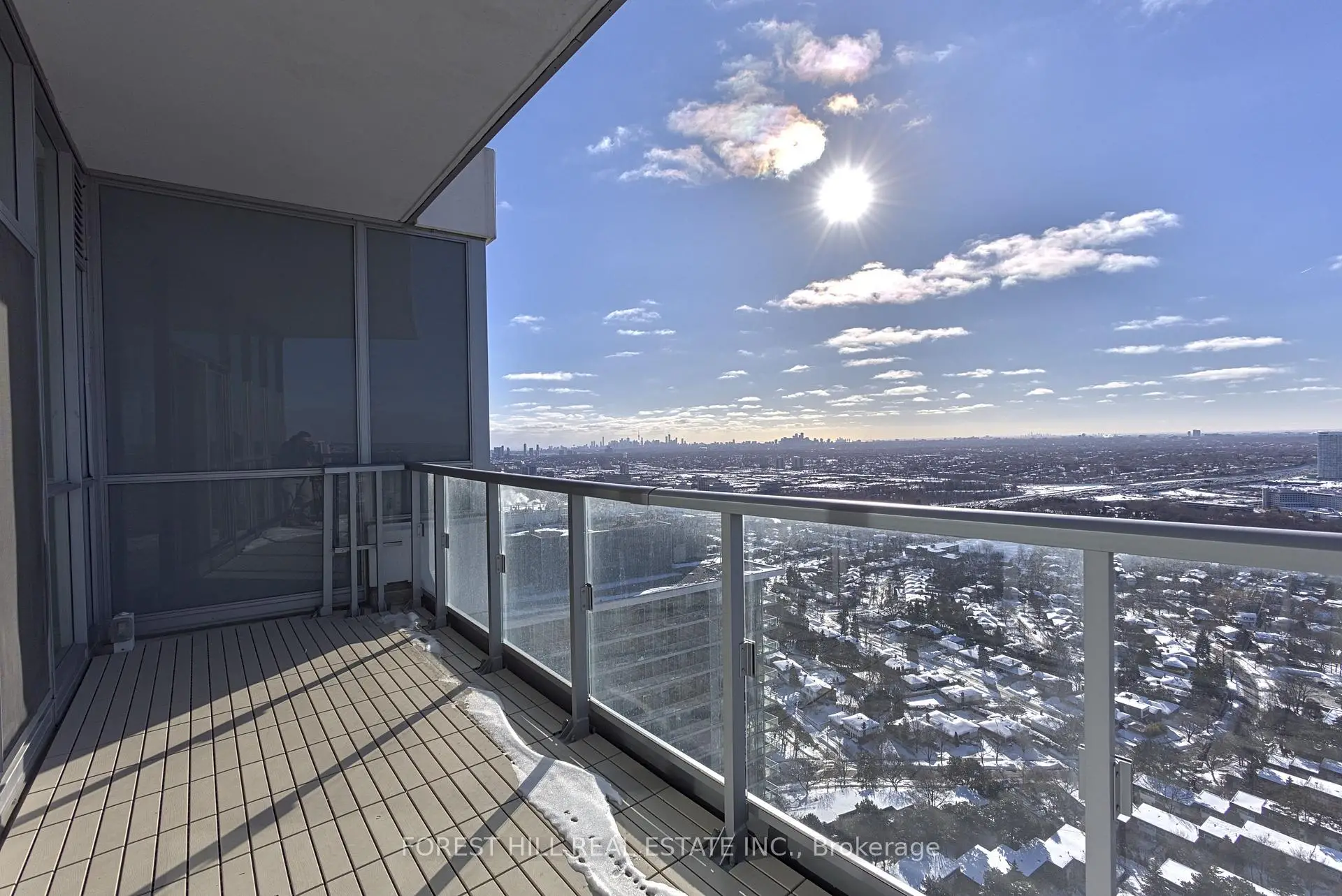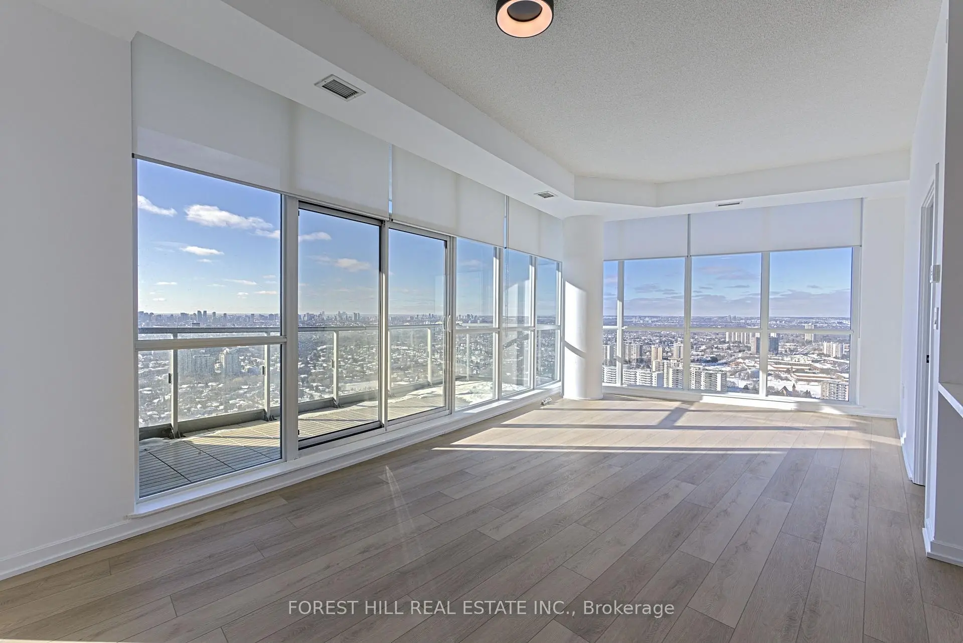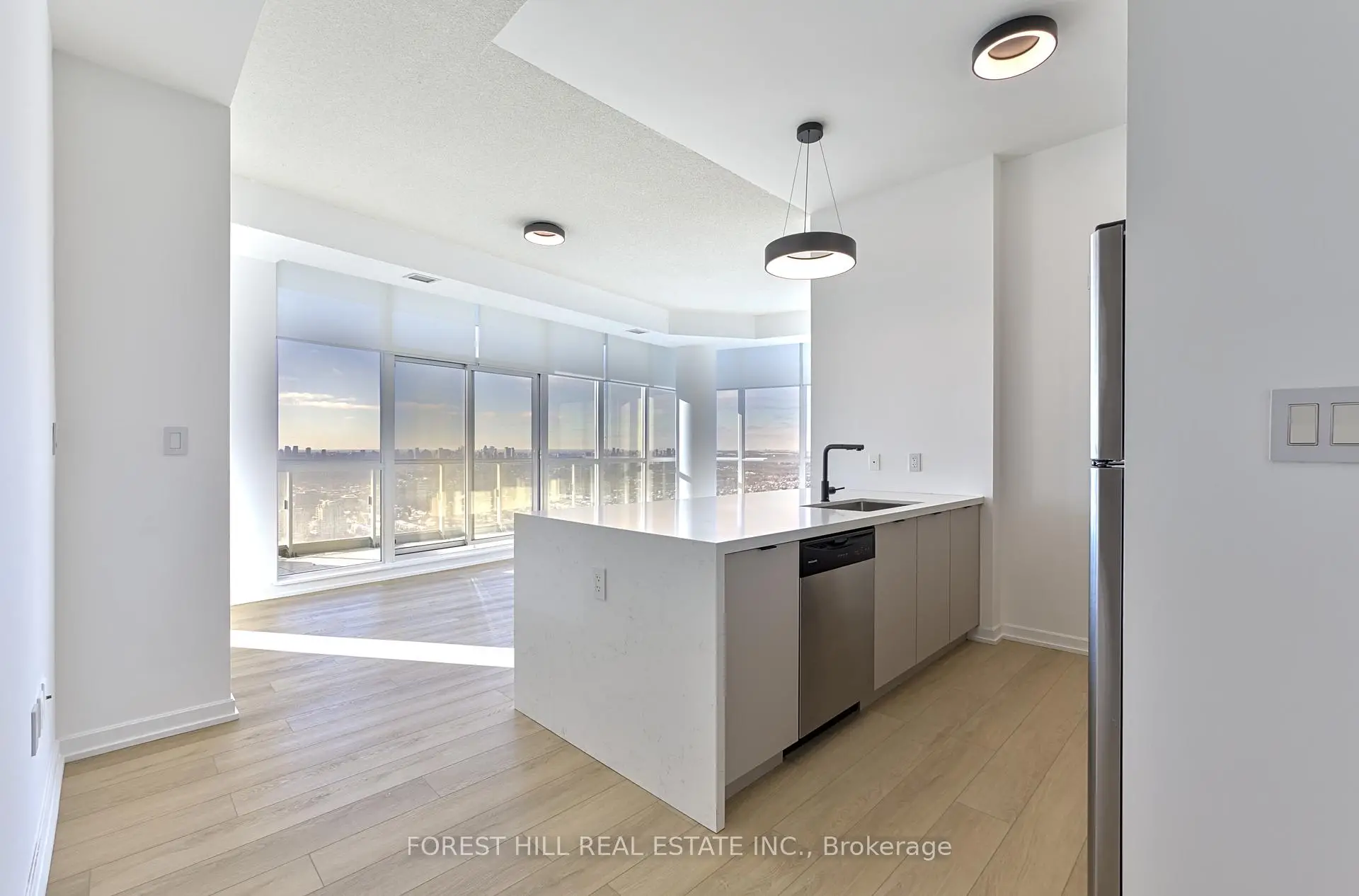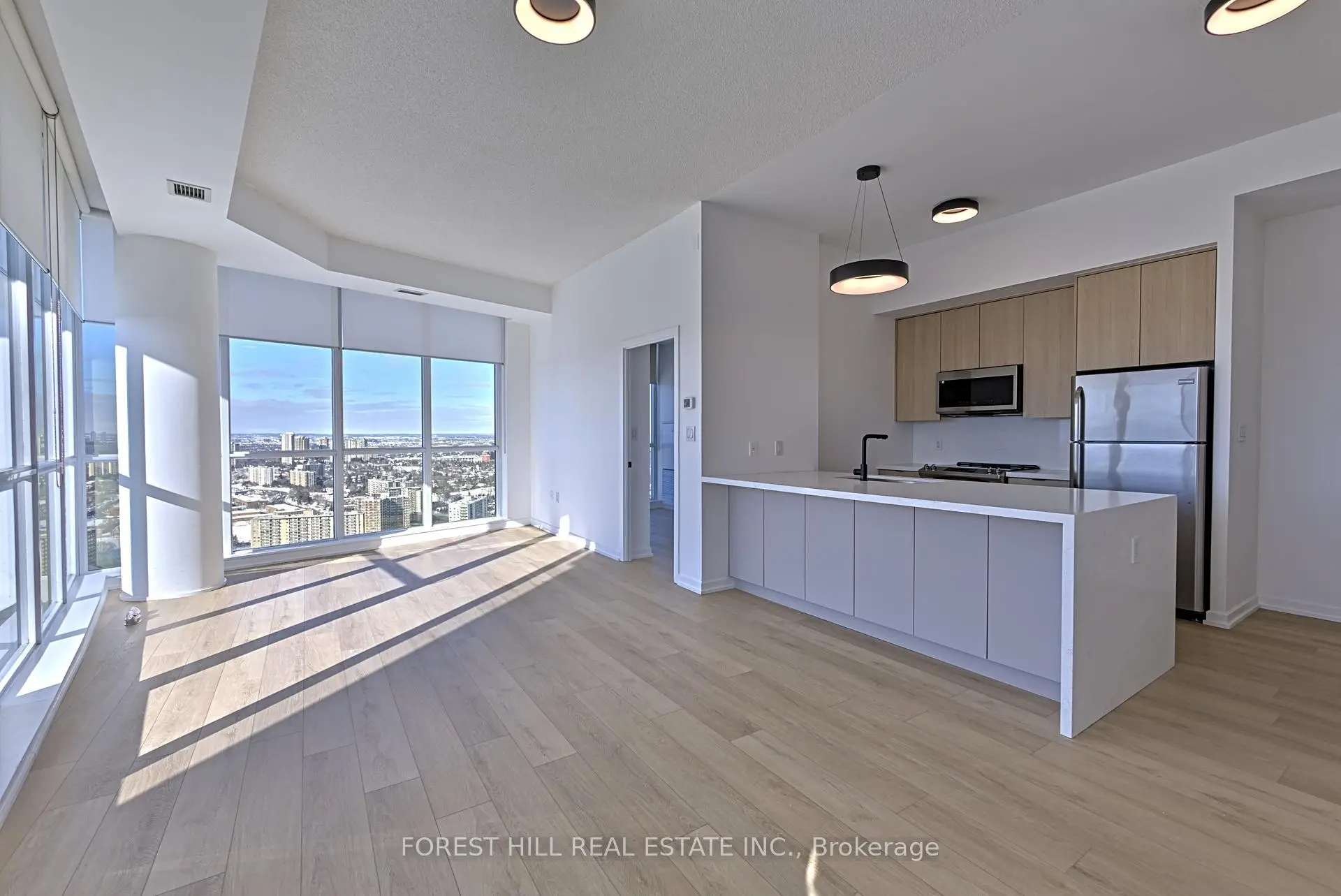 Rare, newly renovated northwest corner suite showcasing sweeping views of the CN Tower, downtown core, Yonge & Sheppard, etc. This bright, open-concept condo combines modern design with everyday comfort, featuring new flooring throughout, coordinated matte black hardware, custom light-filtering blinds and 10ft ceilings. The beautifully renovated kitchen boasts stainless steel appliances, electric cooktop, oven, refrigerator, microwave, and dishwasher. A striking quartz waterfall island with breakfast bar seating and generous under-island storage anchors the main living area. Both bathrooms are finished with sleek glass-enclosed showers and coordinated contemporary fixtures for a polished, cohesive look. New Vanities. Floor has been upgraded with premium waterproof Vinyl Planks. $50k In upgrades to the unit with one of the best views in the building. Residents enjoy first-class building amenities including 24-hour concierge and security, a fully equipped gym, stylish party room, and inviting indoor swimming pool. Perfectly located directly above Don Mills Station, you are mere steps to CF Fairview Mall with quick, convenient access to Highway 401.