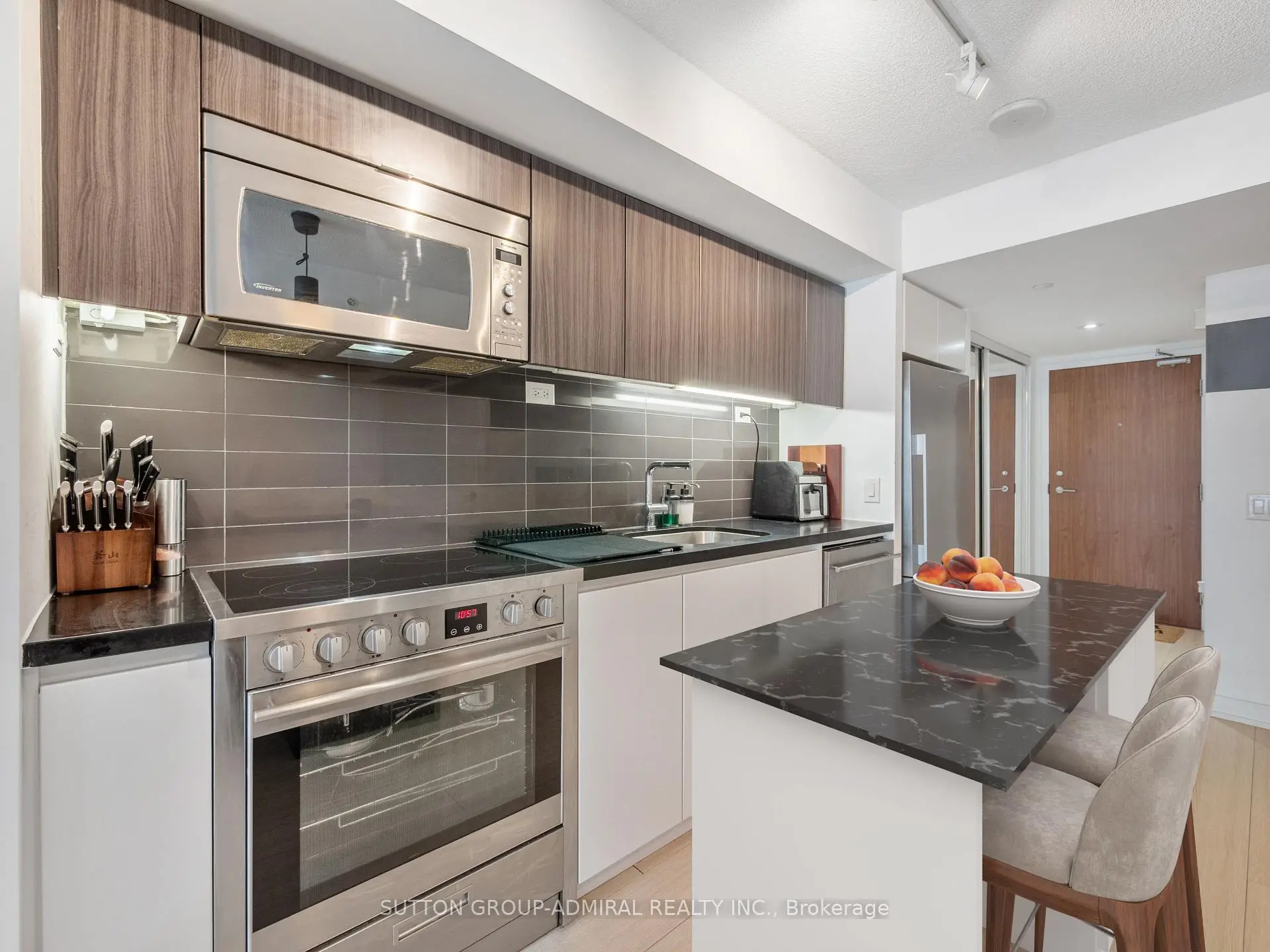 Welcome to this stylish 1-bedroom, 1-bathroom open-concept condo located in the highly sought-after Queens Wharf waterfront community, where downtown energy meets lakeside living. Perfectly positioned to offer seamless access to both the Toronto waterfront and the downtown core, this residence is ideal for professionals, urban explorers, and anyone seeking a vibrant yet relaxed lifestyle. This unit is bright with a modern layout, open concept living and dining space designed for comfort and functionality. The kitchen is highlighted with top-of-the-line European appliances and large windows that fill the suite with natural light, also a space to have a desk and work from home. Step outside and immerse yourself in one of Toronto's most dynamic waterfront neighbourhoods. Enjoy direct access to scenic walking and biking trails, Coronation Park, and the shores of Lake Ontario. Just minutes away are Exhibition Place, Ontario Place, and the iconic downtown skyline. Nearby, the beautifully restored historic lighthouse stands as a charming reminder of Toronto's maritime heritage, adding character and distinction to the area. With TTC streetcar service at your doorstep and quick connections to major routes, commuting and exploring the city is both easy and convenient. Residents enjoy access to an exceptional collection of resort-inspired amenities, including a fully equipped fitness centre, indoor basketball court, sauna, pet wash station, private theatre, and multiple social lounges. As part of the exclusive Prisma Club, you'll also enjoy a three-level amenity centre featuring a stunning indoor pool, outdoor hot tub, party rooms, film screening rooms, and elegant gathering spaces designed for both relaxation and entertaining.