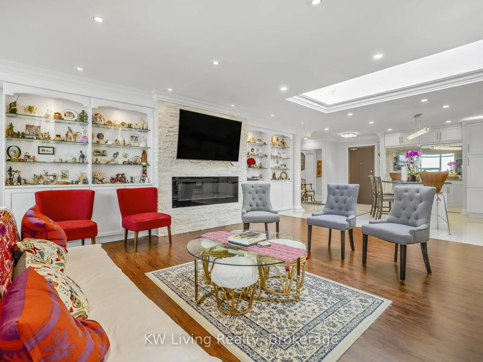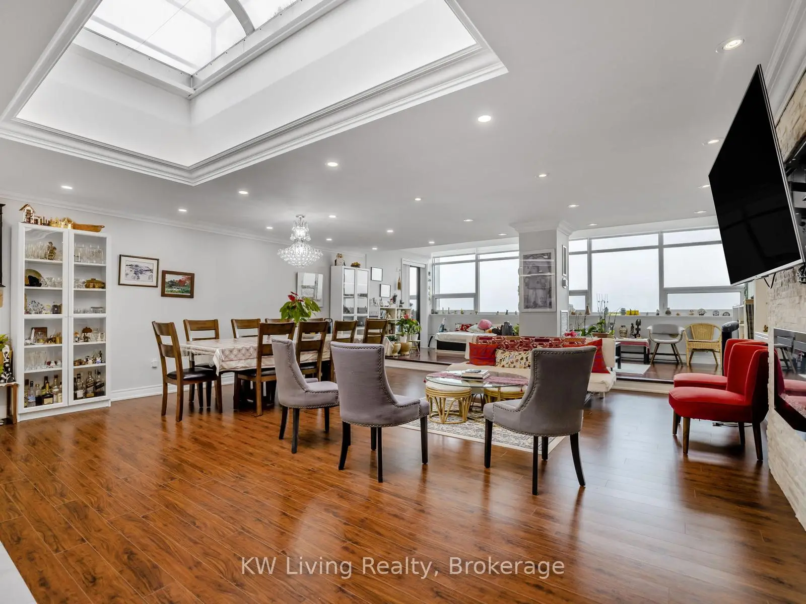 Welcome to Tridel's Prestigious Skymark 1, a highly sought-after condominium community offering resort-style living and an unbeatable location! This bright and immaculate southwest corner suite features a spacious 2-bedroom + large den/family room layout that can easily convert into a 3rd bedroom. Enjoy hardwood and laminate flooring throughout, a custom kitchen with quartz countertops, pot lights and centre island, a sun-filled large solarium, and a walk-out to a large open balcony with unobstructed panoramic city views. The primary bedroom includes a walk-in closet and updated ensuite with a new shower, while windows were replaced in 2022 for comfort and efficiency. This unit includes two prime parking spots side by side Tandem Parking (4) & all utilities plus cable TV are included. Skymark 1 is renowned for its five-star amenities-indoor/outdoor pools, tennis and squash courts, virtual golf, basketball court, gym, sauna, games and media rooms, Bicycle Rack and 24-hour gatehouse security. The building is assessment-free and senior-friendly, with ongoing upgrades to the lobby and corridors. Perfectly located steps to TTC, Shopping, Dining, Seneca College, Seneca Hill P.S., top-rated schools and just minutes to Highways 401, 404 and Fairview Mall. Experience luxury, space, and convenience all in one-welcome home to Skymark 1.