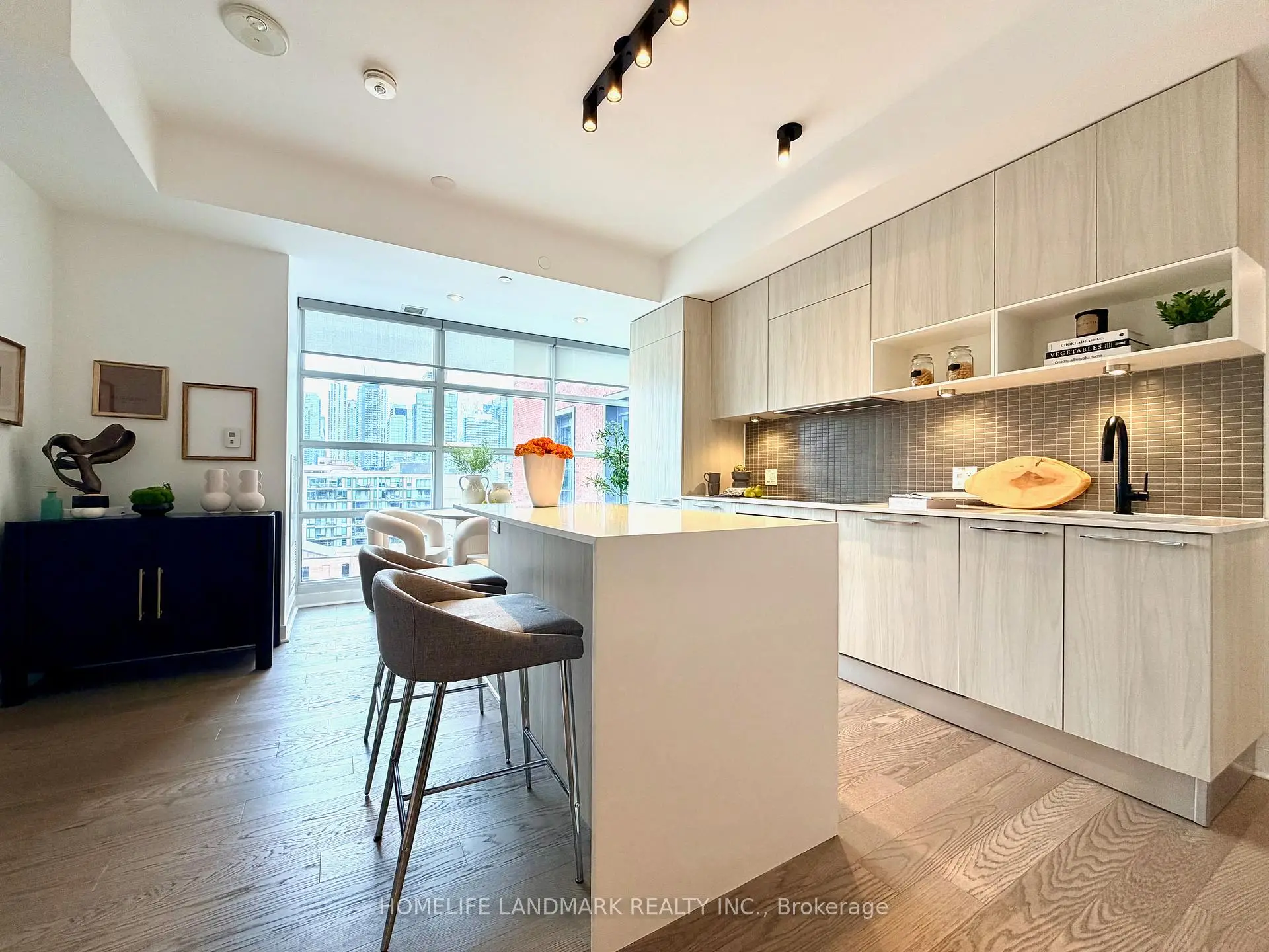 KINGLY --- Boutique Living in the heart of King West! Rare opportunity to own in one of the King West's most sought-after Prestigious Boutique Residences by Allied Properties REIT. Featuring Signature Red Brick façade and iconic New York SoHo-inspired loft windows, this exclusive 132-unit building blends character with modern design. Stunning Unobstructed CN Tower and downtown skyline views! This beautifully upgraded modern neutral palleted unit has smart split 2 Bed / 2 Bath , offers a highly functional open-concept layout with premium finishes throughout. Acoustically engineered demising walls ensure exceptional privacy and quiet living. Bright and spacious dining area features floor-to-ceiling, wall-to-wall windows, creating a bright and airy space ideal for both everyday living and entertaining. Contemporary kitchen equipped with full-size appliances, thoughtfully designed for both style and function. Upgrades include: Kitchen island with deep pull-out drawers ; Pot lights in dining area, entry, and living room ; Neutral modern window shades throughout; Bathtub glass panel with stain-resistant treatment. Enjoy premium amenities including 24-hour concierge, very well-equipped Fitness Centre, and a quiet, well managed community-oriented building with predominantly young professional residents. Unbeatable Location Surrounded by Toronto's Top Dining, Cafes, Lounges, Bars and Vibrant nightlife. Steps to St. Andrew's Playground/ lease free Dog Park; Waterworks Food Hall (dog friendly) and The Well. Minutes to Loblaws, Home Sense, Dollar stores, Farm Boy, Queen West shopping, parks, and the waterfront. A True Walker's Paradise -- Leave the car behind and enjoy the very Best of King West Living.
