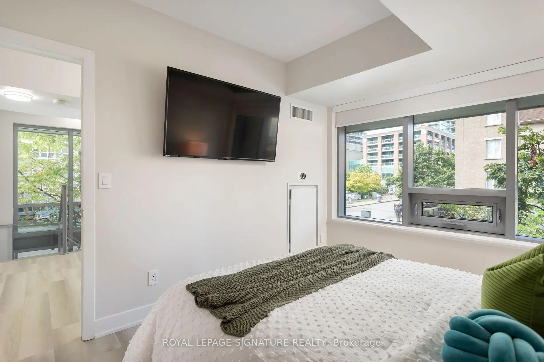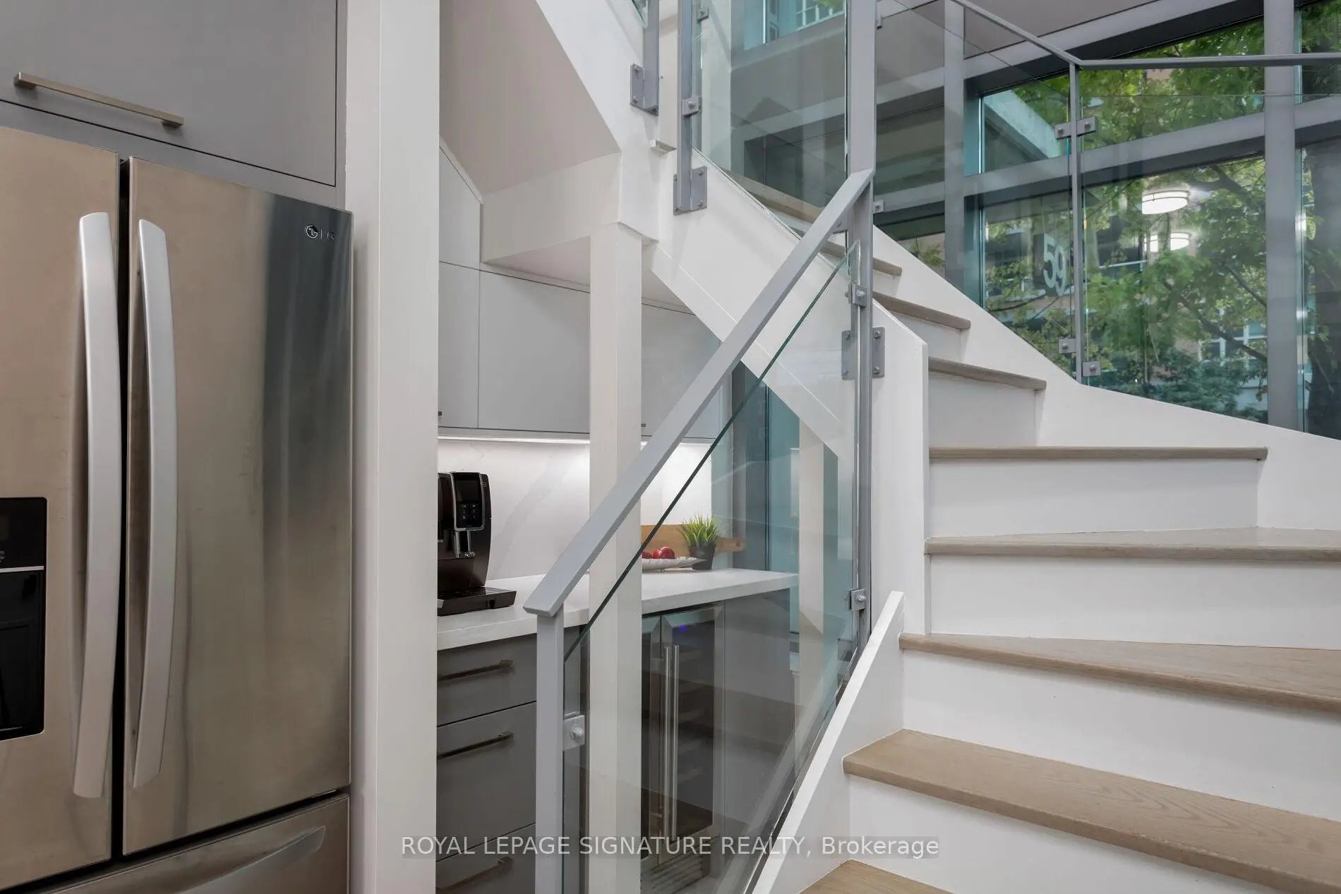 Step into this 870 sq ft luxury and extensively upgraded 1-bedroom + den, 2 bathroom condo townhouse, designed for those who appreciate modern elegance. The professional 2023 renovation showcases hardwood stairs with sleek glass rails, soaring 18-foot ceilings with two storeys of windows, and smooth ceilings throughout. The kitchen features quartz countertops, a double butterfly sink, all new appliances, a wine fridge, a soft-closing mechanism for cabinets, and a counter stovetop, perfect for the discerning chef. Enjoy spacious living with 7-inch wide vinyl flooring, while the large living room window leads to the front patio for outdoor relaxation. The custom-built walk-in closet in the bedroom is complemented by mechanical blackout blinds, and the ensuite includes a glass walk-in shower. Smart home features like two Nest thermostats, brand-new full-sized laundry appliances, and two EV charging stations make this home as functional as it is beautiful.