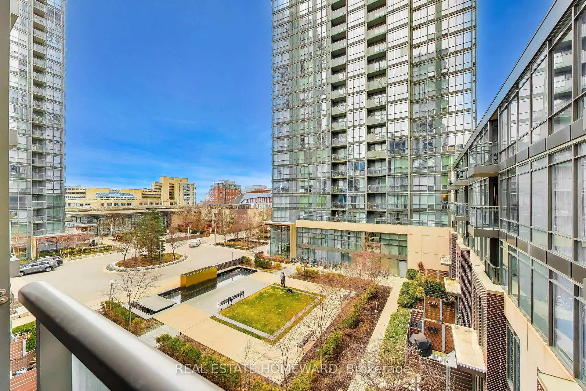 Welcome to an exceptional opportunity in the heart of CityPlace-where comfort, style, and convenience come together seamlessly.This 1-bedroom + spacious den suite offers an impressive layout that maximizes every square foot. The versatile den is large enough to function as a home office or nursery, perfect for modern urban living. The condo boasts custom closets throughout, offering ample storage space within the unit. The updated kitchen is a true highlight, featuring a generous island ideal for entertaining or casual dining, complemented by sleek quartz countertops and a stunning marble backsplash. Whether you're cooking or hosting, this space delivers both function and flair. Enjoy your mornings and relaxing evenings overlooking a peaceful, landscaped garden courtyard-a rare retreat from the city's energy, yet just steps from it all. Located in a quiet boutique-style building, residents benefit from a more intimate living experience while still enjoying access to world-class amenities including a pool, hot tub, party room, guests suites, gyms and more! Additional conveniences include a large private locker located on the same floor as the unit making additional storage easy and accessible. Step outside and find yourself moments from Toronto's most iconic destinations, including the waterfront, vibrant King West, CN Tower, Roger's Centre, top dining, entertainment, and family-friendly amenities. With excellent nearby facilities for kids and green spaces at your doorstep, this home offers something for every lifestyle. A perfect blend of tranquility and urban convenience-this is downtown living at its finest!