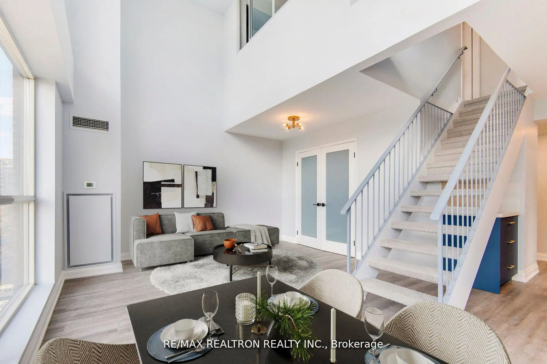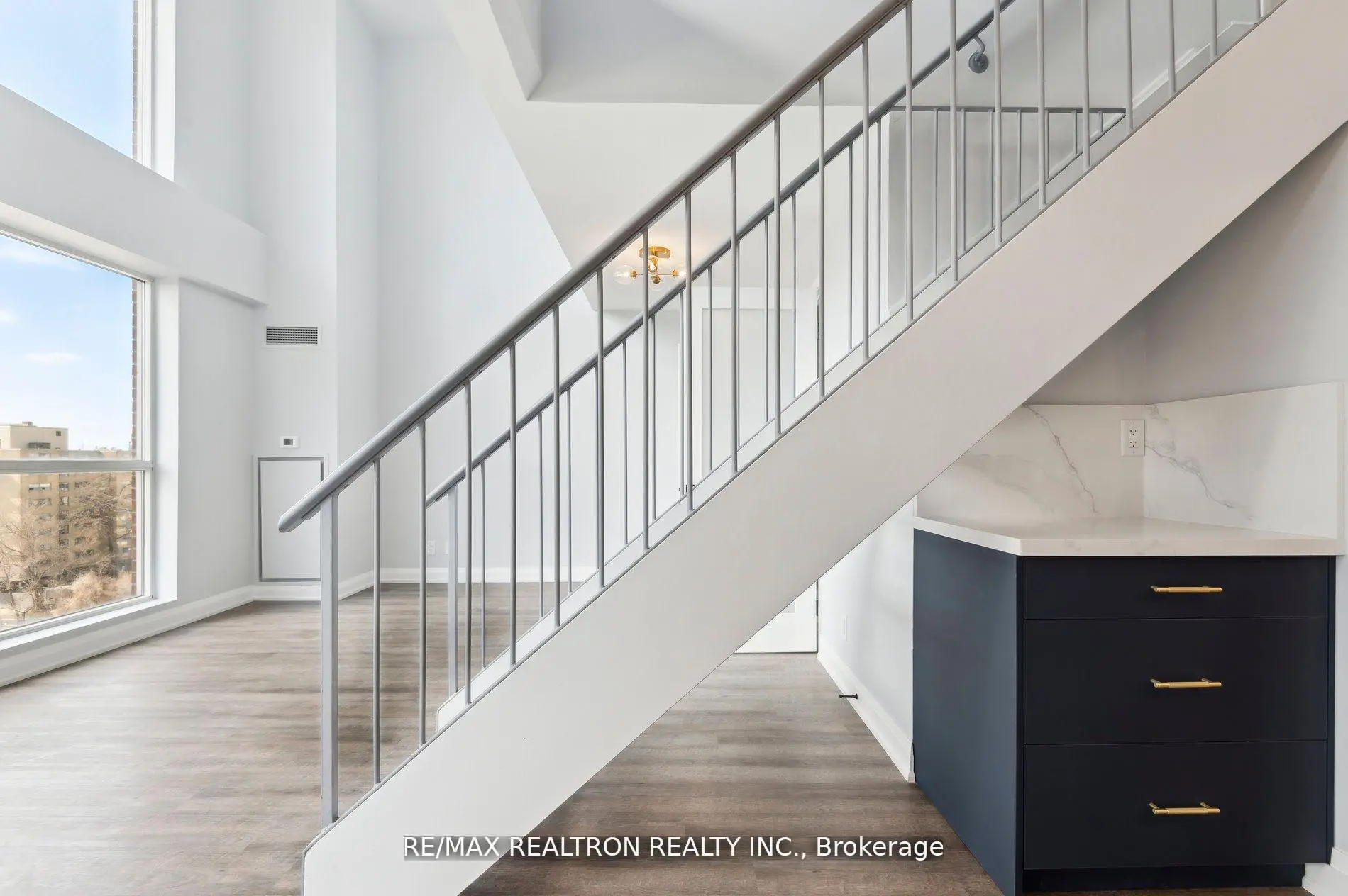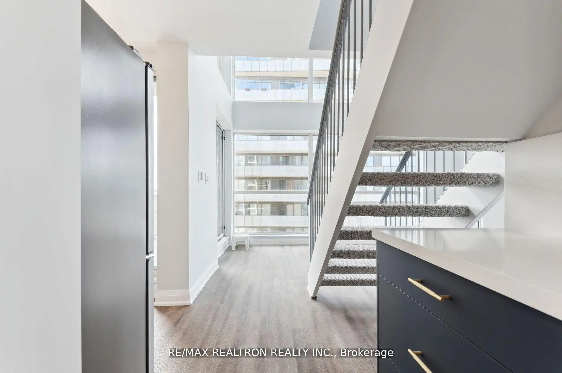 Welcome to a show stopping, fully reimagined 2-bedroom+den, 3-bathroom loft that delivers style, scale, & sophistication at every turn. Spanning over 1,400 square feet, this rare offering has been redesigned from top to bottom with impeccable attention to detail and includes underground parking & a storage locker for ultimate convenience. From the moment you step inside, you're greeted by sleek luxury waterproof vinyl plankflooring, striking custom built-ins, & a chic carpeted stair runner that adds both warmth & drama. The open-concept main level is an entertainer's dream, highlighted by a chef-worthy kitchen complete with full-sized stainless steel appliances (backed by an extended 5-year warranty), quartz countertops & backsplash, & statement LED lighting & designer sconces that set the mood. Indulge in not one, but 3 spa-inspired bathrooms, each finished with premium Italian porcelain tile, floating vanities, & elevated fixtures that feel straight out of a boutique hotel. The expansive primary retreat features a walk-in closet, a stunning en-suite, & a private balcony-your personal escape for morning coffee or evening unwinding. A second balcony off the kitchen & dining area is perfect for alfresco dining, hosting friends, or rolling out your yoga mat under the sky. The versatile main-floor den easily transforms into a third bedroom, stylish home office, or guest suite. Floor-to-ceiling, south-facing windows bathe the home in natural light all day long, enhancing the airy, loft-style vibe. Located in a dynamic, highly walkable community with an exceptional Walk Score of 97, everything you need is right outside your door-TTC, grocery, cafes, acclaimed restaurants, parks, schools, daycare, pharmacies, medical clinics, & more! Turnkey, trend-forward, & truly unforgettable, this loft offers the perfect fusion of luxury living & urban energy. Some photos have been virtually staged. Maintenance fees include all utilities except hydro.