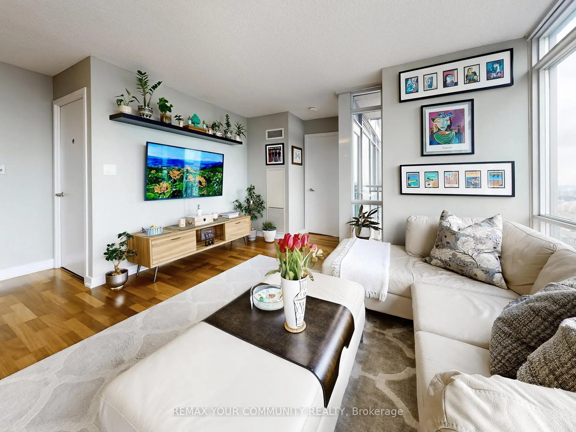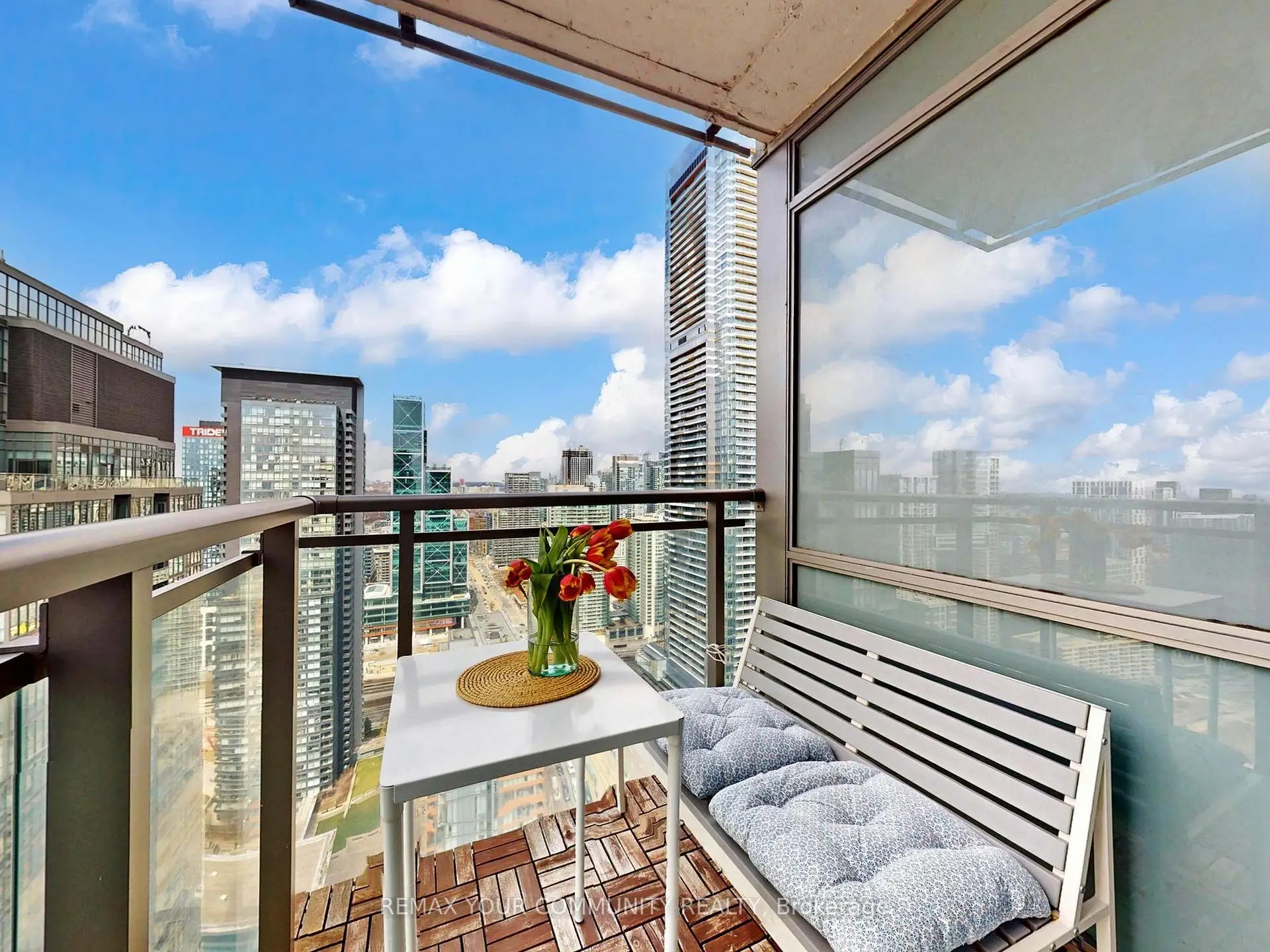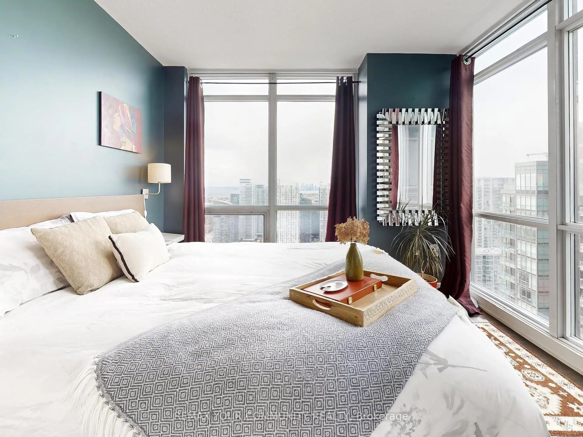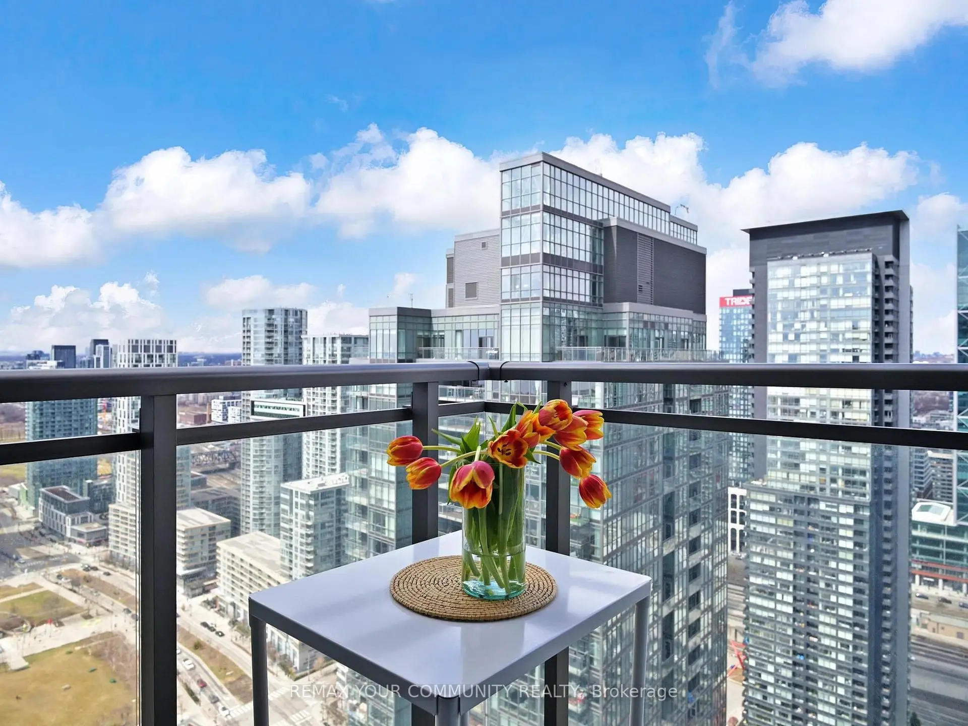 High-Floor Corner Suite at West One, CityPlace. Wake up to stunning lake views from the bedroom and take in the CN Tower and northwest city skyline through floor-to-ceiling windows in the living area. This bright and airy 690 sq ft layout features a functional floor plan with an updated bathroom, LG appliances, and a Kraus touchless kitchen faucet. The den includes a custom mirrored closet for added storage and can easily be removed. Includes a large locker and conveniently located parking. Residents enjoy exclusive access to the 27th-floor Sky Lounge with panoramic city views, plus world-class amenities, including indoor pools, hot tubs, sauna, spa, fitness centre, basketball court, movie theatre, dog run, and 24-hour concierge service. Steps to the waterfront, Rogers Centre, Financial District, King West dining, public transit, school, Canoe Landing Recreation Centre and park, and the best of downtown living.