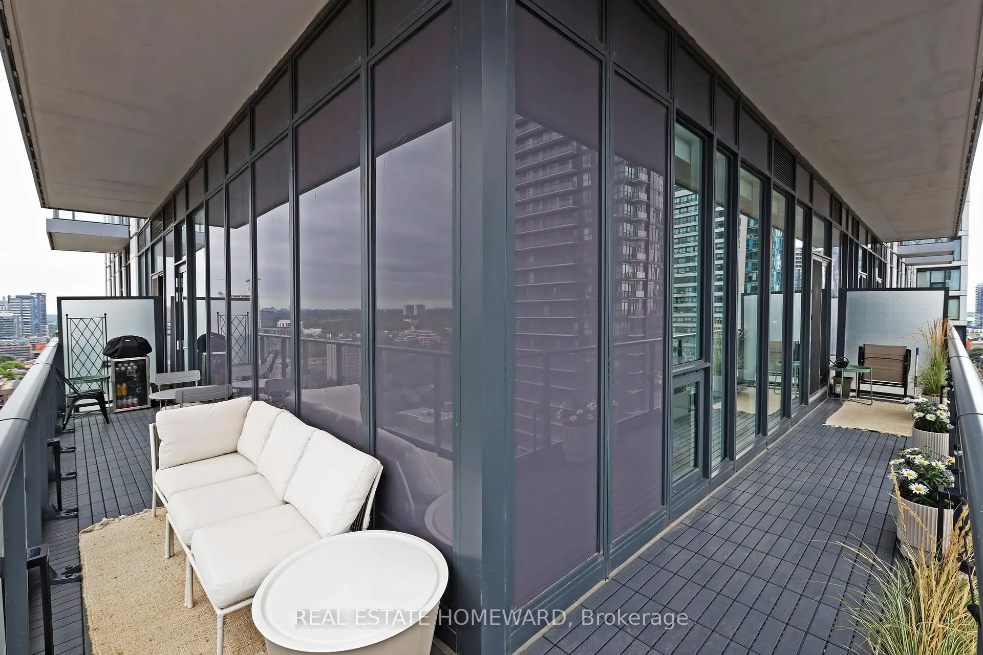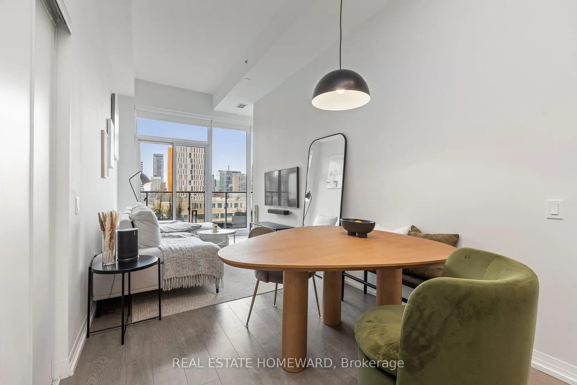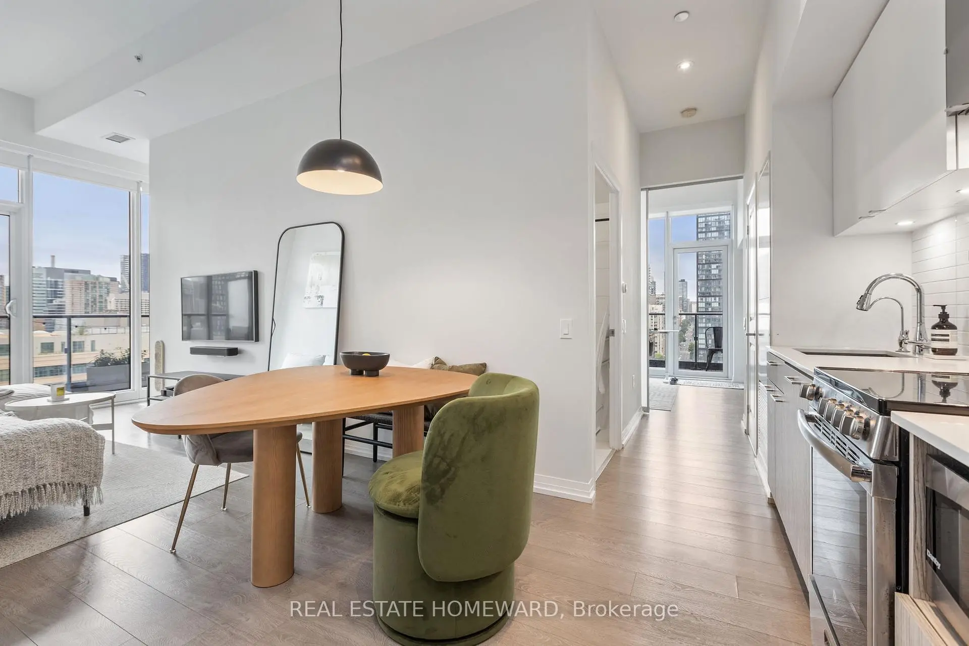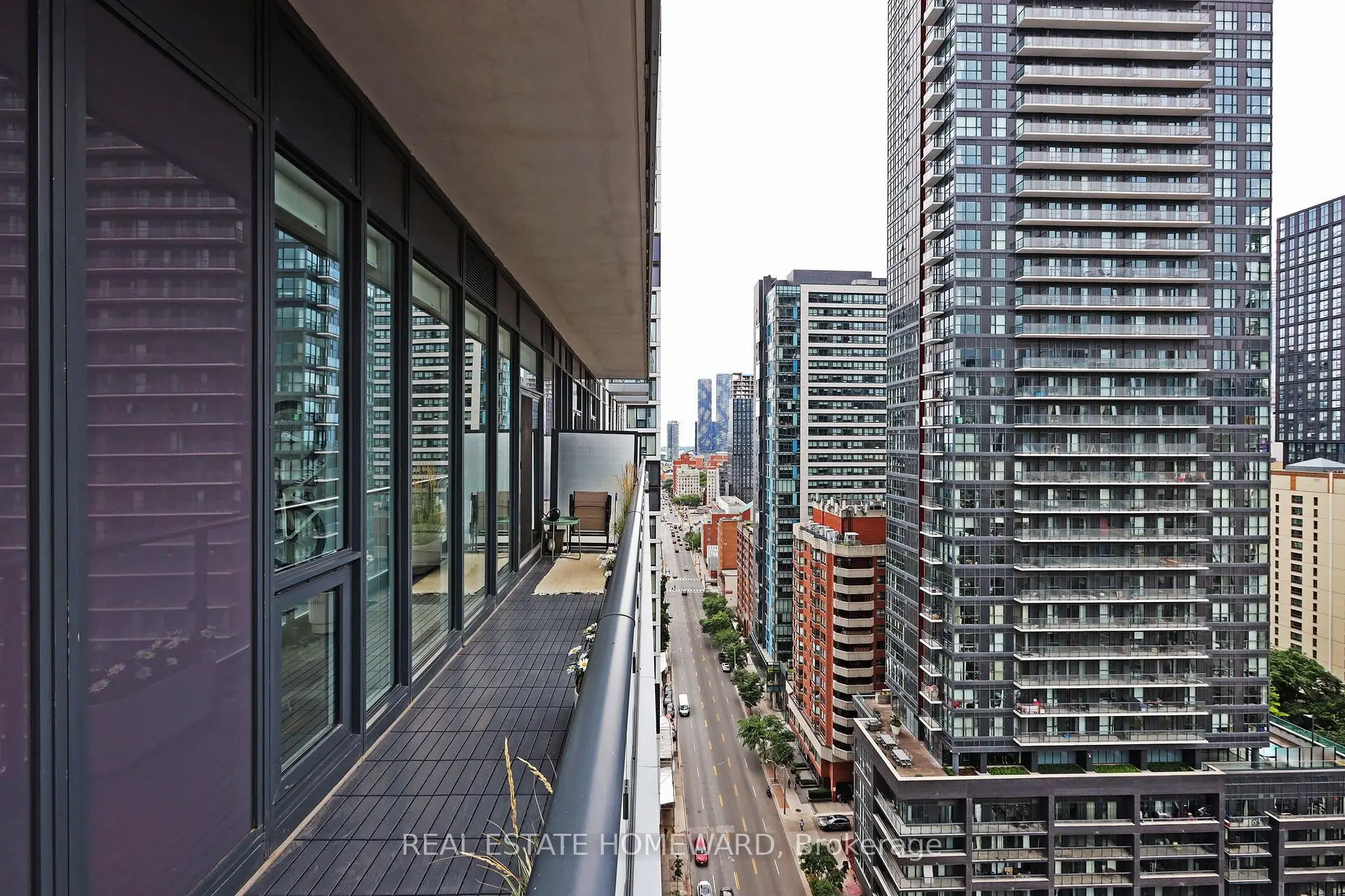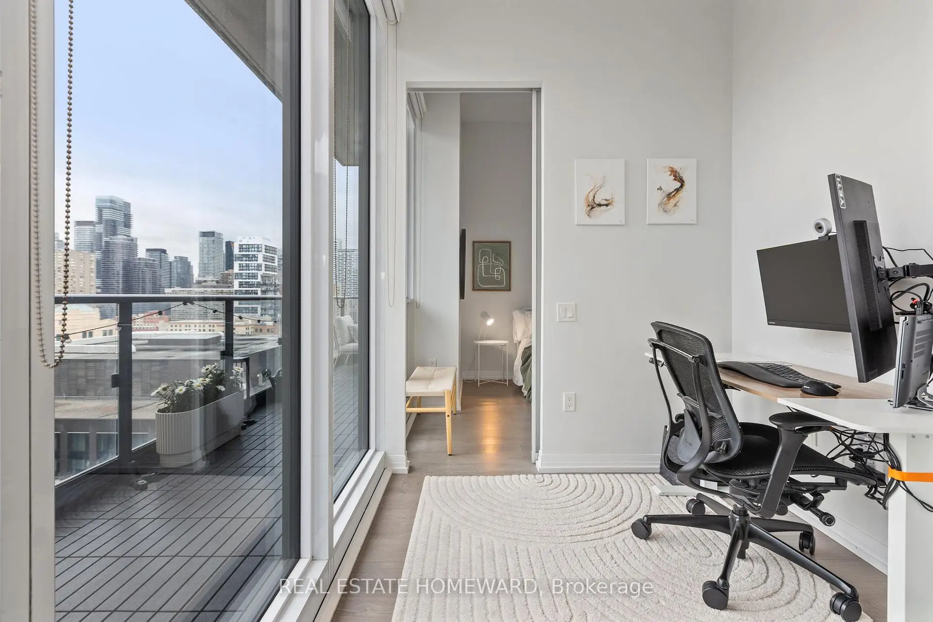 Welcome to urban living at its best! This spacious and modern 2+1 bedroom, 2-bathroom corner unit condo offers a smart, functional layout in one of downtown Toronto's most vibrant locations. Featuring soaring 12-foot ceilings, upgraded light fixtures, and custom closets, this suite combines style with thoughtful design. The open-concept living and dining area is filled with natural light thanks to floor-to-ceiling windows and the added benefit of multiple exposures. A wrap-around, tiled balcony, accessible from both the living area and second bedroom, provides seamless indoor-outdoor living and sweeping city views, creating an airy extension of the main living area that's perfect for relaxing or entertaining. The contemporary kitchen is equipped with stainless steel appliances, quartz countertops, and sleek cabinetry. Both bathrooms are full-sized, including a convenient ensuite in the primary bedroom. Vinyl strip flooring runs throughout, and there's in-suite laundry for added ease. Ideally situated just steps from Toronto Metropolitan University (TMU), the Eaton Centre, Dundas Square, the TTC subway and streetcar, and countless dining and shopping options, this location is unmatched for accessibility and convenience. The building offers top-tier amenities including a 24/7 concierge, fitness centre, rooftop terrace, co-working lounge, party room, guest suites, and even an outdoor dog-walking area. Perfect for professionals, students, or investors, this turnkey suite delivers style, space, and comfort in the heart of the city. Room measurements are approximate.