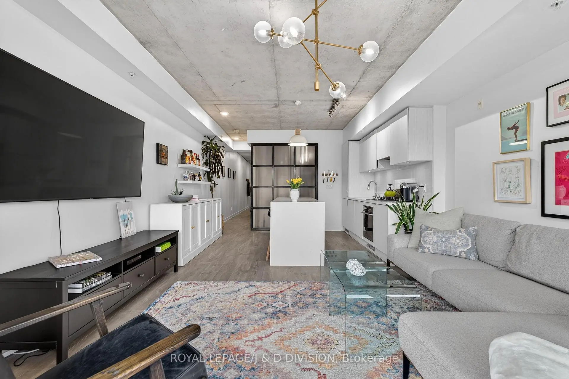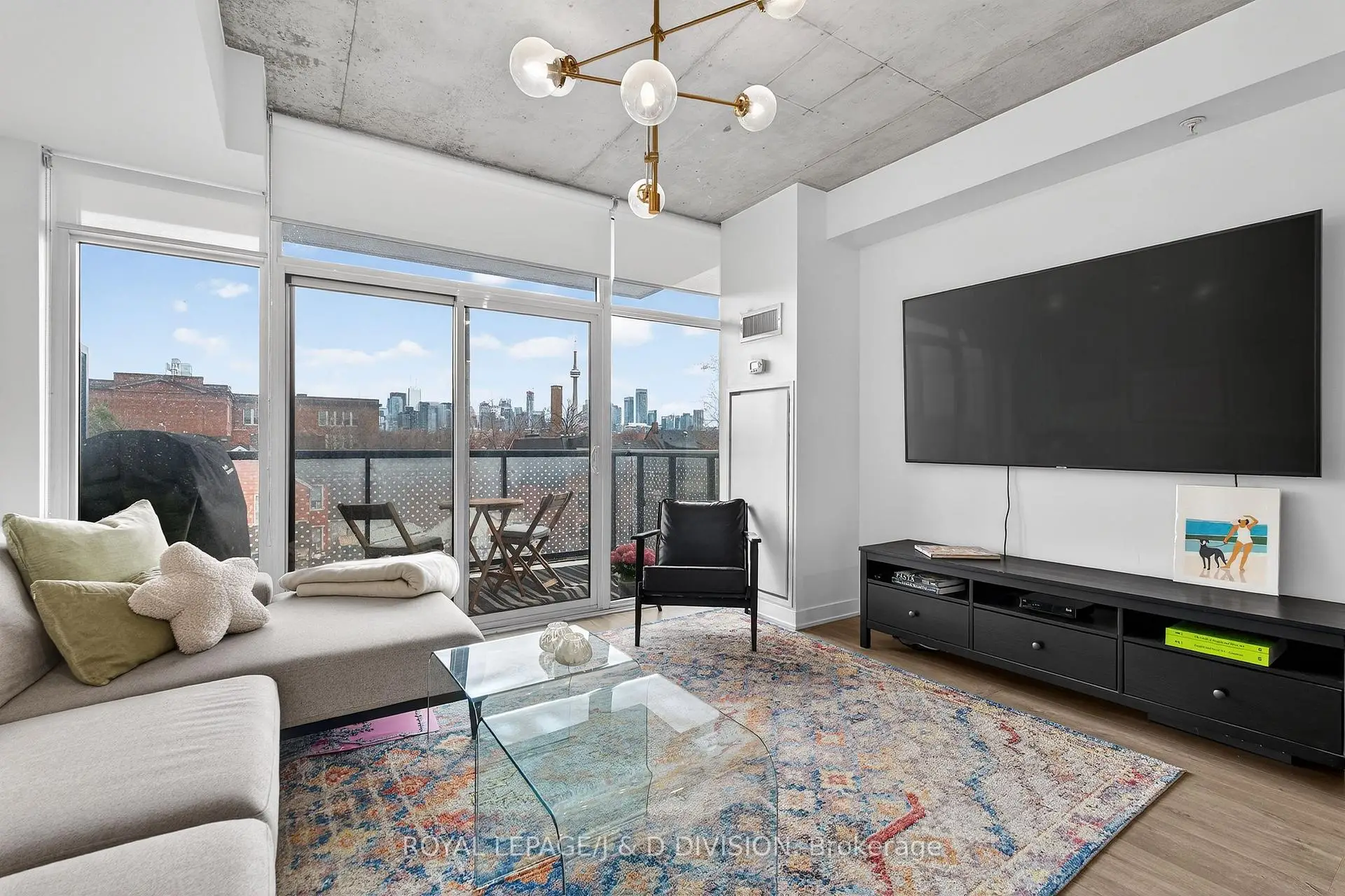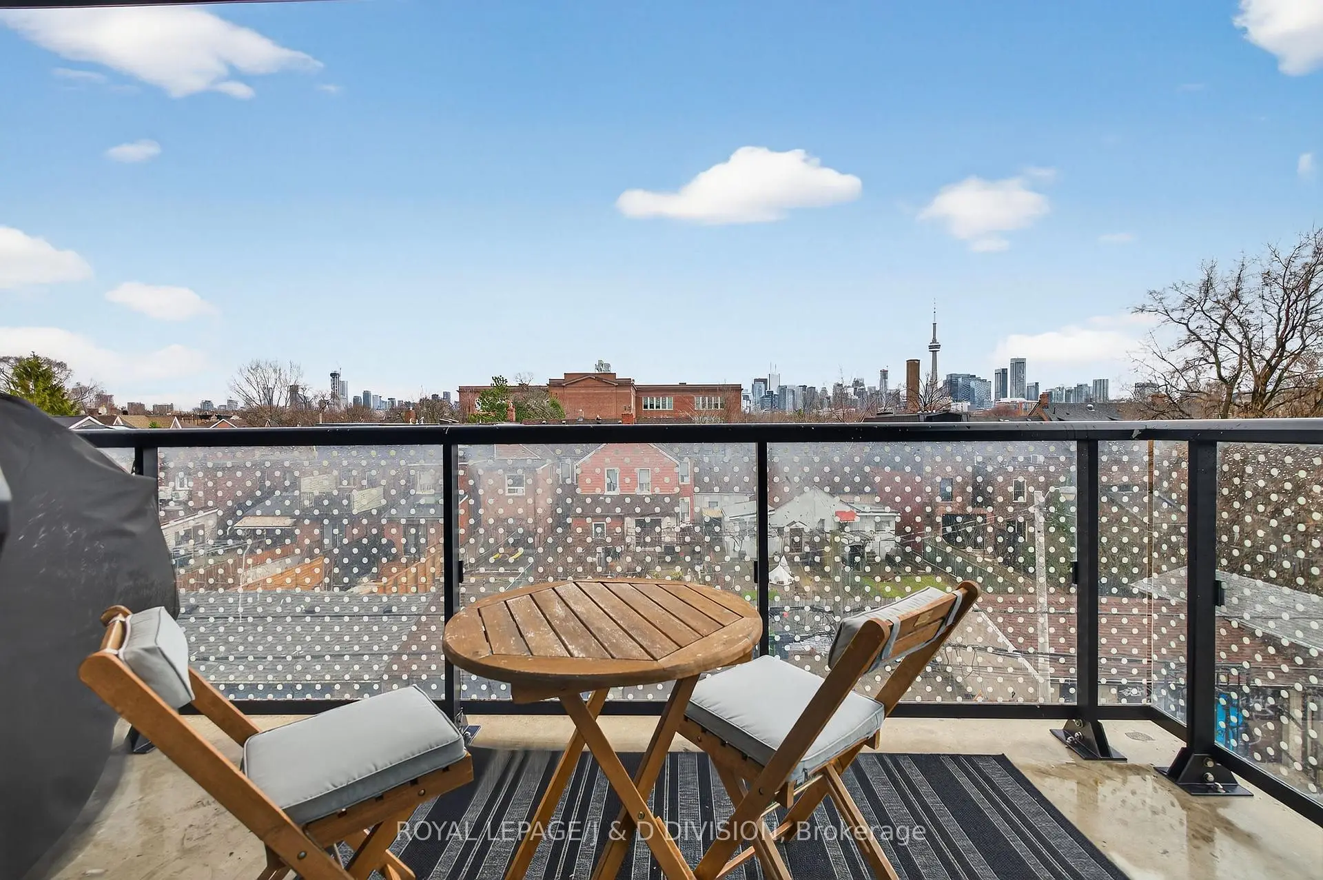 Fabulous corner unit in sought-after boutique loft-like building. Open 1+1 plan design with generous office/den space and a flow out to private balcony with stunning city views. -approx. 900 SF with balcony- Modern kitchen with stone counters and a centre island for eating/dining. Your private bedroom fills with light behind a custom rod-iron & bevelled glass screen. Enjoy immediate access to the best spots on fashionable Ossington, yet relax away from the commotion on balcony with both gas and water hookups. High ceilings, owned parking and locker.