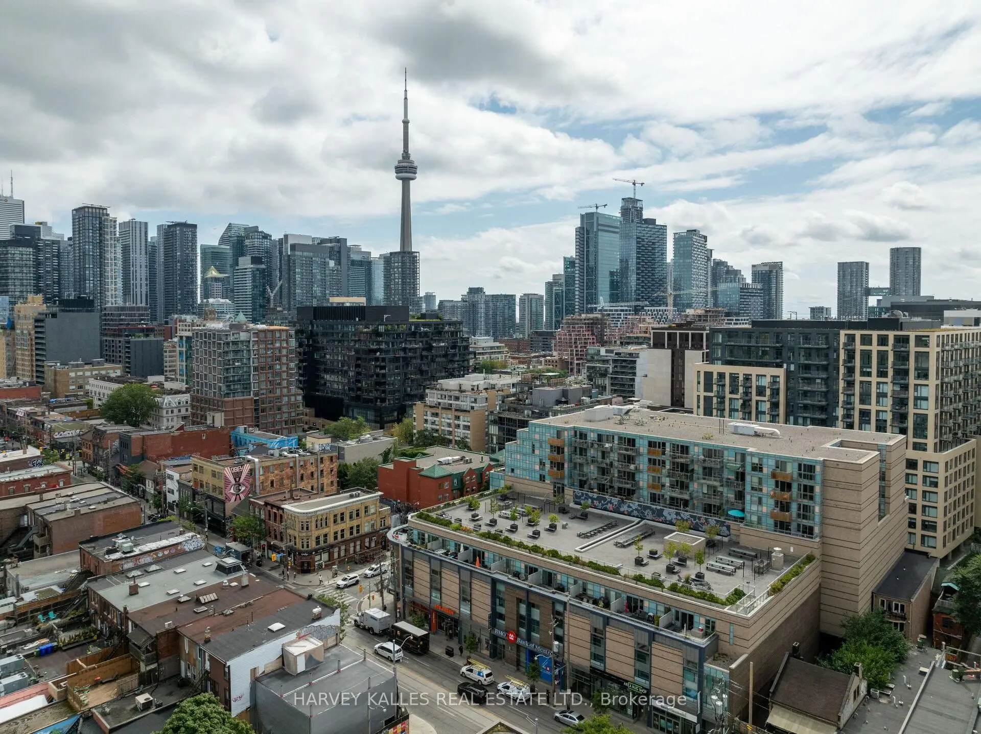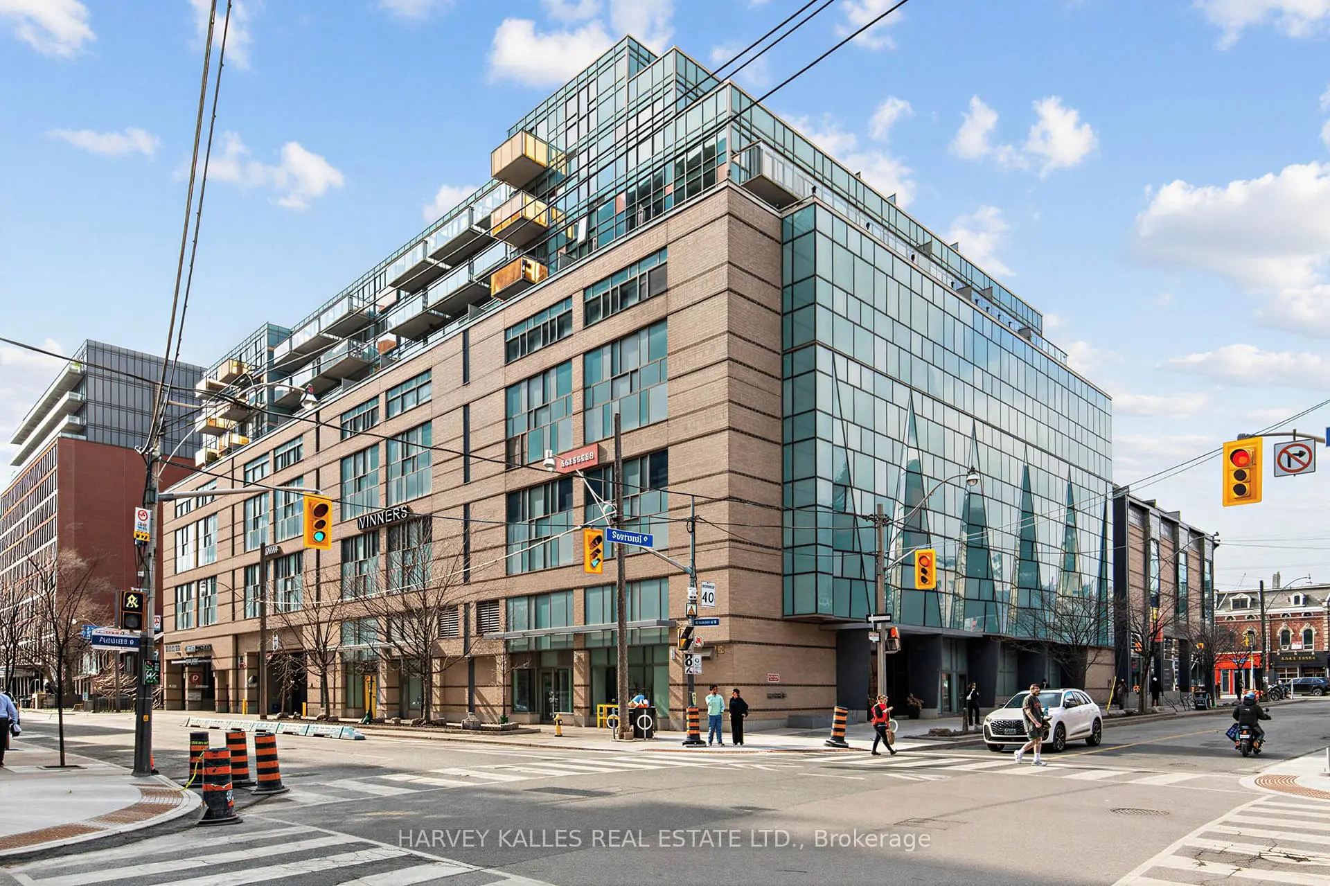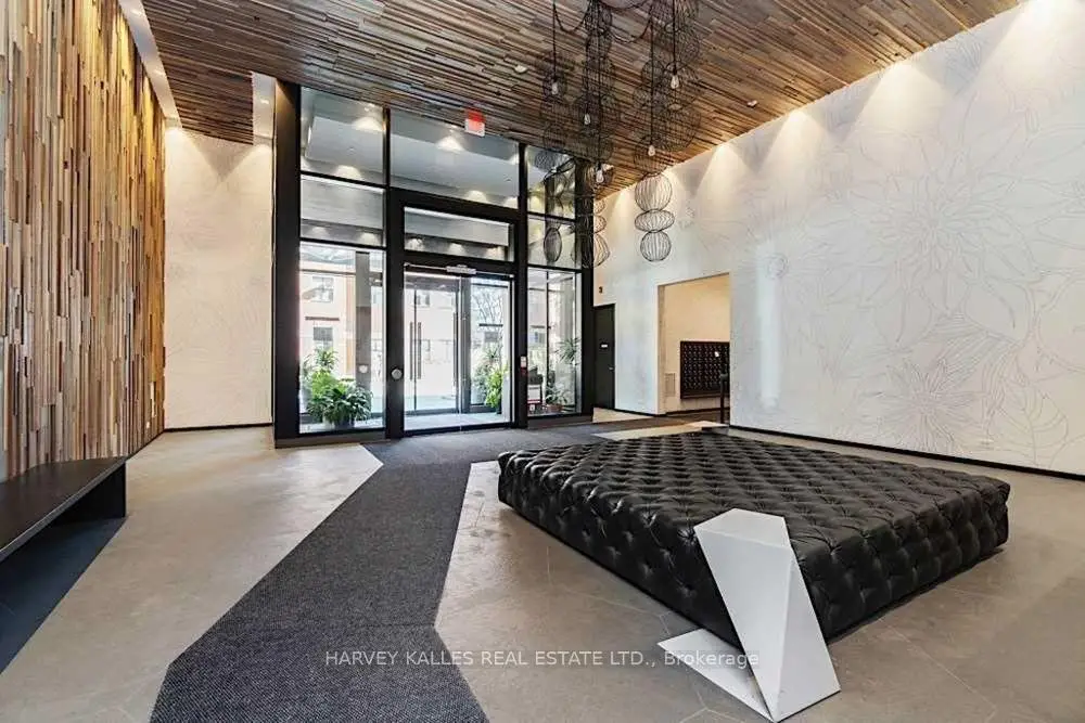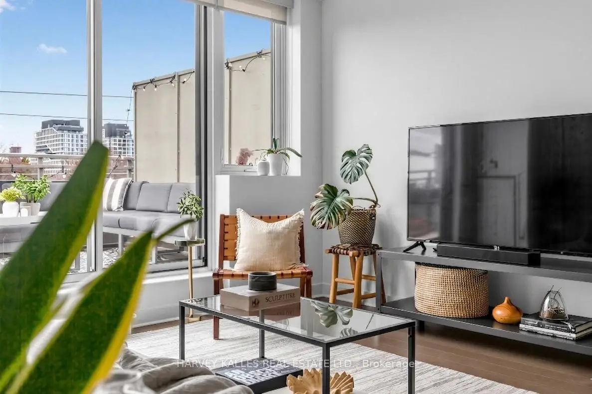 Highly sought-after soft-loft boutique address! This rarely offered end unit presents an elevated take on downtown living. With no neighbour above, enjoy a level of privacy that feels more like a penthouse. Spanning > 1,000 square feet including a standout terrace, paired with 10-foot ceilings, this thoughtfully designed 1 bed + oversized den layout delivers impressive versatility. The den easily functions as a 2nd bedroom, home office, or creative space. The king-sized primary features a walk-in closet and an ensuite, while a separate 2-piece powder room has the potential to be converted into a full 2nd bath. The open-concept living space is stylish and functional, anchored by a sleek modern kitchen with built-in appliances. Step outside to your ultra generous private corner terrace complete with BBQ gas line and water hookup. This outdoor retreat enjoys full sun from morning through evening all summer long, and is an ideal setting for al fresco sunset dining, relaxing, or even gardening, all while taking in the vibrant Queen Street backdrop. With the gym directly across the hall, you are steps from your couch to your workout! Residents enjoy the quiet exclusivity of an intimate building, plus access to a sprawling rooftop deck with sweeping city views. An extra-large parking space and a locker, along with direct underground access to Loblaws, Joe Fresh, and Winners, make daily errands effortless while minimizing winter trips outside. Upcoming lobby and hallway upgrades will further enhance the aesthetic. Perfectly positioned in trendy Queen West, walking distance to everything your heart (and stomach!) could desire. Just moments from King St West, Waterworks Food Hall, The Well, Trinity Bellwoods Park, Kensington Market, and so much more. Convenient TTC transit & the future Ontario Line nearby connect you across the city, and beyond. A rare opportunity to own a standout suite in one of Toronto's most dynamic neighbourhoods. This is urban living at its finest!