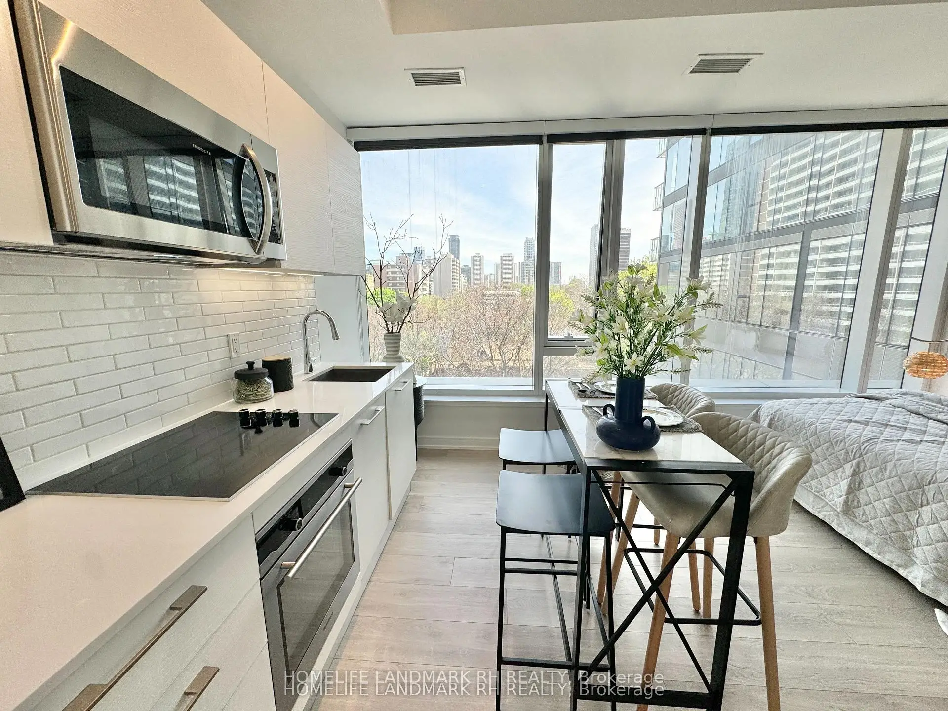 Prime Location in Heart of Downtown! 4 Years New Studio Unit at Prestigious "Gloucester on Yonge". Rare 458 S.F w/ 10' Ceiling! Bright & Spacious Layout. Laminate Flooring Throughout. Unobstructed East Views with Large Windows. Modern Kitchen w/ High End B/I Appliances, Quartz Countertop, Backsplash & Valance lighting. Marble Vanity in Bathroom. 5 Star Amenities: 24 hrs Concierge. Fitness Centre/ Outdoor Swimming Pool/ Yoga, Guest Suites. Theatre/Presentation Room, Meeting Room, Library, Coffee Bar, Lounge/Kitchen, Concord Biospace Systems. Steps to Park, Public Transit & Restaurants, Close to Shopping, Yorkville & Name Brand Boutiques on Bloor...Walking Distance to "U of T" & "TMU"...