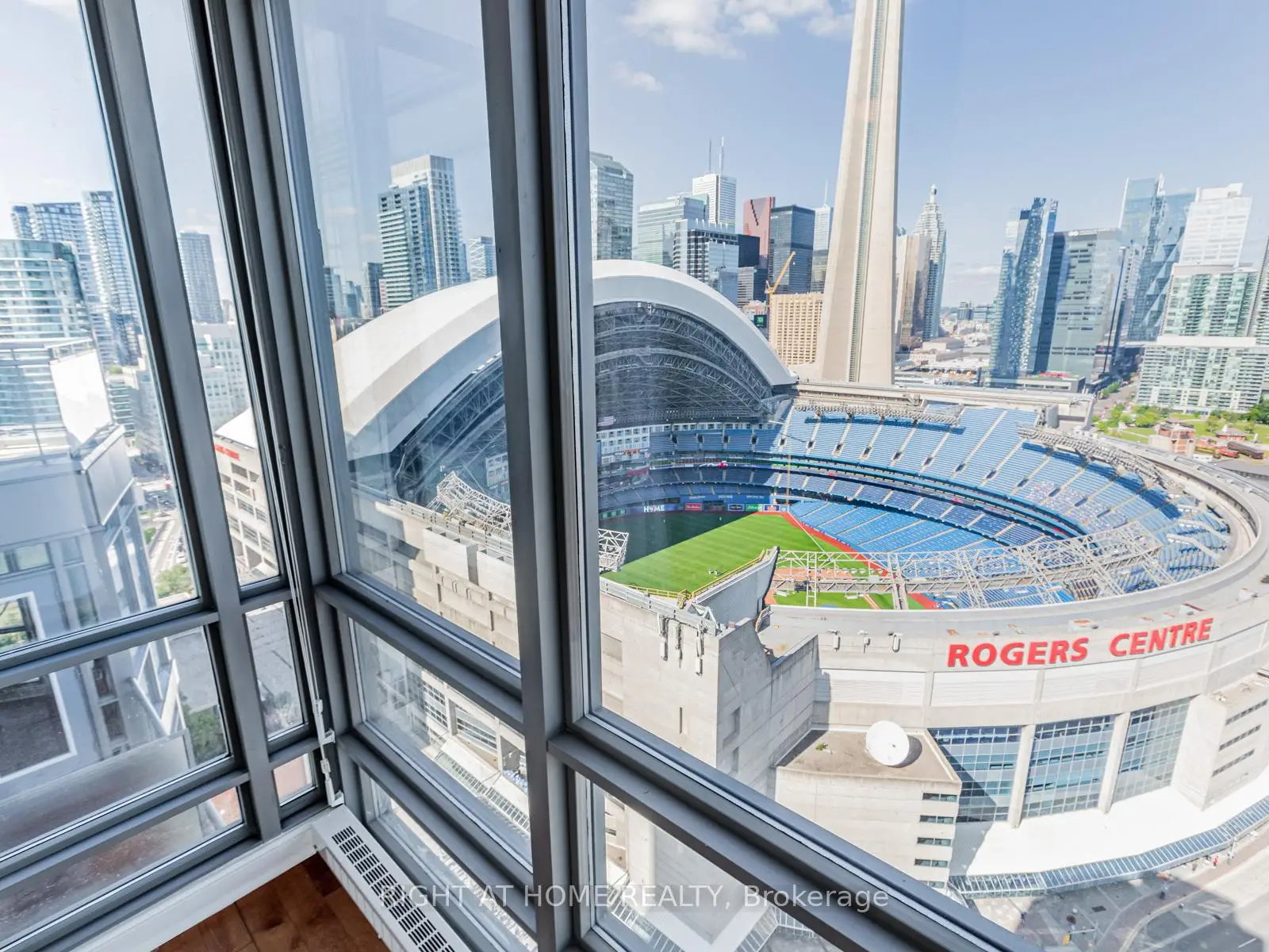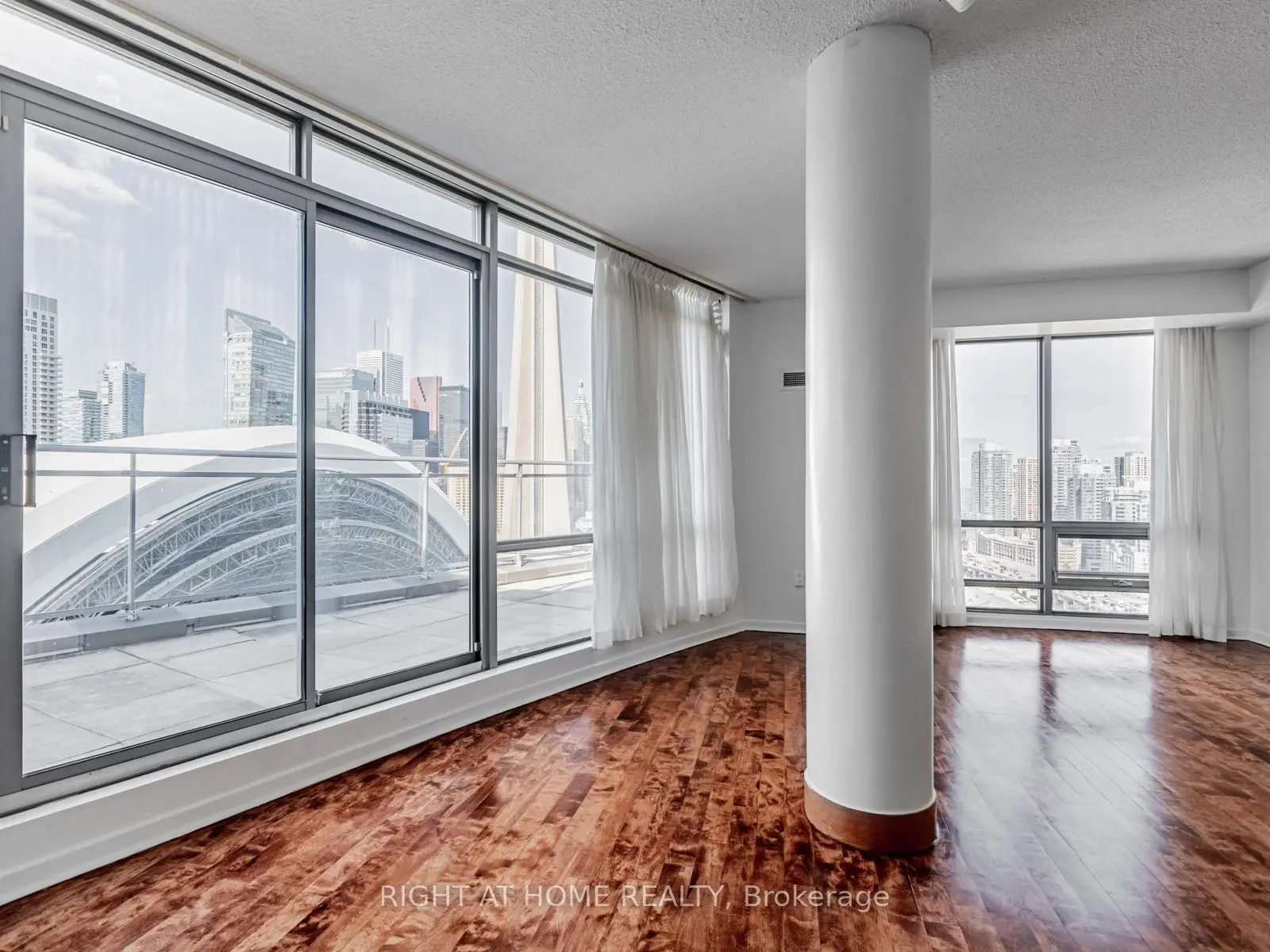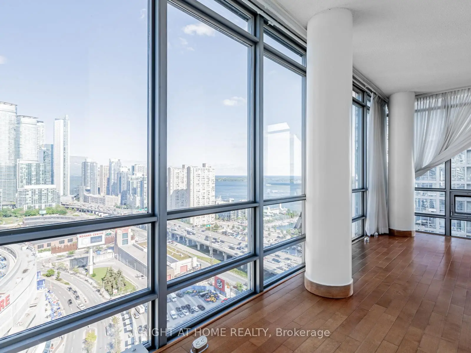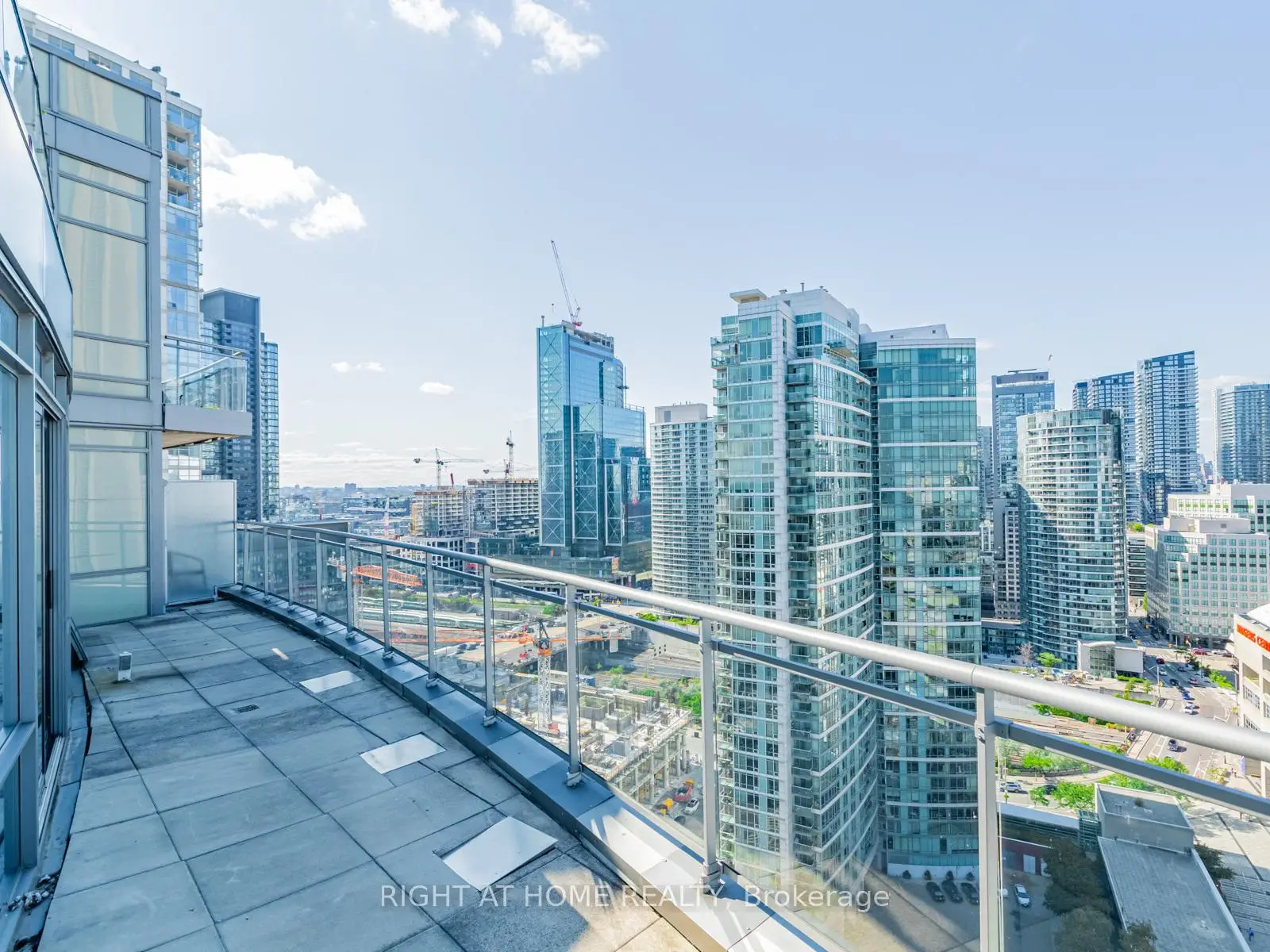 Make this stunning sub-penthouse suite your home! Enviable to a well-placed bachelor, working couple, family or retiree! A 1,263 sq ft corner unit with a 235 sq ft terrace, 10 ft ceilings & wrap around windows for panoramic views of the city, the lake, and CN Tower. Watch baseball games and concerts from your own private terrace when the Rogers Centre dome is opened. Includes parking, locker, and access to the renowned 30,000 sq ft Super Club: the ground floor features a reception/foyer area, meeting room, pool table, lounge-style seating, a bowling alley, a 25-metre indoor pool with a jacuzzi area, and a full-size basket ball court; the second level is the gym complete with cardio machines, weight area, spin studio, and overlooks the pool and basketball court; the third level features a private bookable event space to host parties or meetings; and in the warmer months, the tennis court, dog run area, barbecues, outdoor seating, and tanning deck are opened. Make this condo your home and be steps away from the waterfront, Porter Airport, Rogers Centre, Ripley's Aquarium, CN tower, Scotiabank Arena, The Well, Union Station/UP Express, downtown's best dining, transit, and entertainment.