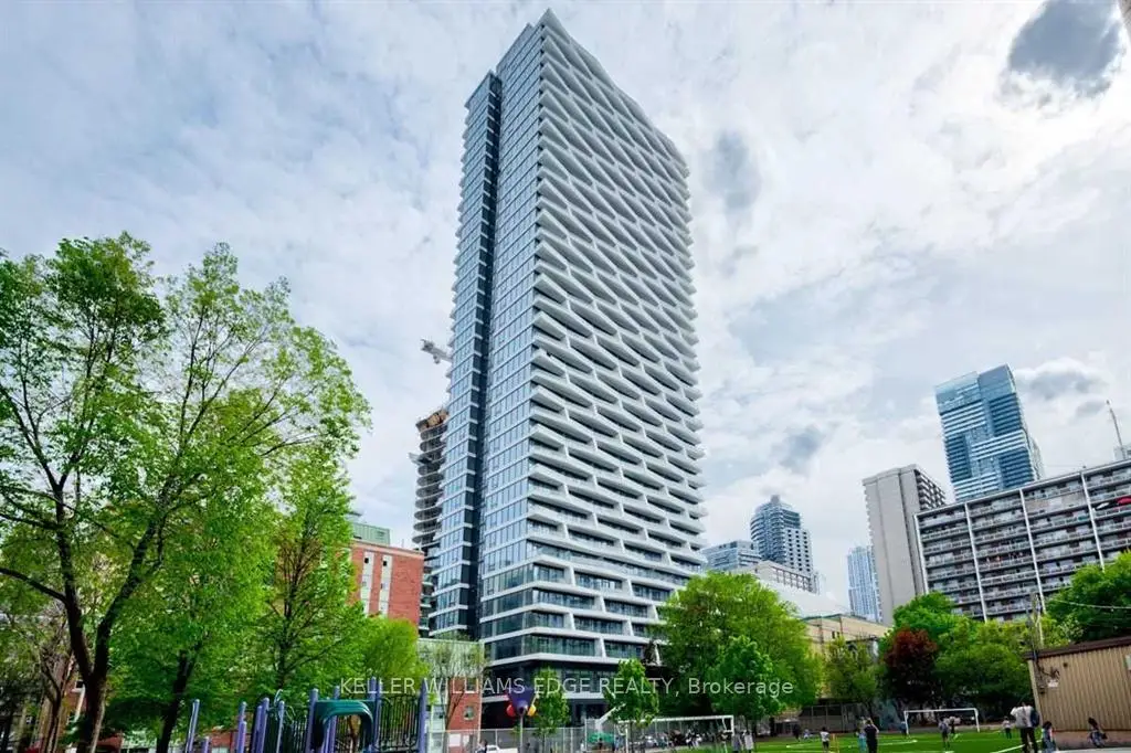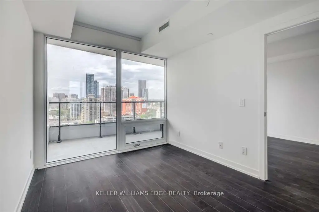 Stylish 1+Den suite at Axis Condos, ideally located at Church & Carlton. This bright and spacious unit features an open-concept layout with a large den enclosed by a sliding door-perfect as a second bedroom or home office. Offering approximately 575 sq ft of interior living space plus an oversized walk-out balcony, the unit is finished with laminate flooring throughout and a modern kitchen with integrated appliances and granite countertops. Conveniently located just steps to Toronto Metropolitan University, U of T, subway access, 24-hour streetcar, Loblaws, Eaton Centre, Dundas Square, and College Park.