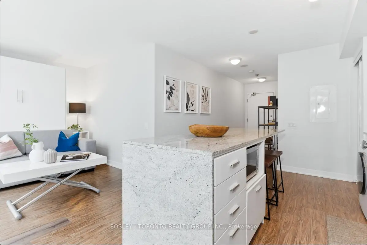 Welcome to the Discovery II Condos! This turnkey studio offers the perfect blend of comfort, style, and convenience-ideal for first-time buyers, investors, or anyone seeking a low-maintenance lifestyle. Thoughtfully designed with a functional layout, the space is filled with natural light from floor-to-ceiling windows and features a sleek modern kitchen with lots of storage, an oversized counter and a built-in dining table, perfect for everyday living and entertaining. The Murphy bed seamlessly transforms into a couch to maximize space and versatility. The stylish bathroom, in-suite laundry, charming Juliet balcony and a storage locker complete this well-appointed unit. Located just steps from shopping options, the hospital, and transit, you'll enjoy effortless access to the subway station, Highway 401, DVP/404, and the GO Station. Well-run, well-maintained building with excellent amenities, this is an opportunity to be part of a vibrant, connected community where everything you need is right at your doorstep!