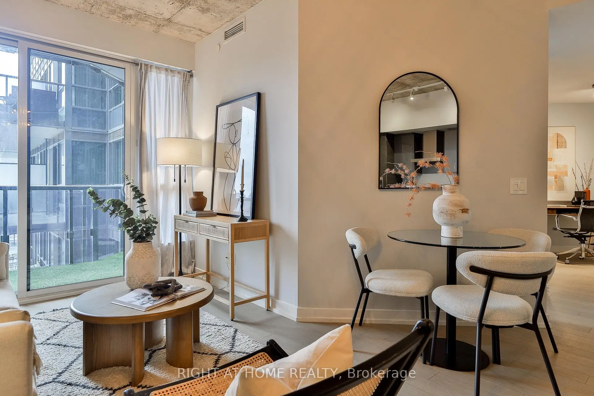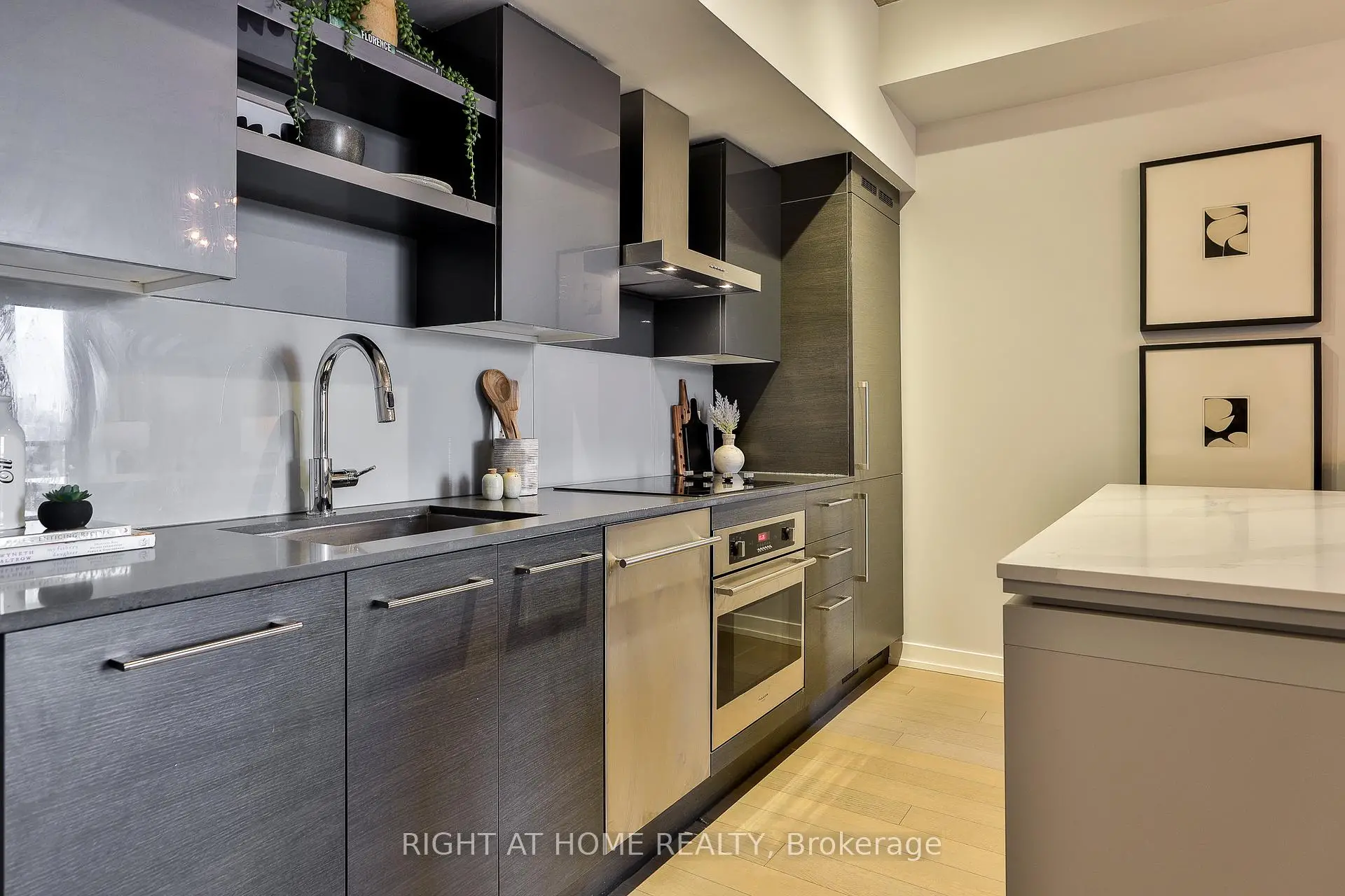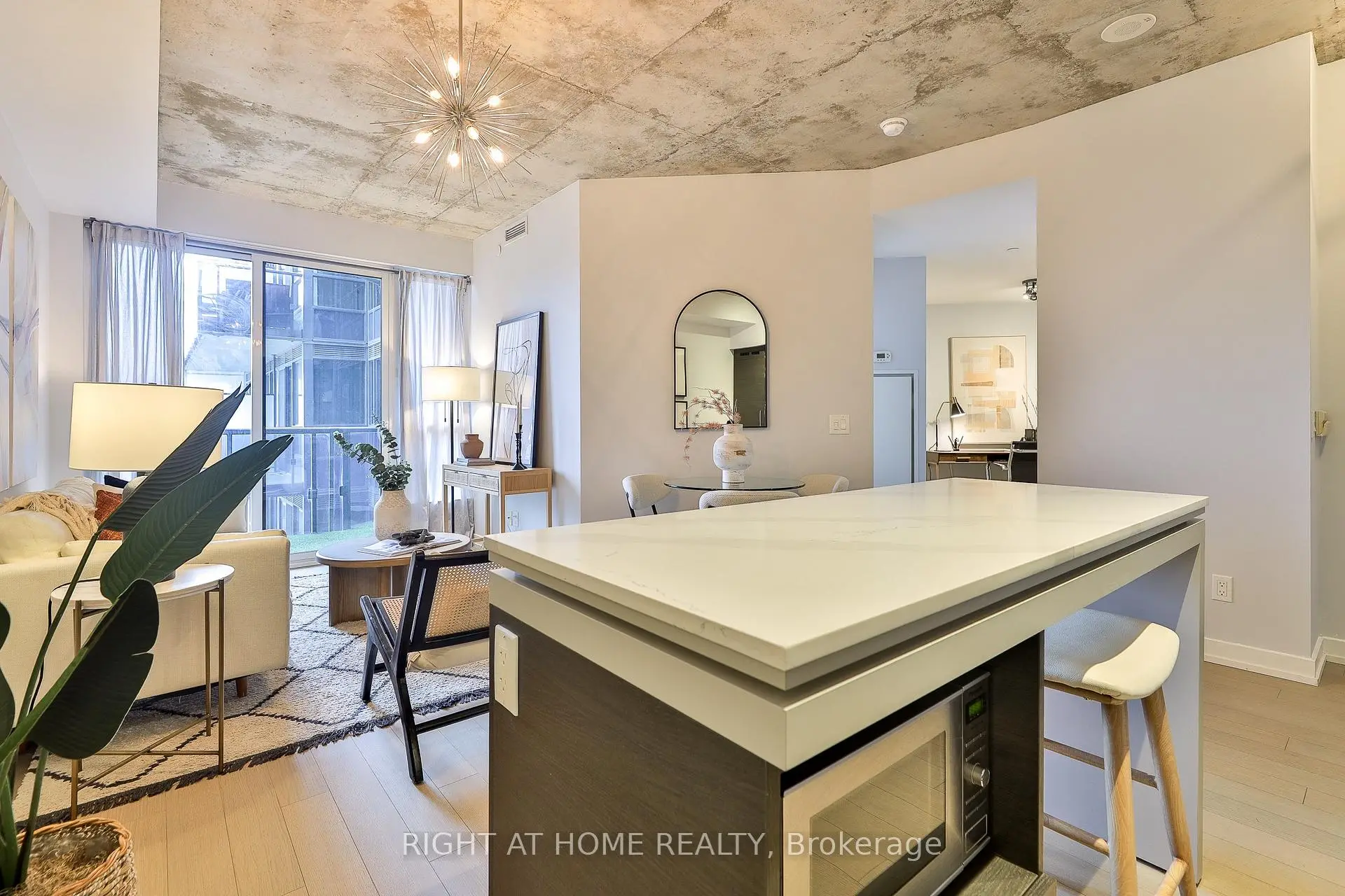 Modern King West living at DNA3, thoughtfully designed by Cecconi Simone. This stylish east-facing 1 bed + den features 9 ft exposed concrete ceilings and a smart layout with no wasted space. Proper bedroom (no sliders!), rich wood floors, a modern kitchen with integrated appliances and a large eat-in island with stone counters. Well appointed bath with soaker tub. Spacious balcony with morning light. Large den is perfect for a true home office. Quiet, well-maintained suite in a prime location - steps to transit, groceries, King & Queen West, Ossington Strip and Trinity Bellwoods Park with easy access to the core. Storage locker included. Amenities include 24-hour concierge, gym with yoga/pilates studio, "Rain Room" spa, rooftop terrace with BBQs, theatre and party rooms.